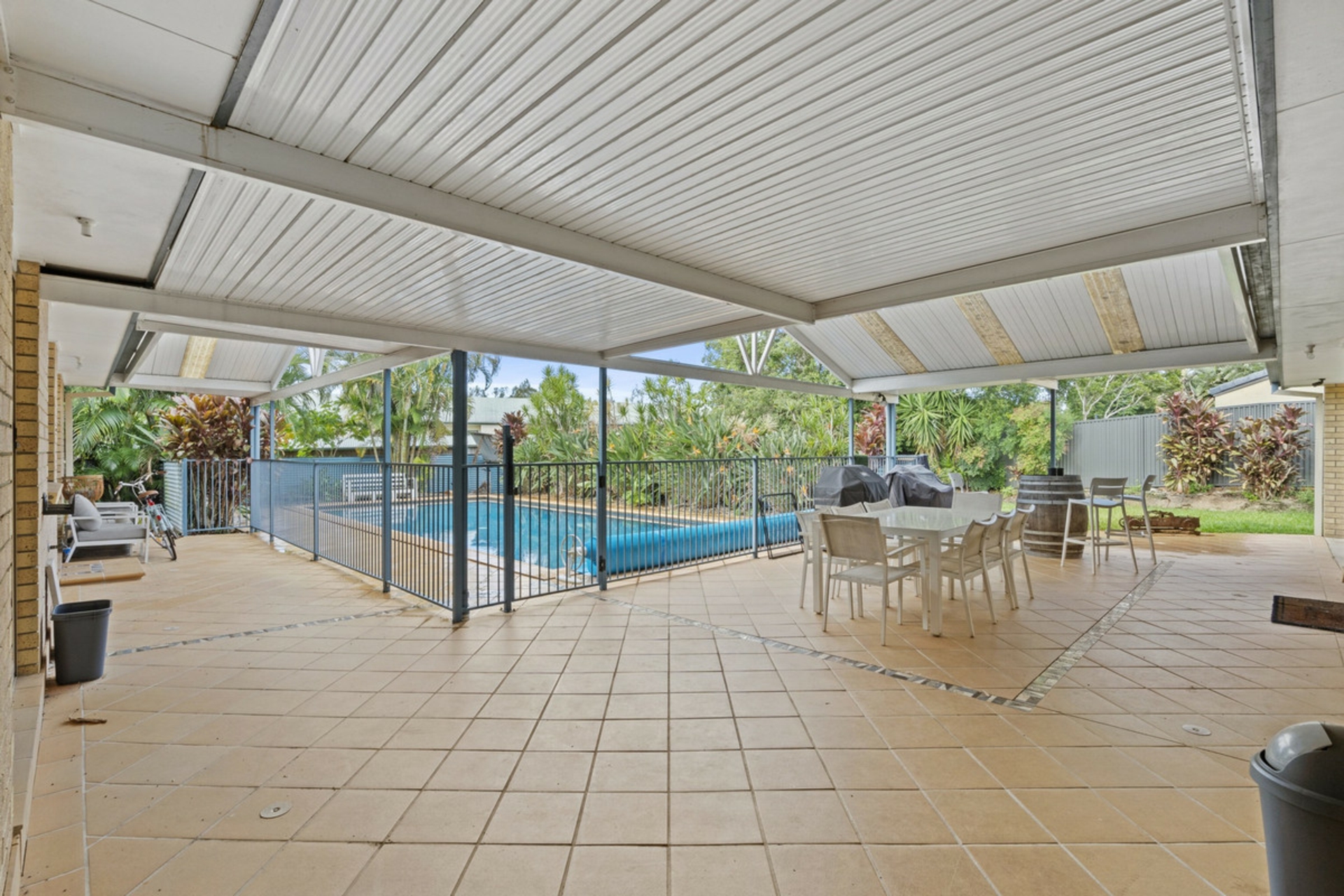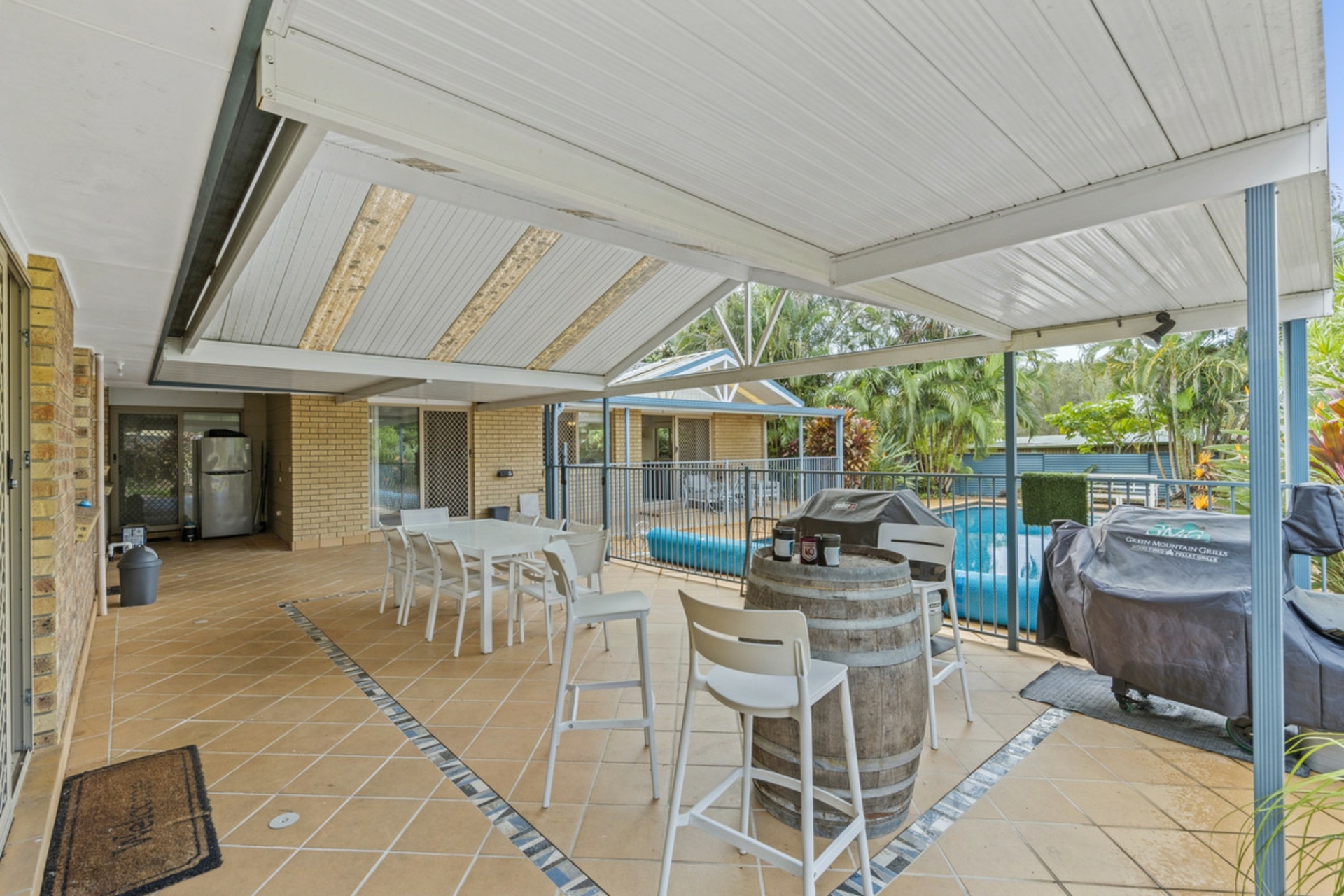 An enormous covered outdoor area which further enhances the entertaining capabilities of this amazing home