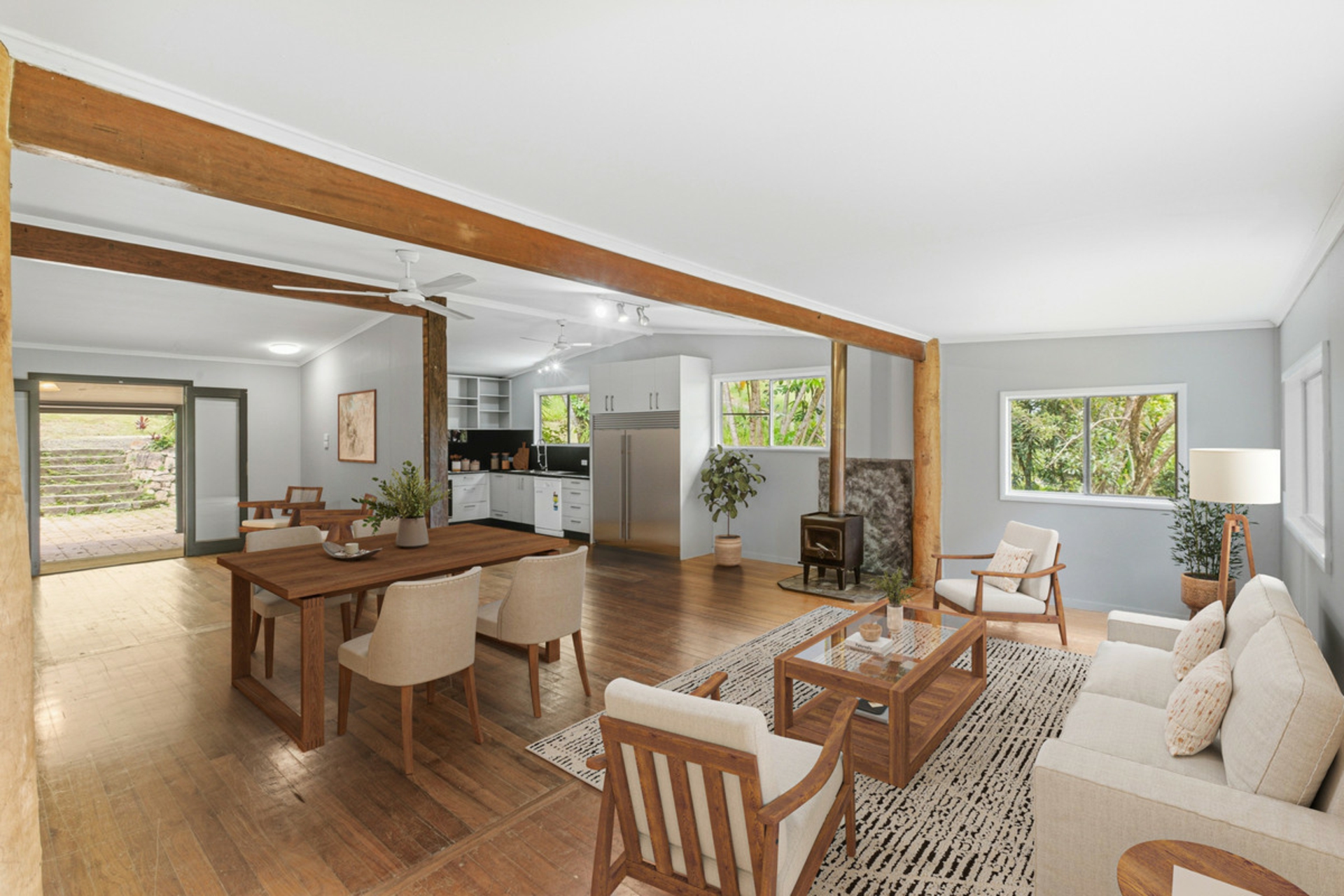 Outside, a large undercover patio and paved entertaining space overlook the surrounding gardens with plenty of room for future improvements.