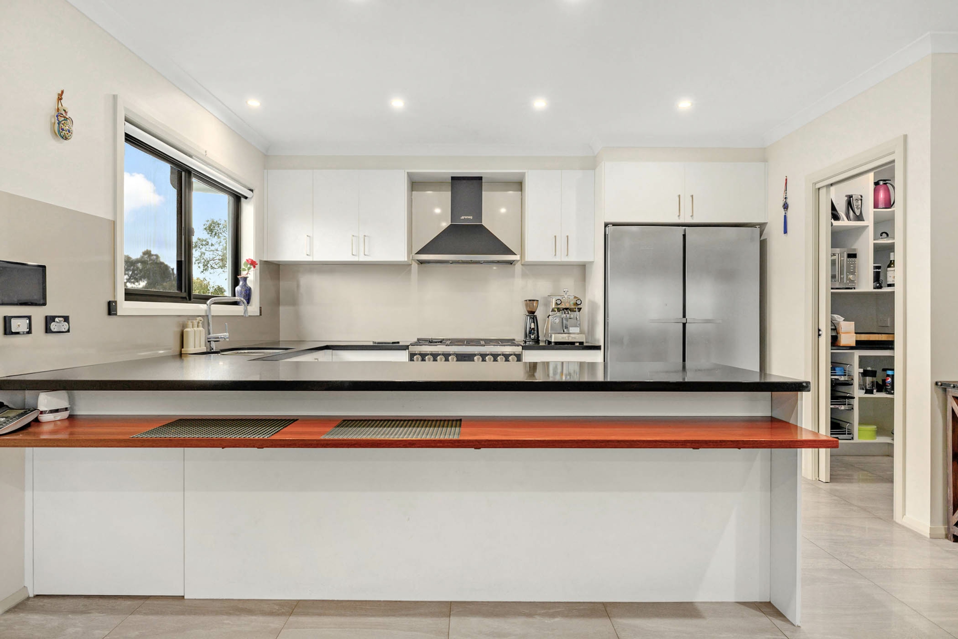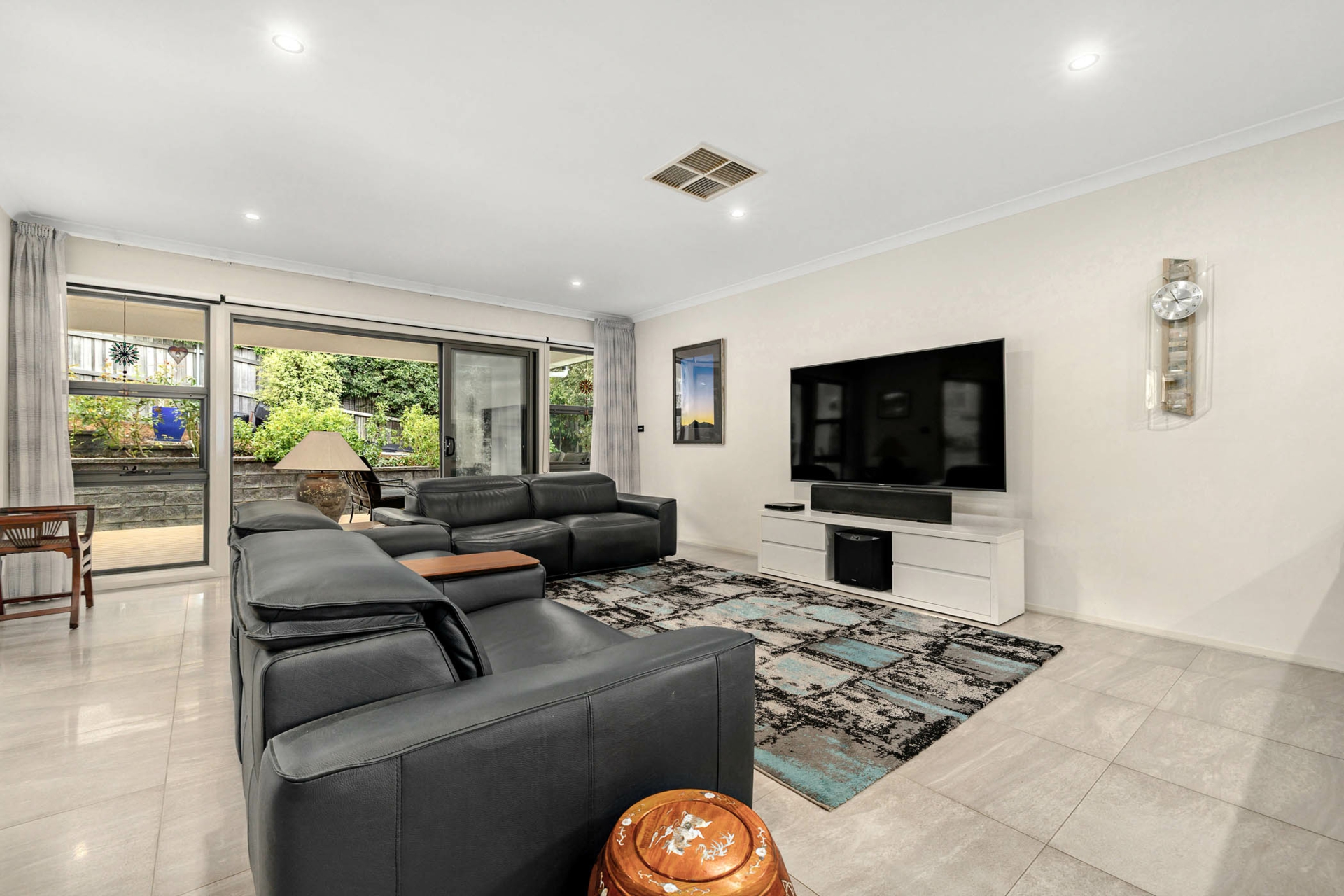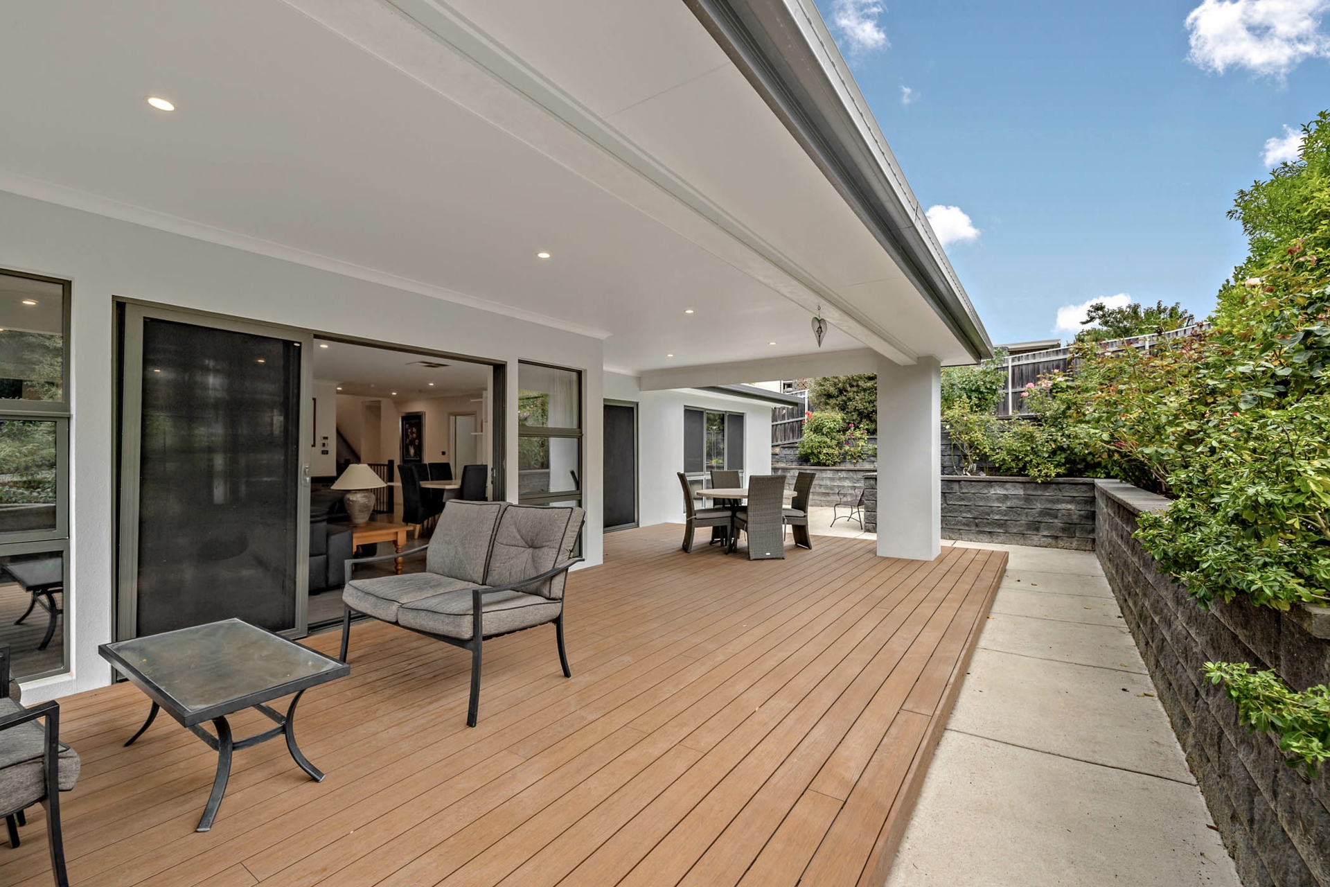 Seamless flow from the main living area leads to the covered alfresco, a generous, low-maintenance eco-deck complete with downlights. It's a wonderful setting for gathering with family and friends year-round, with established, landscaped gardens adding warmth and privacy to the space.