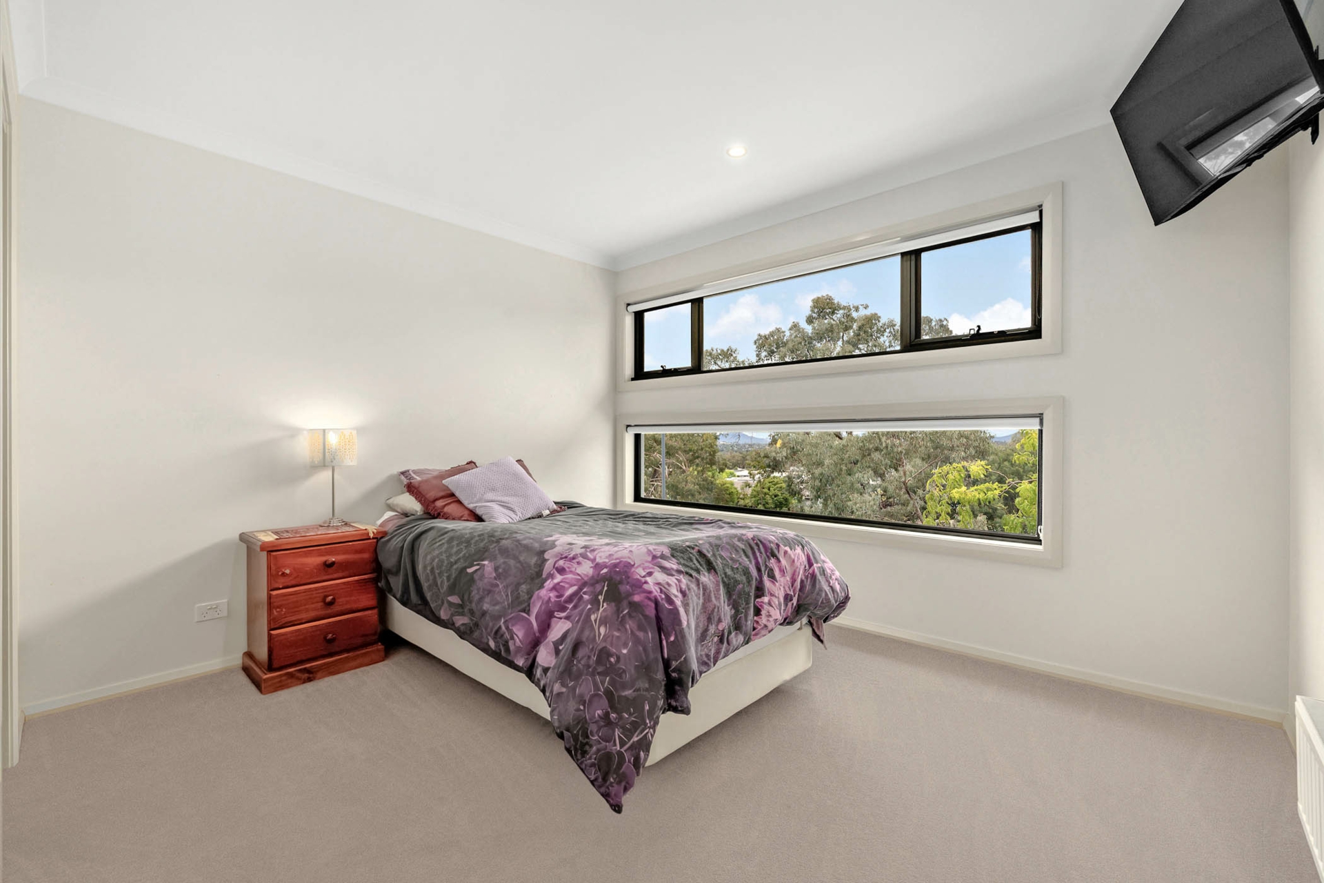 A quality timber staircase guides you through the home's levels, adding character and craftsmanship. In the middle, the oversized main bedroom provides a peaceful retreat with ample storage and a spacious, contemporary ensuite. Further upstairs, the remaining two bedrooms are thoughtfully segregated, offering privacy from the master suite and sharing a neutral main bathroom complete with bath.