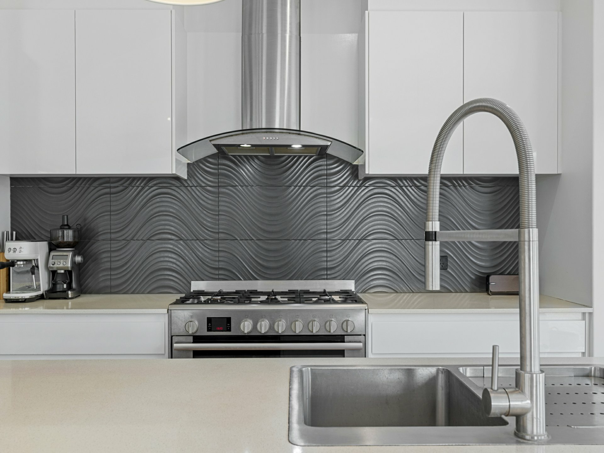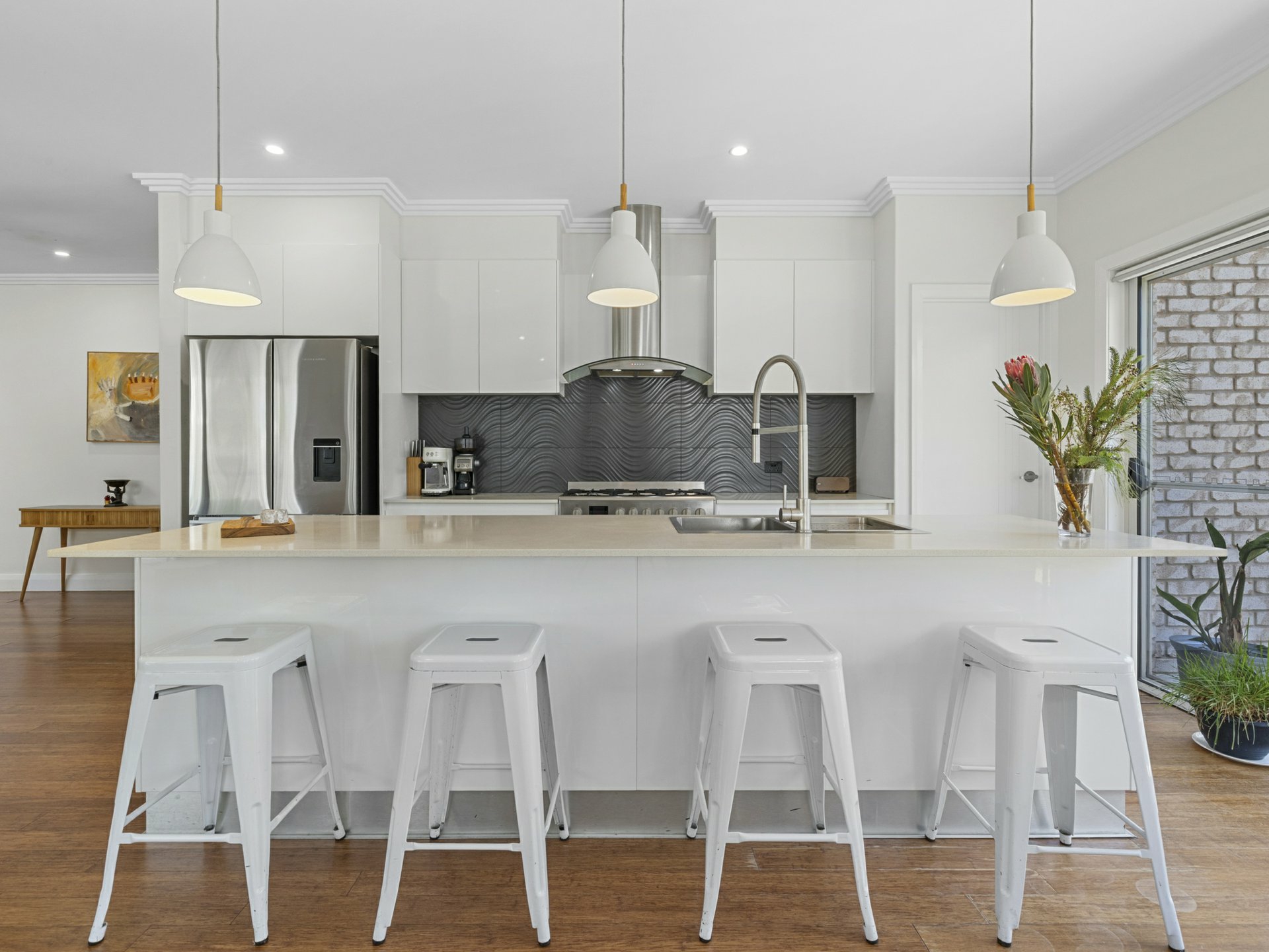 The kitchen is functional and family-friendly, complete with dishwasher, ample storage and clear sightlines to the pool and garden — perfect for keeping an eye on kids or hosting friends after the beach.