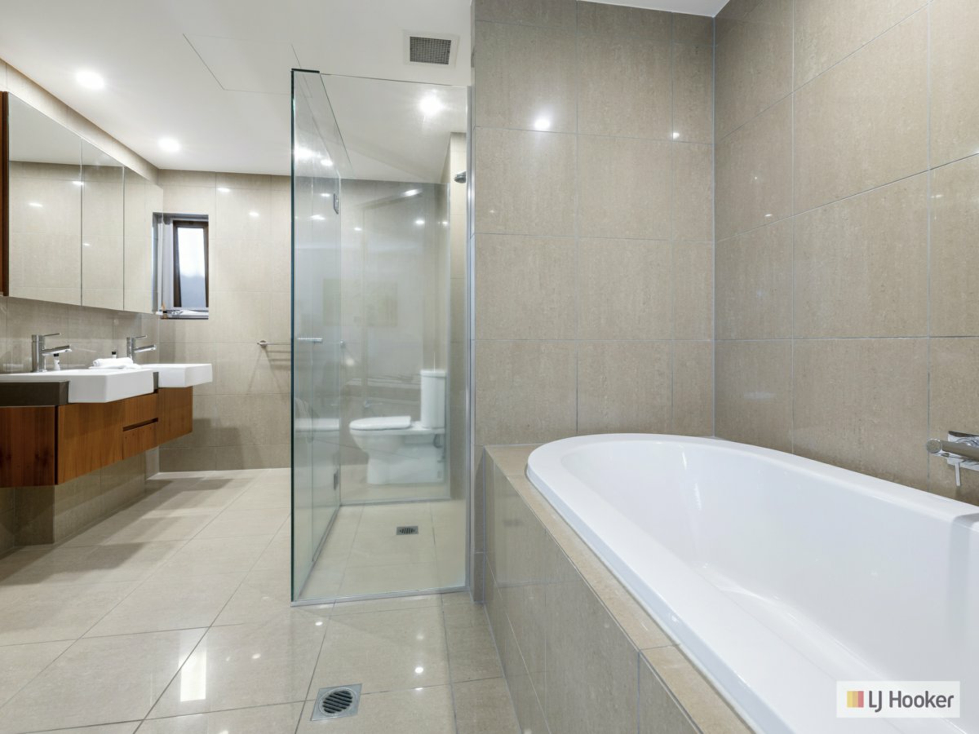 Start your day in a bright and spacious master suite with direct access to a designer ensuite featuring a luxurious soaking tub and dual vanities. Two additional oversized bedrooms with mirrored robes and a sleek second bathroom make it perfect for family or friends.