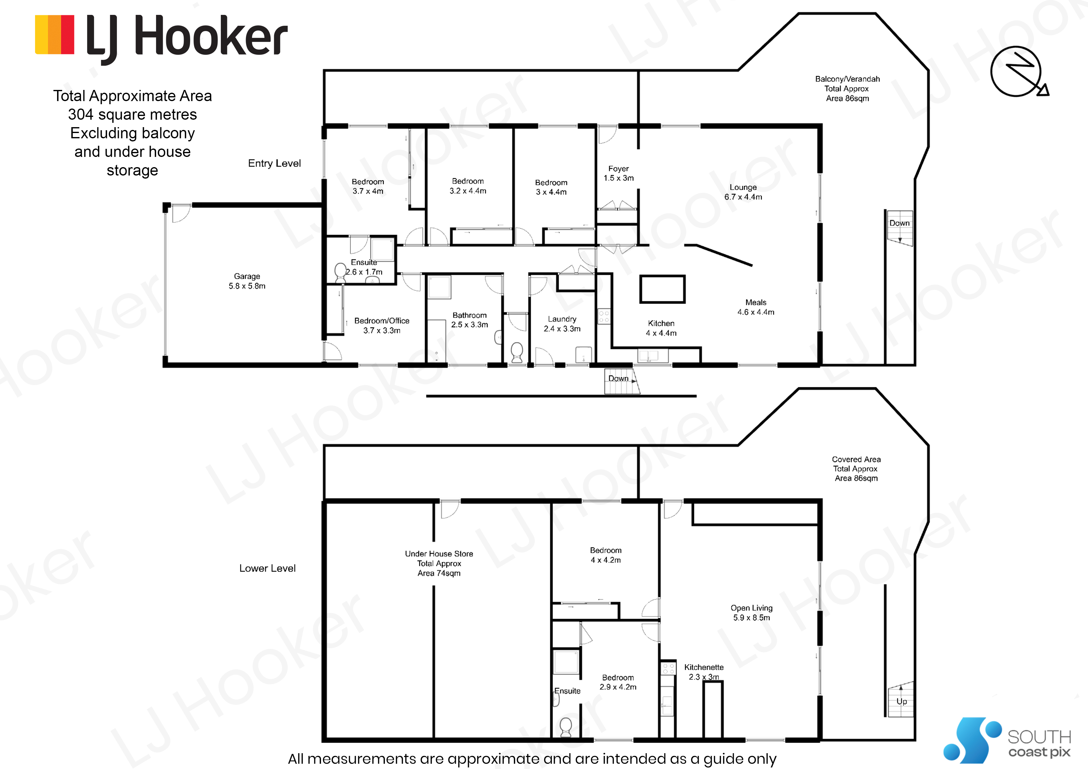 Downstairs -totally separate granny flat with its own entrance comprising of 2 bedrooms, 1 with an ensuite. Kitchenette and large living and dining area.