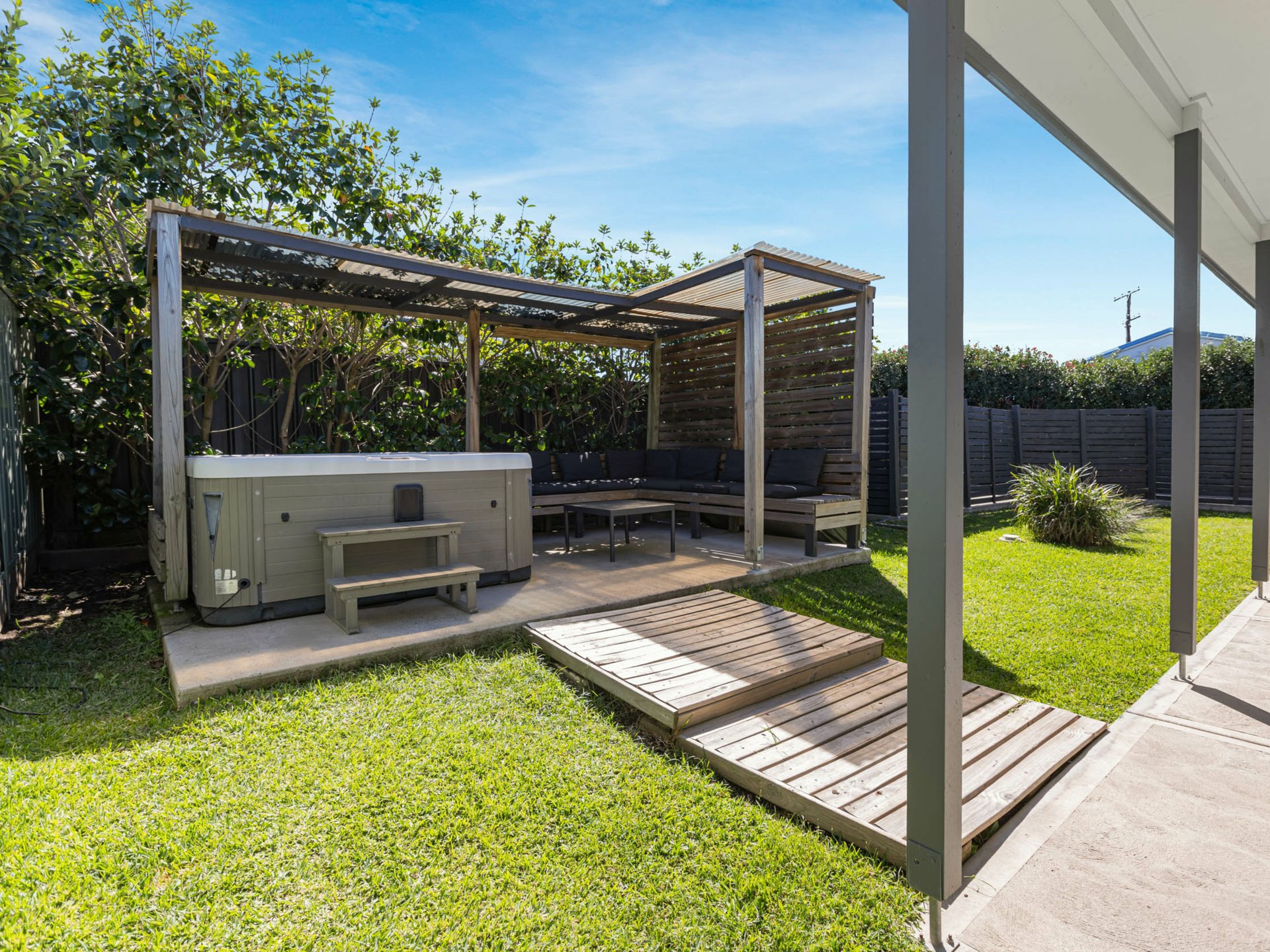 The backyard is your personal retreat! Imagine unwinding in the 6 person spa, surrounded by lush landscaping and a cozy seating area—ideal for summer barbecues or quiet evenings under the stars.