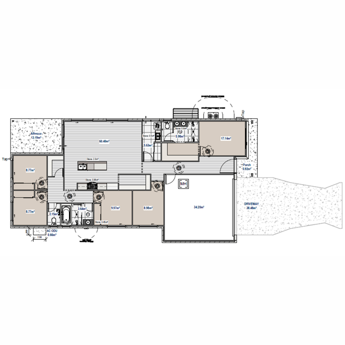 Hybrid flooring throughout & 600x600 tiles in wet areas