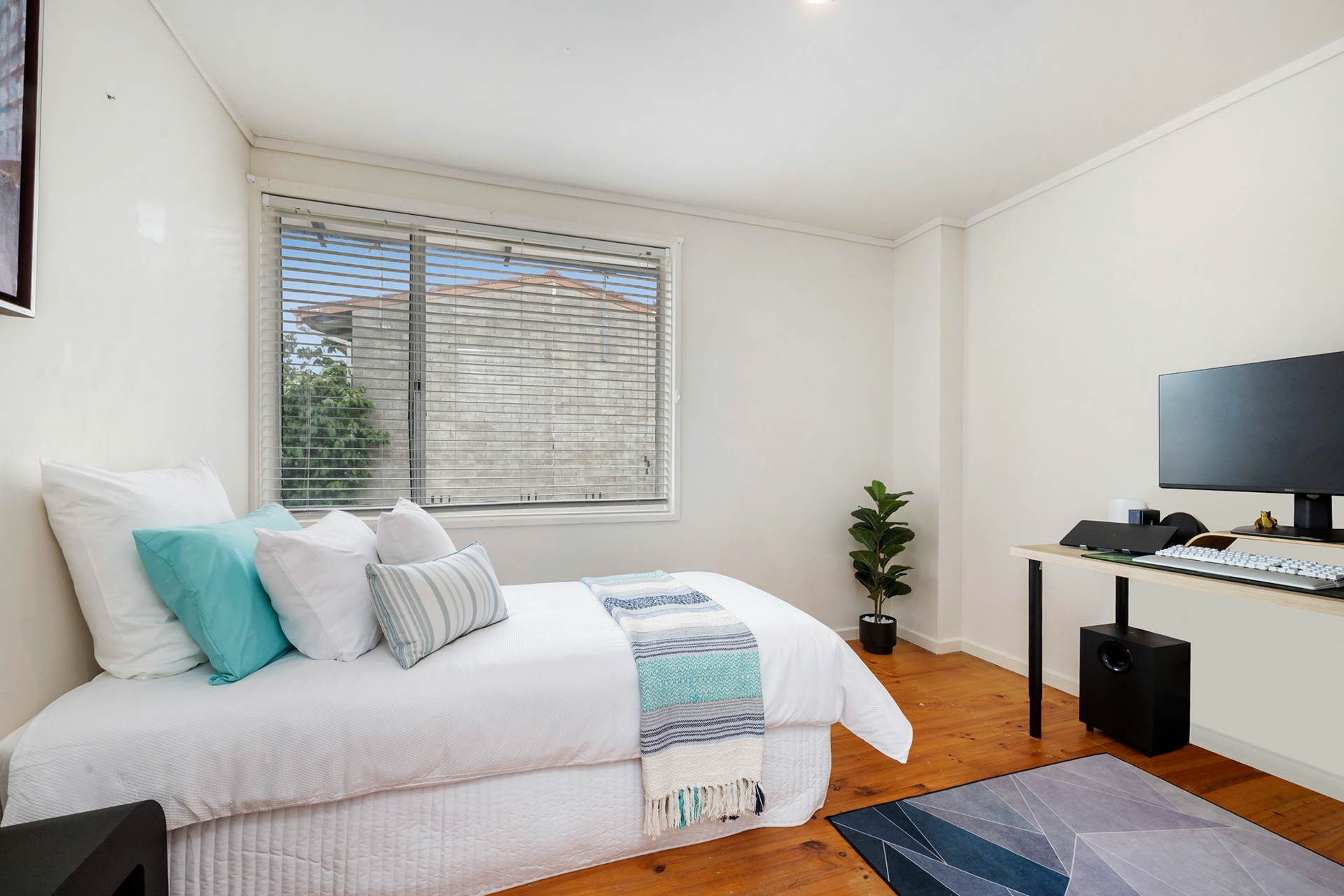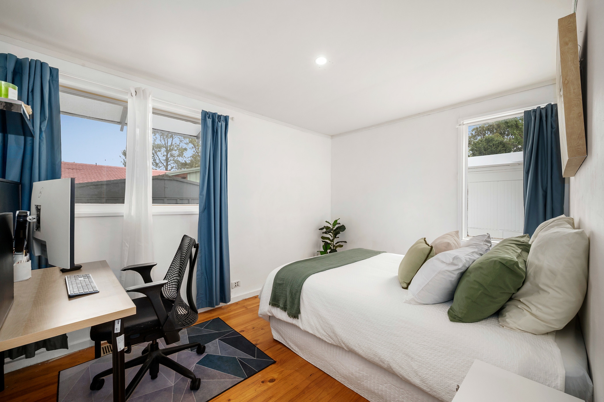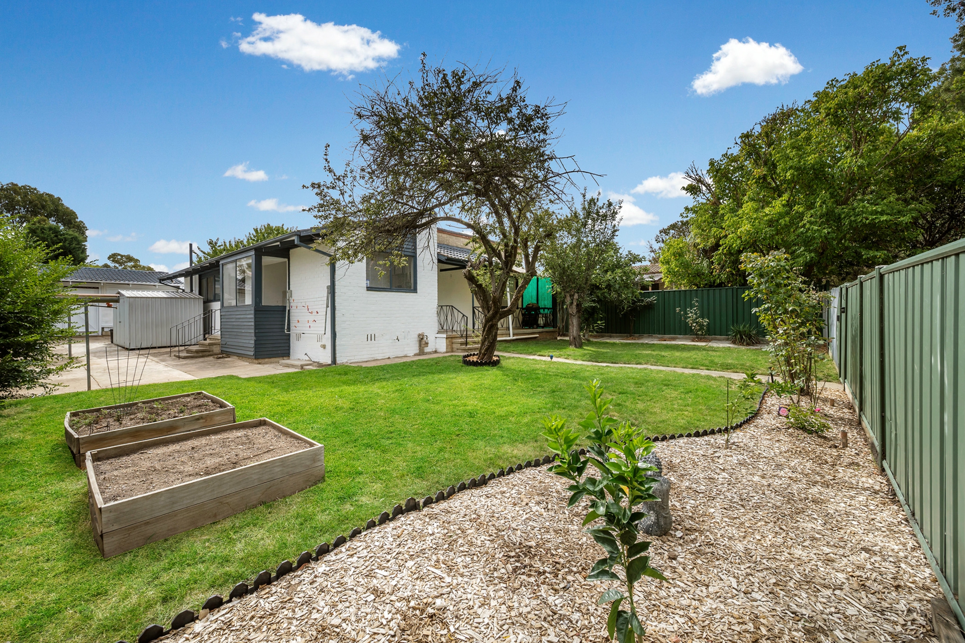 Beyond the living spaces, the backyard unfolds as a private retreat designed for connection and relaxation. A raised, sheltered deck creates the perfect setting for BBQs and evening drinks, while the lush green lawn, offers space for children and pets to play freely. Fully enclosed with Colorbond fencing, the yard also features a garden shed and a concrete area ready for endless possibilities.