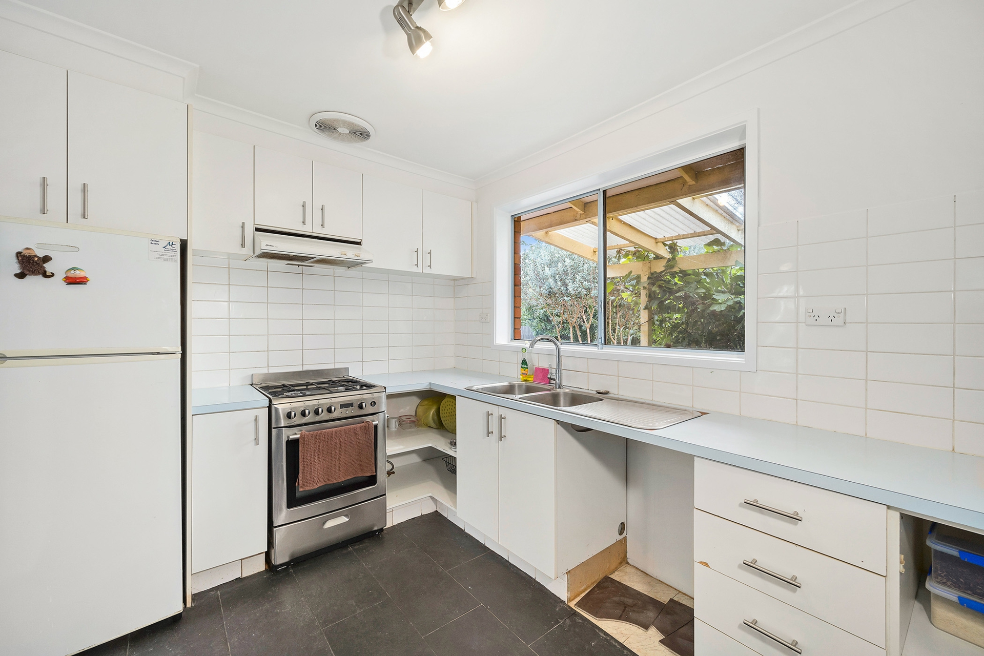 Freshly painted with brand-new carpets, this home is nestled in a quiet cul-de-sac, surrounded by beautifully maintained gardens. Step inside to find a welcoming living and dining area that flows effortlessly into a functional kitchen. The three generously sized bedrooms provide comfortable living, while the home's original condition makes it a perfect canvas for those looking to add their own personal touch or take on a renovation project.