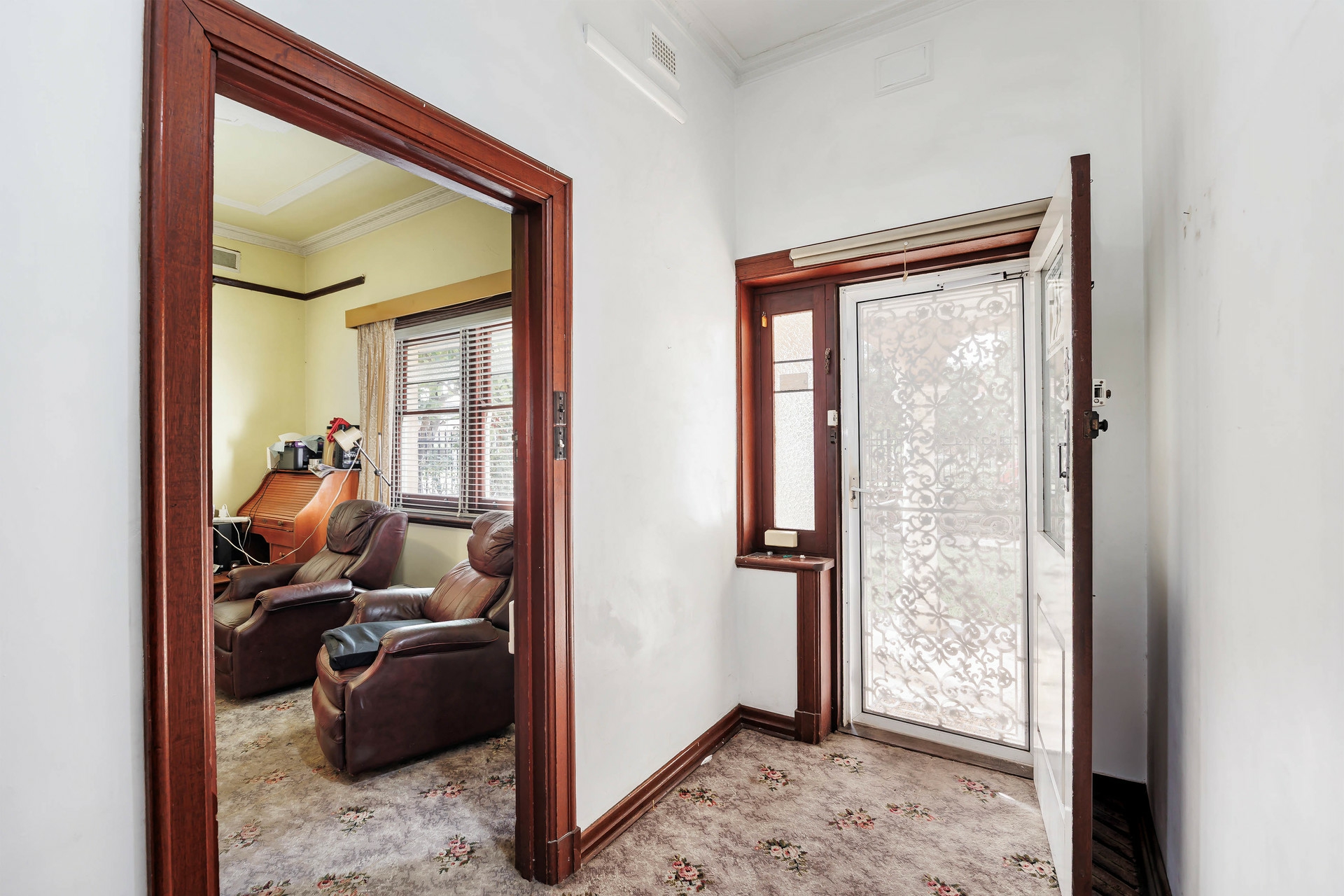 The lounge is spacious, with an ornate ceiling and ceiling fan and dark timber picture rails which add to the charm of the home. Double doors lead from the lounge to the formal dining room which was typical of the bygone era when the home was built.