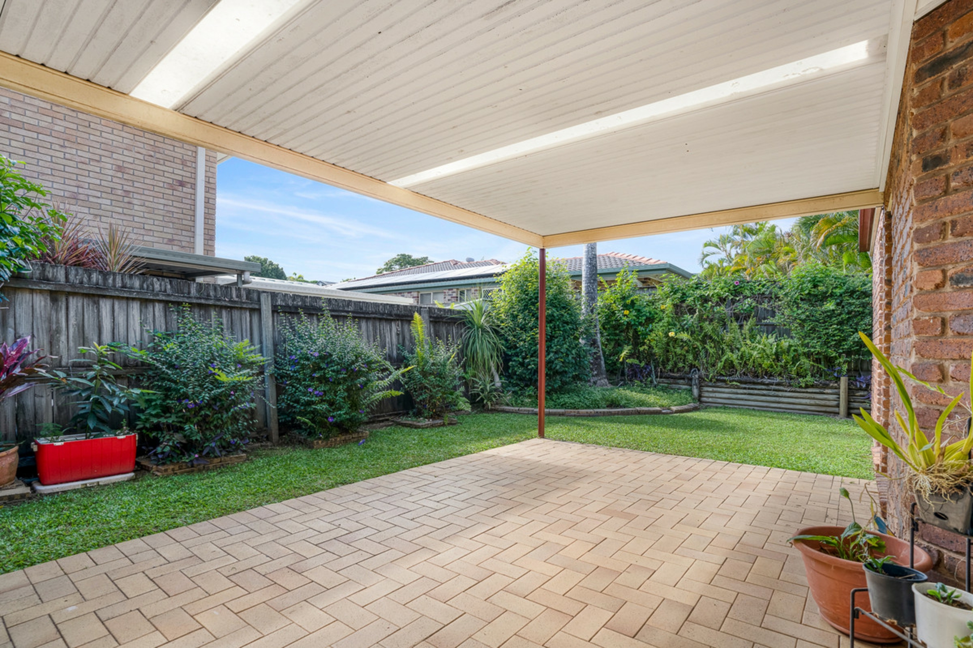 •Covered outdoor entertaining area flowing seamlessly from the living spaces, overlooking a manicured lawn and low-maintenance gardens
