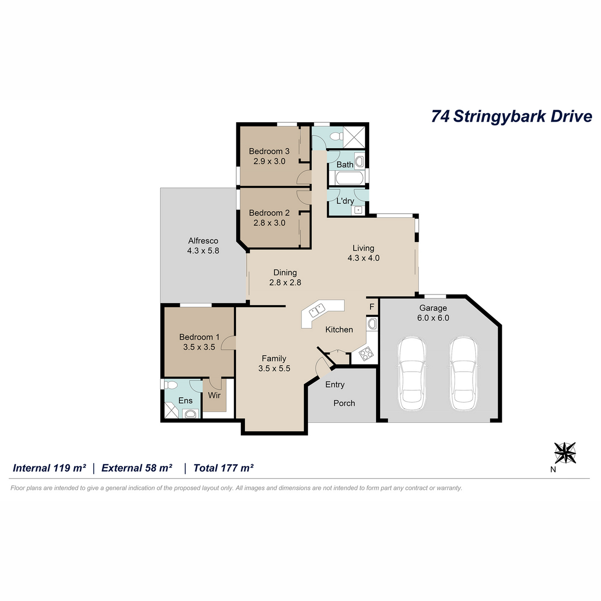 •Master bedroom with walk-in robe and ensuite; additional bedrooms include built-in wardrobes