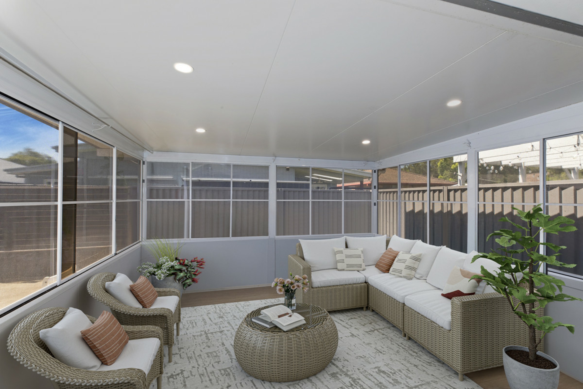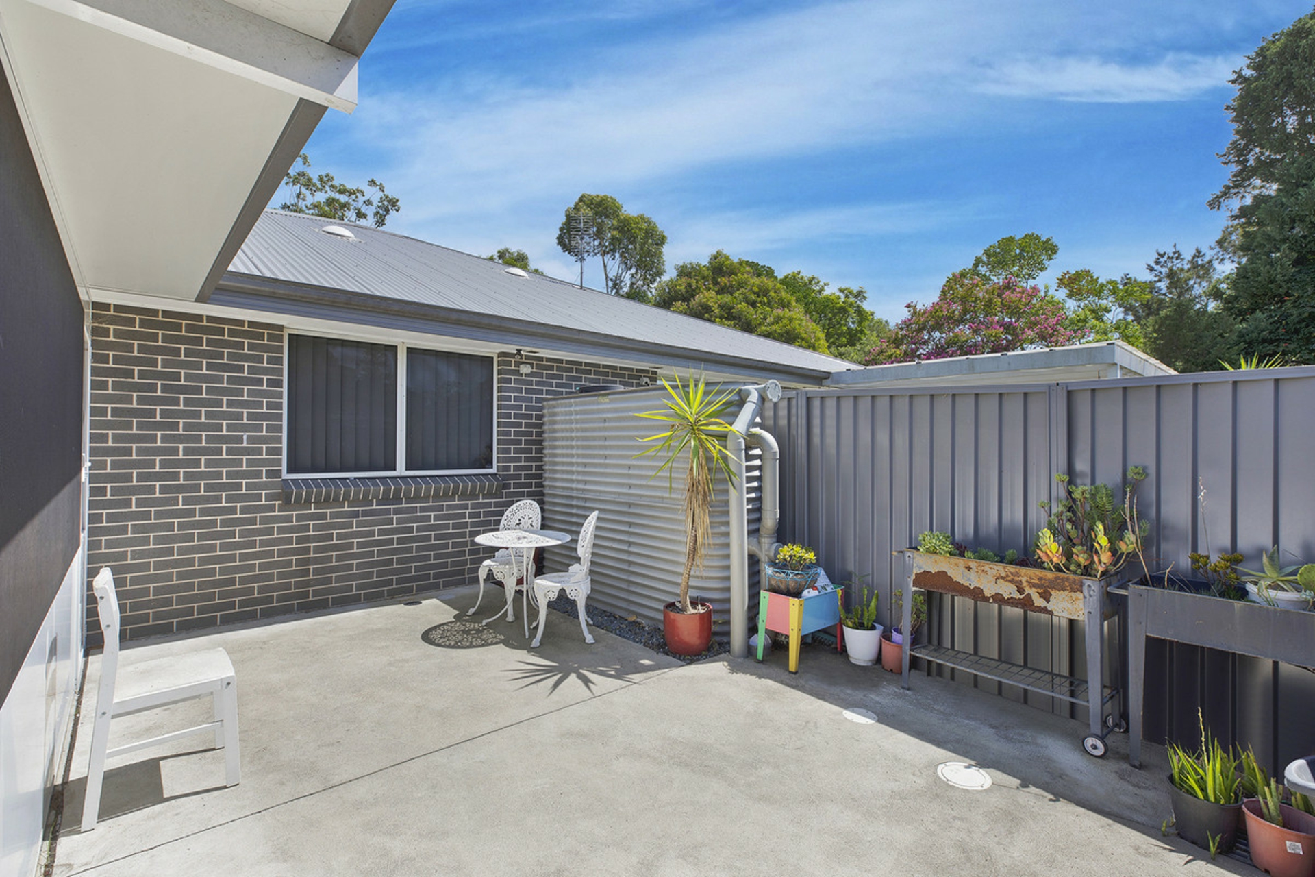 Outside is a generous enclosed entertaining area that is the idea place to relax that adjoins a courtyard with no lawn to upkeep.