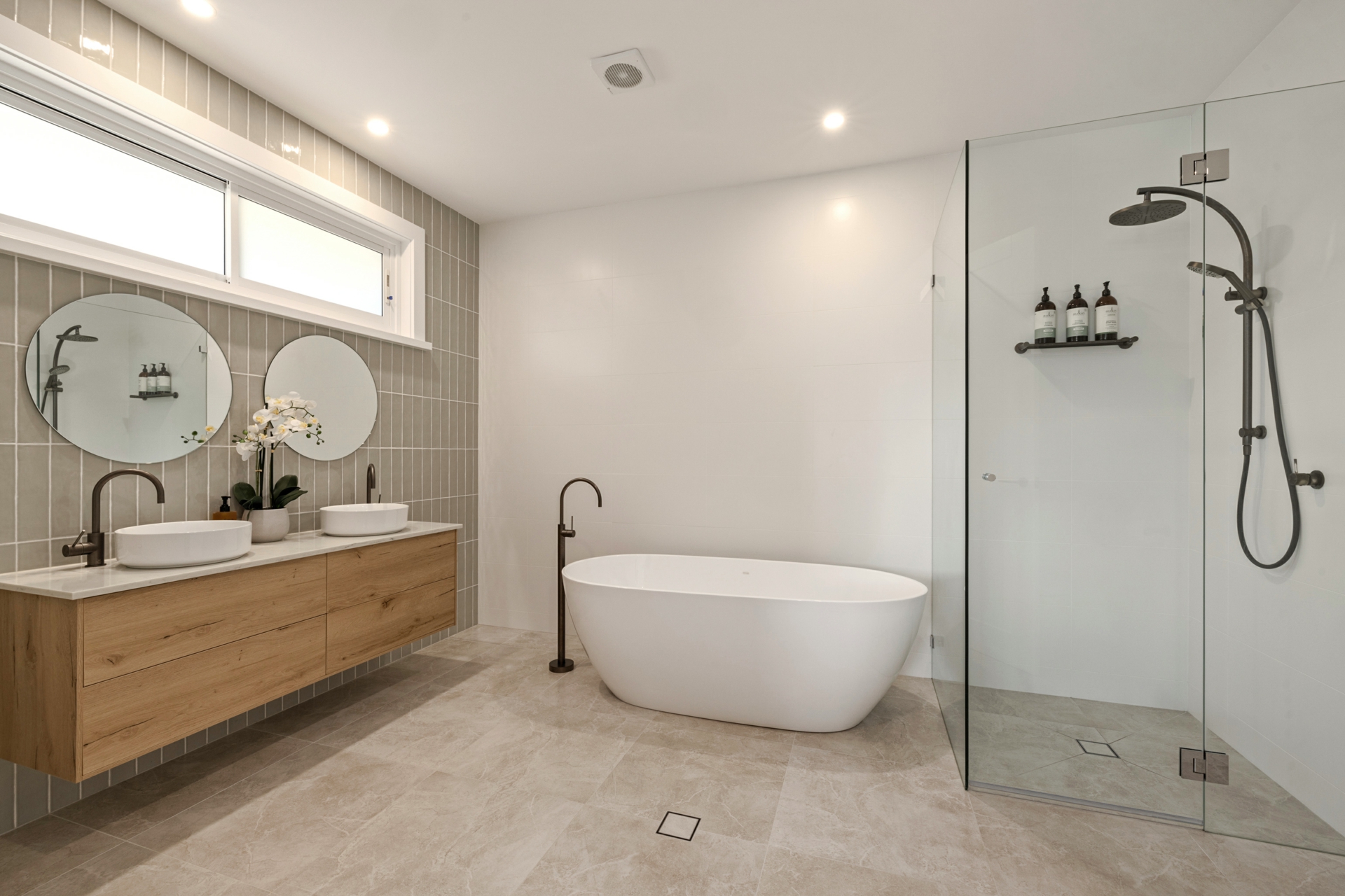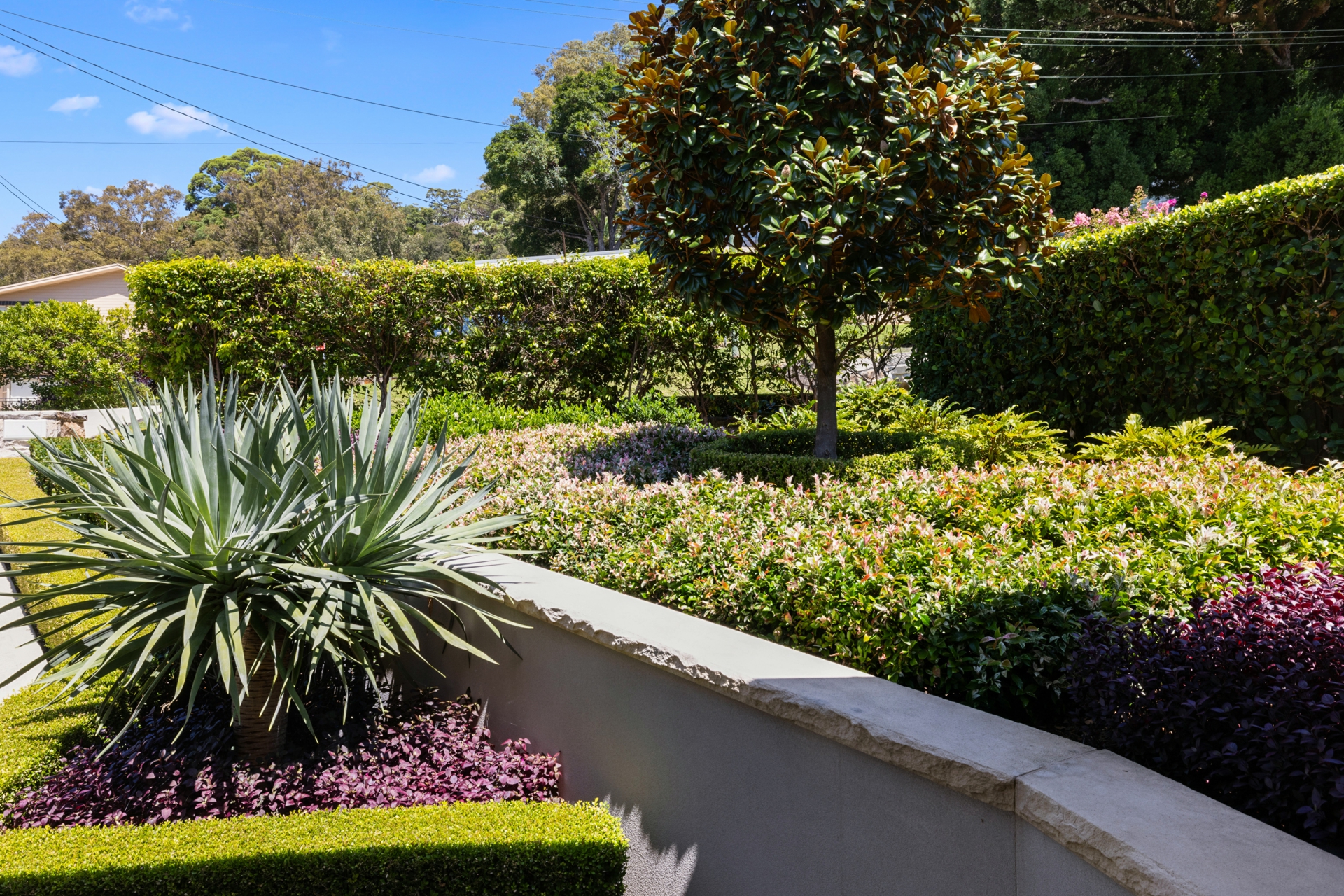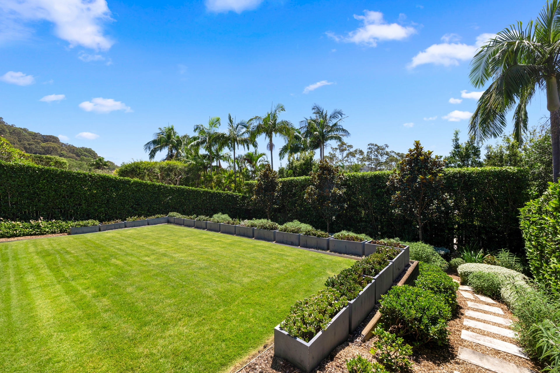 Outdoors, professionally landscaped gardens with automated irrigation frame the residence, offering level lawns, established greenery and privacy while maximising the prized northern aspect.