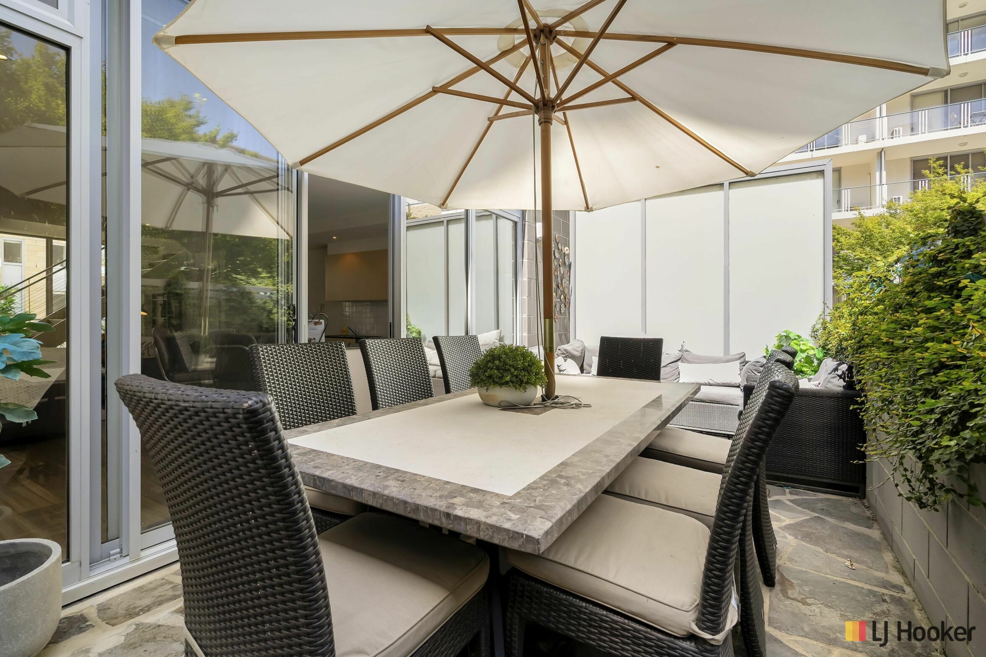 This large, light-filled and luxurious apartment is not at all what you would expect from living in the City Centre. You enter into a large, open lounge leading out onto a lush, green private courtyard. This space is large enough to entertain, and is actually one of four outdoor areas that this home offers. Each bedroom also has its own private balcony, and there is another on the other side of the living room, all working to provide natural light and fresh air to your home, and blending your indoor and outdoor living.