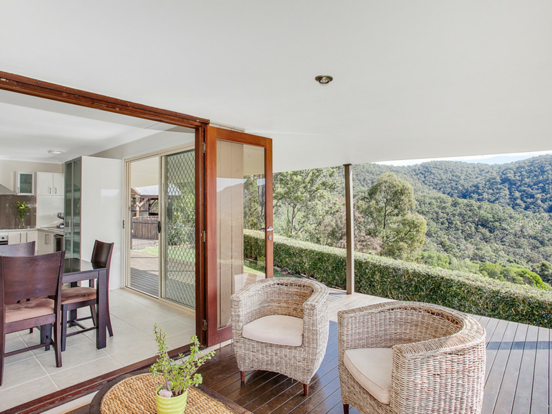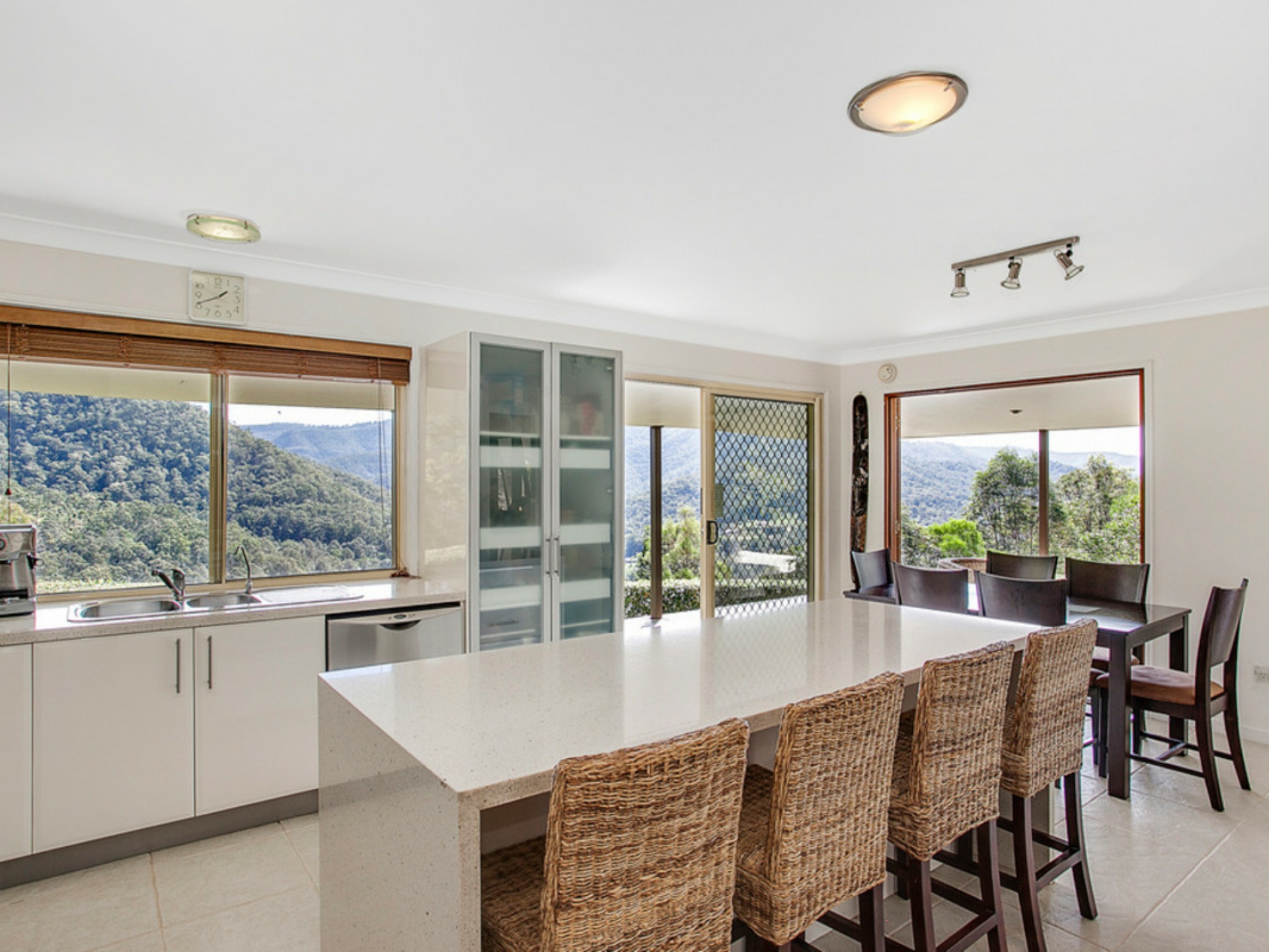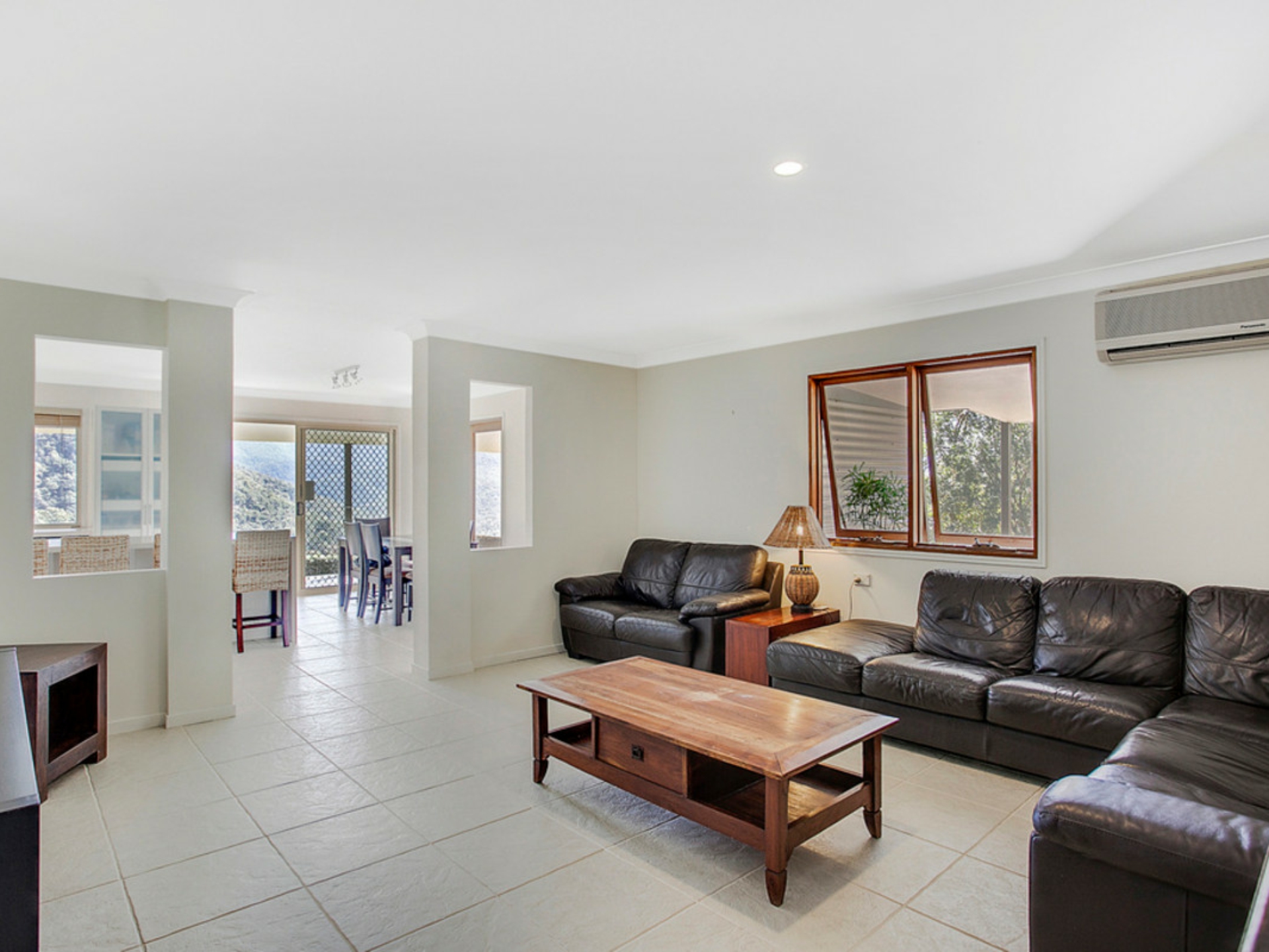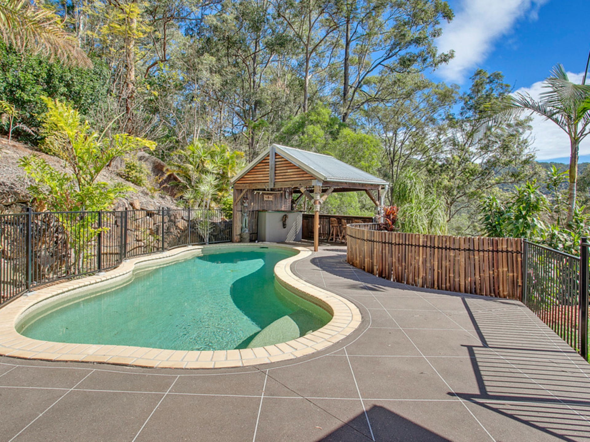 The bedrooms all have built-ins and the bathroom is trendy. For storage there is a wonderful attic with pull down steps. The living areas open to the fully fenced ig salt pool with bar. For the man in the family there is a 9 car shed with 3 phase power and a 3 car carport The current owners have installed solar power with 22 panels and 6.38Kw. Rates are $1500 pa and there are 70,000L water tanks. Only 15 minutes from Nerang this unique property will make your heart sing!