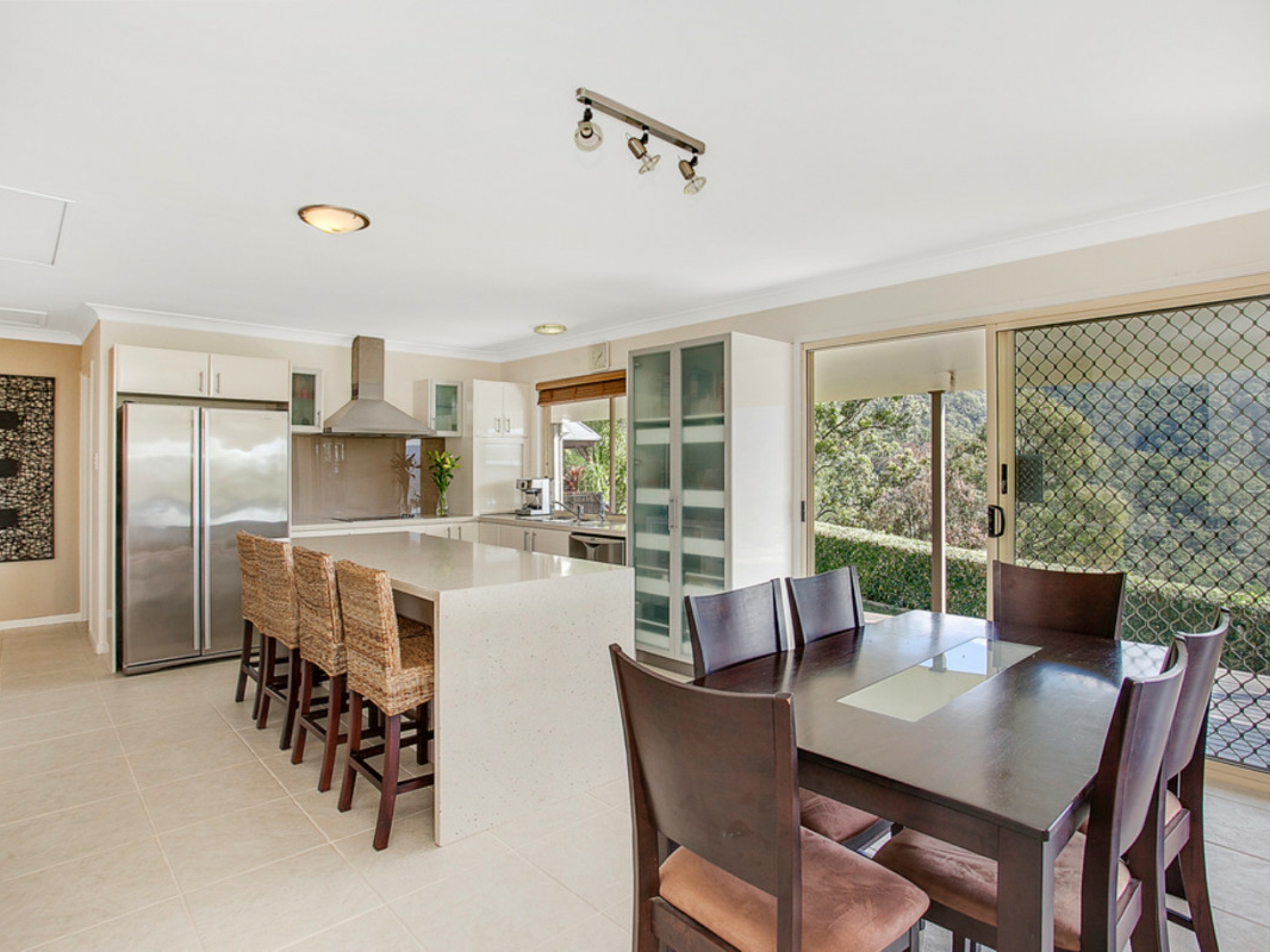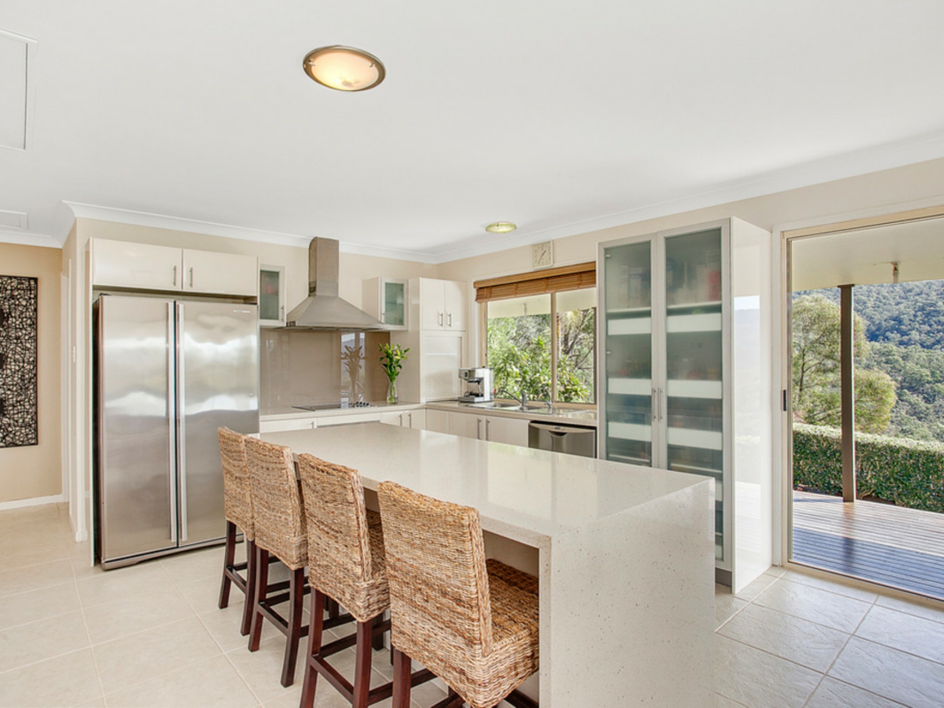 ..to the serenity and tranquillity of this private mountain home with spectacular views of folding hills and the Great Australian Bush. On 2.31ha enjoy the changing colours of the hills from purple to green and deep blue, Listen to the native birds busily searching for nectar and the odd worm and luxuriate in the peace of this three bedroom, one bathroom home with wide verandahs to take in the extraordinary views. The kitchen is modern with Caesar stone bench tops, modern appliances and plenty of cupboards and with the dining and living areas, is tiled.