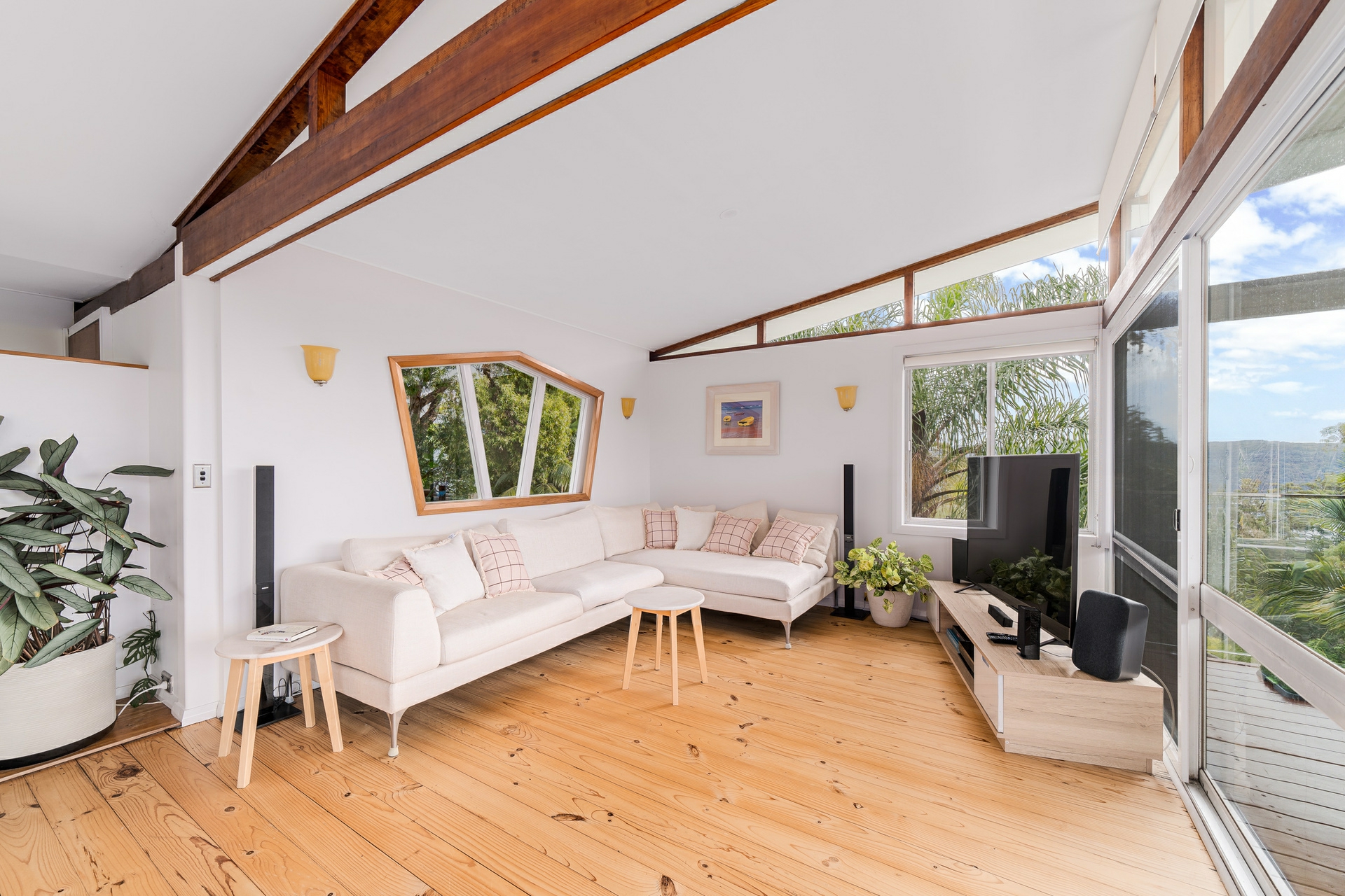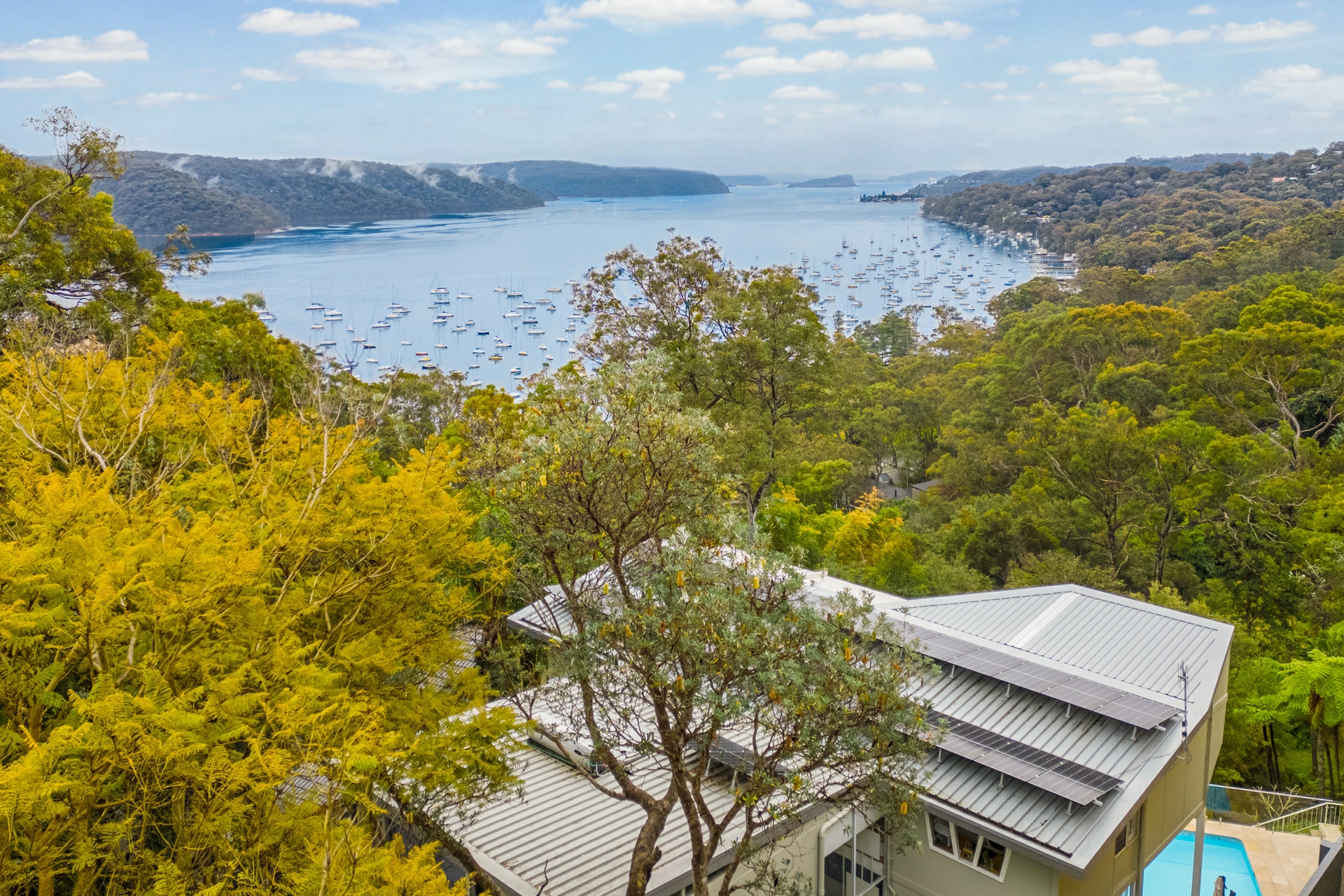 With a perfect north-west facing aspect, the property is bathed in natural light throughout the day. The large deck and built-in swimming pool provide a stunning backdrop for outdoor entertaining, with Pittwater as your ever-changing vista.