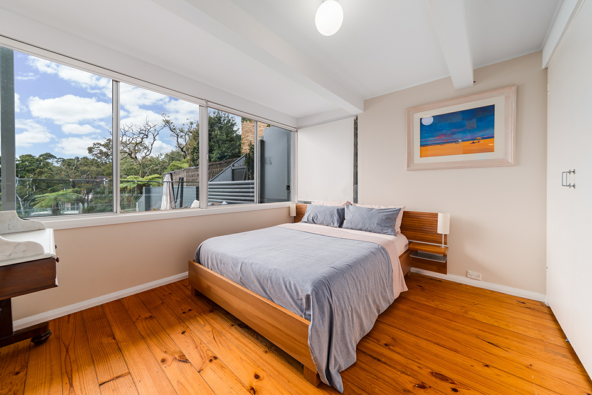 With a perfect north-west facing aspect, the property is bathed in natural light throughout the day. The large deck and built-in swimming pool provide a stunning backdrop for outdoor entertaining, with Pittwater as your ever-changing vista.
