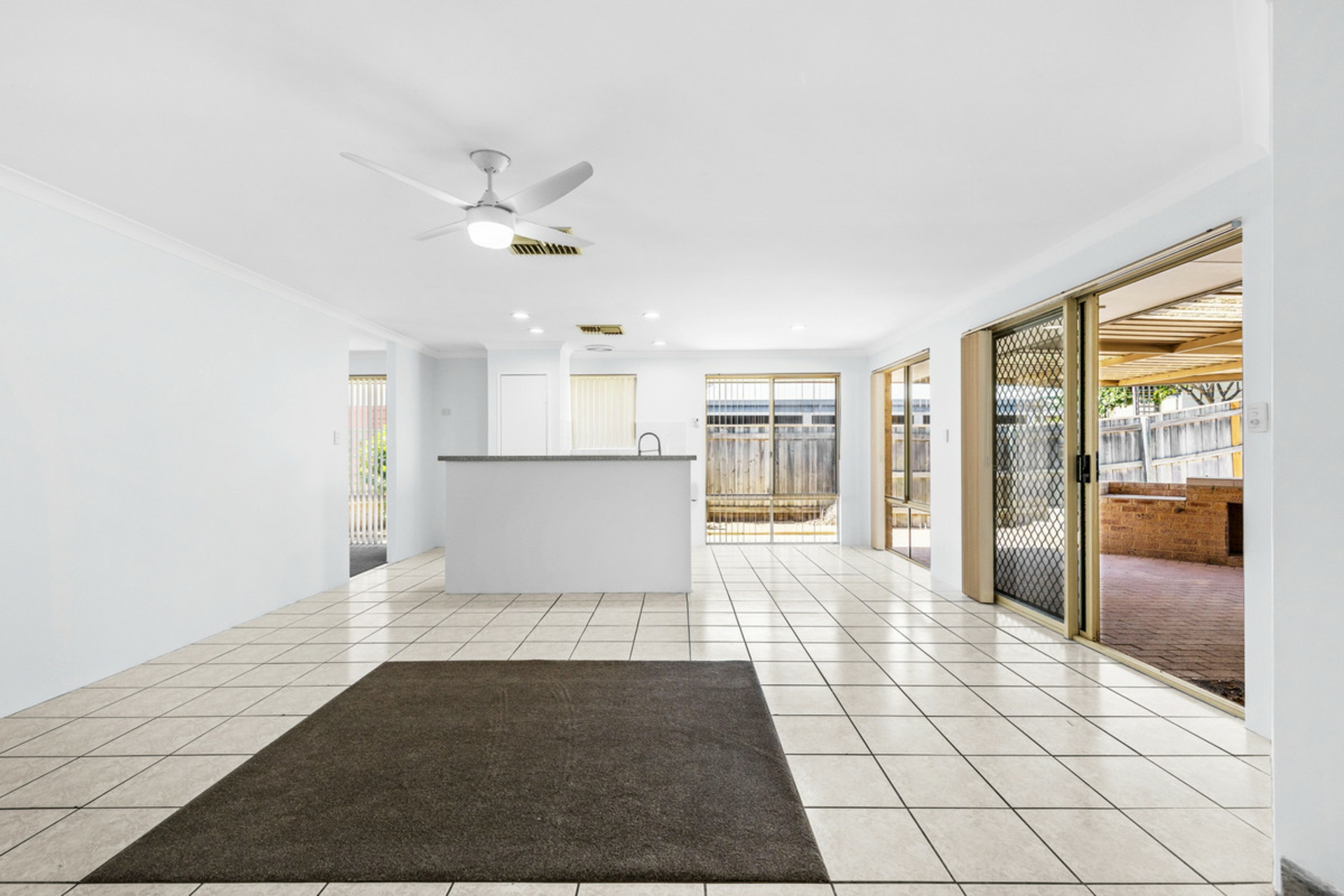 At the front of the home, a spacious formal lounge and dining area provides a welcoming space to relax or entertain. The centrally positioned kitchen overlooks the meals and family room, creating a functional open living space that keeps the heart of the home connected.