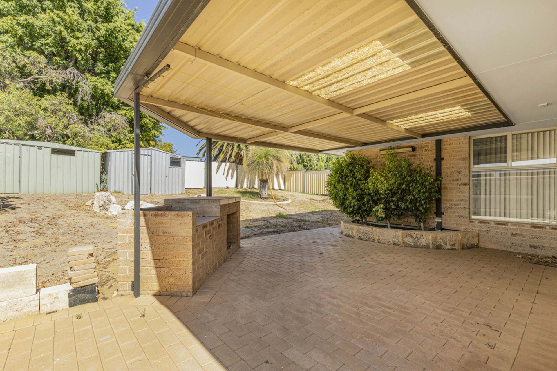 The main bathroom includes a bath, shower and vanity with a separate toilet for added convenience. Throughout the home, evaporative air conditioning provides cooling for the warmer months.