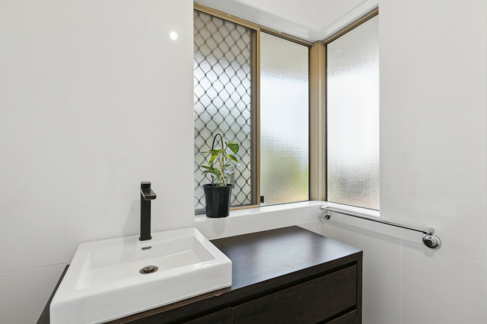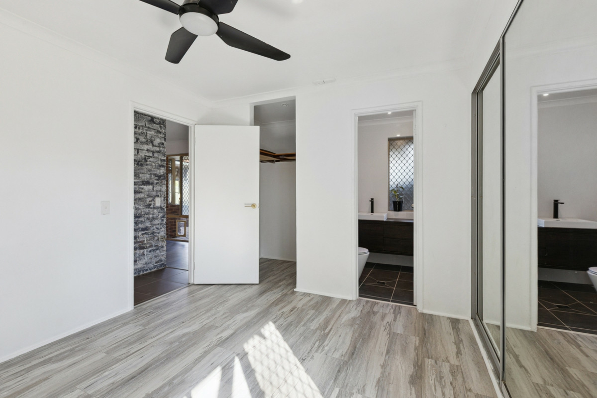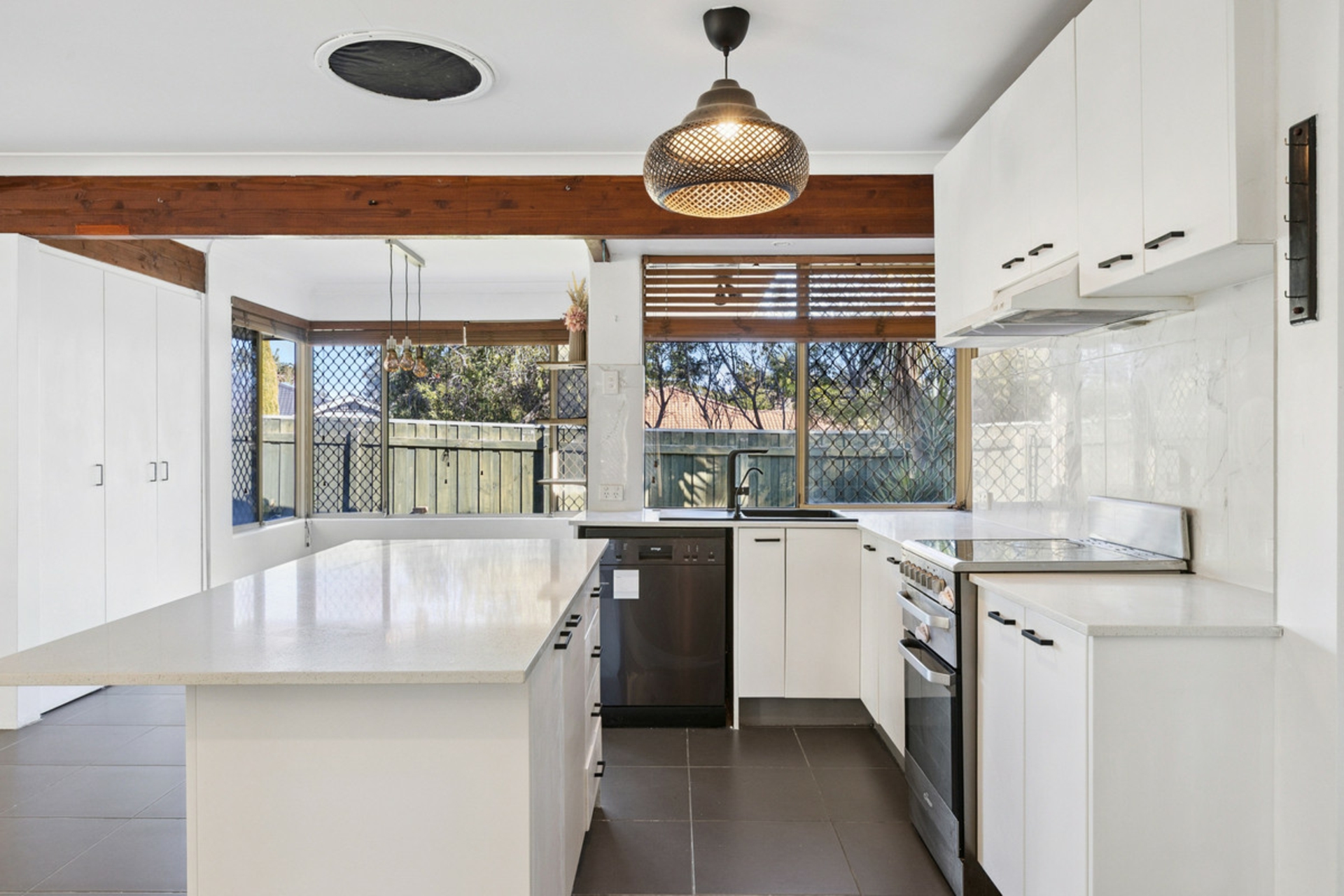 Freshly painted throughout, the home features a renovated kitchen with dishwasher, an open plan living and dining space with split system air conditioning, and a recently updated ensuite in the master suite, which also boasts both a walk-in and mirrored built-in robe. There are three additional bedrooms, all with robes, and a main bathroom with a separate toilet located in the laundry for added functionality.