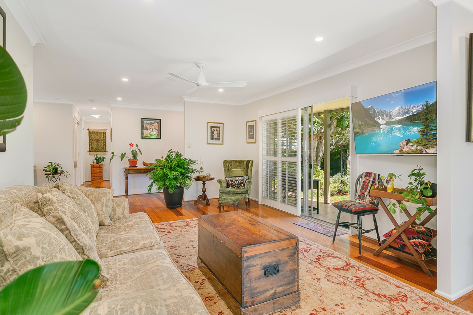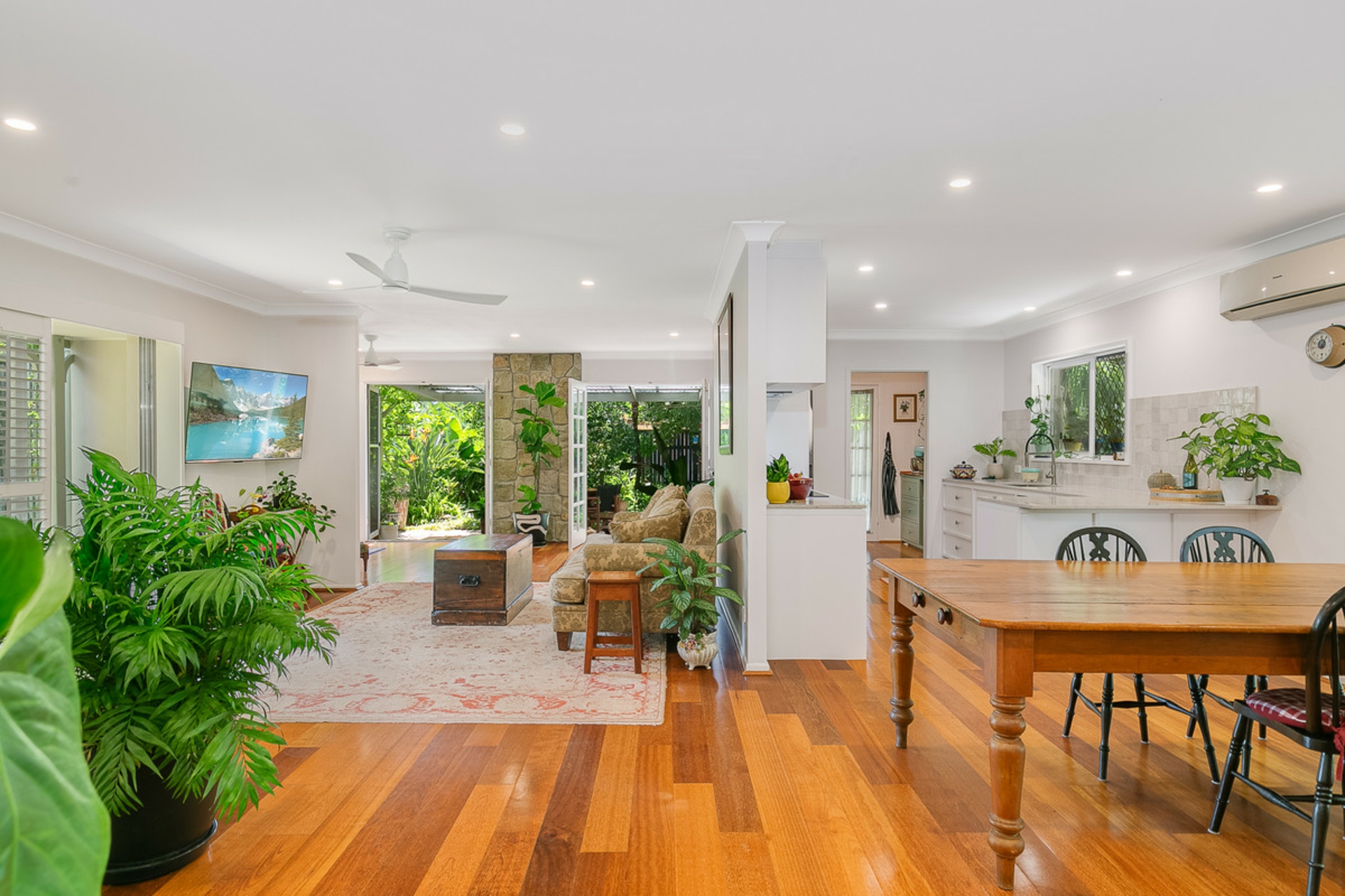 From the moment you arrive, the custom-made wrought iron entry gate sets the tone, welcoming you into a fully fenced sanctuary surrounded by established gardens and tranquil outdoor spaces. Inside, the home showcases stunning hardwood Kempas engineered flooring and an open-plan design that seamlessly connects indoor and outdoor living.