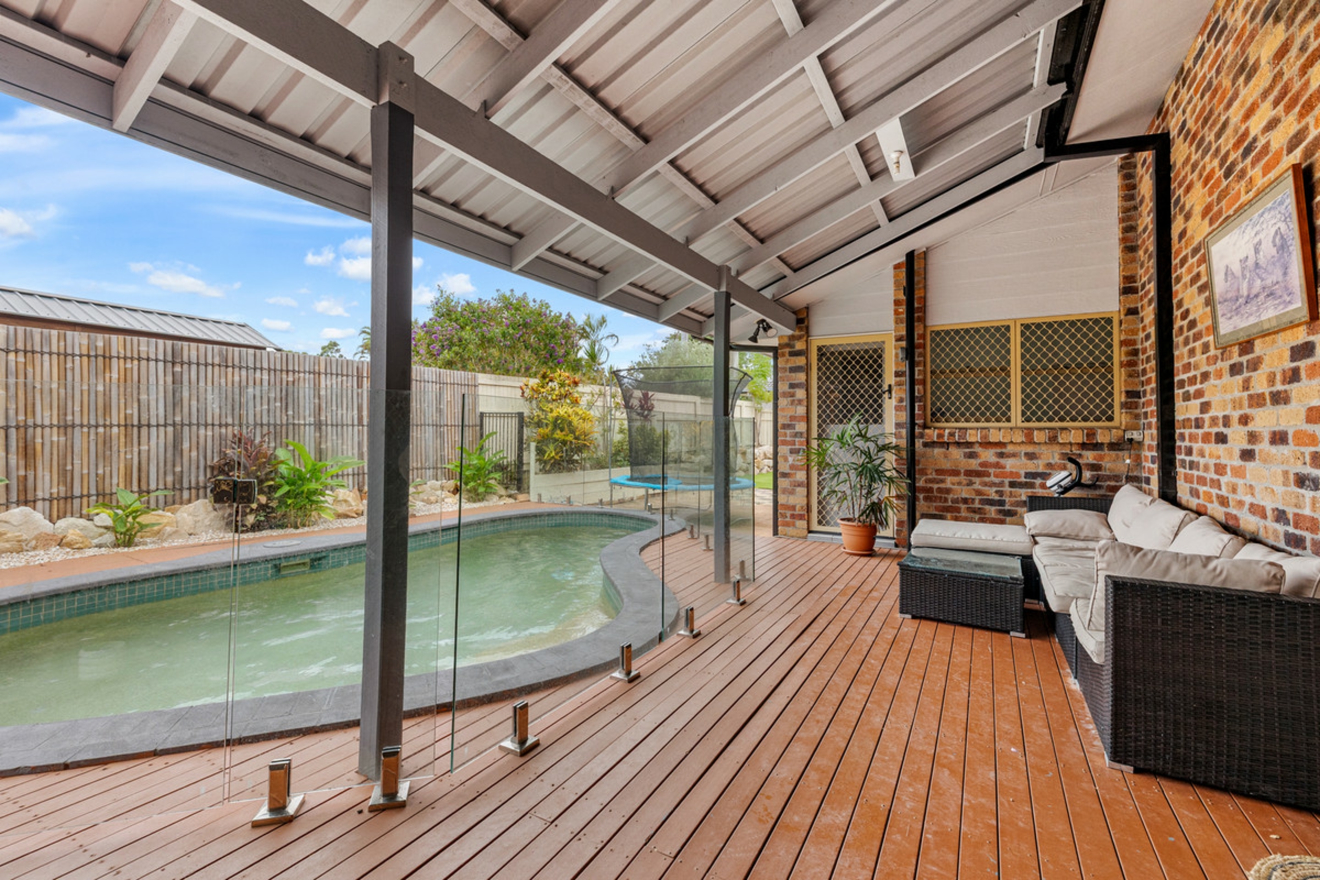 • Covered entertaining area overlooking family size inground pool