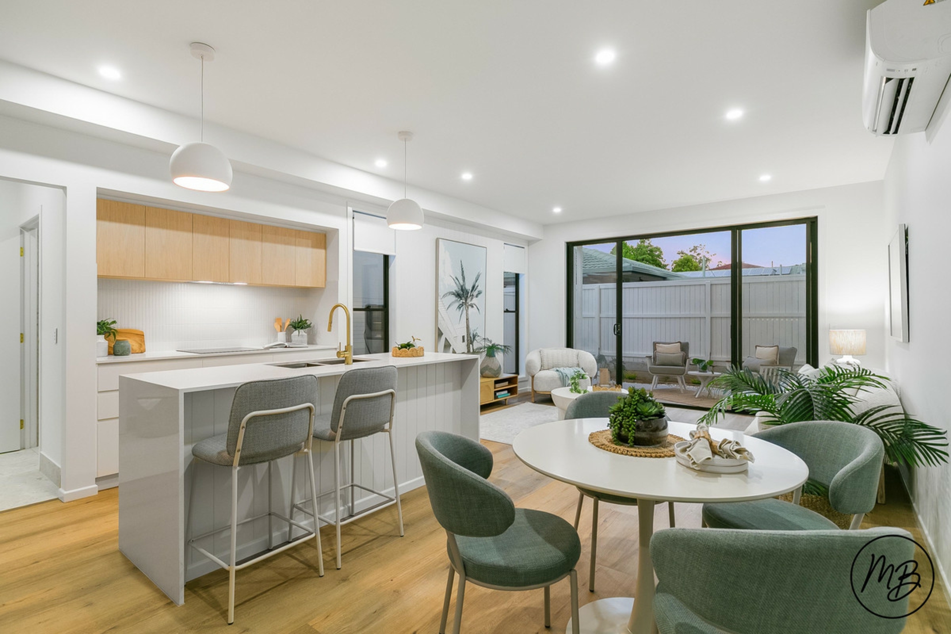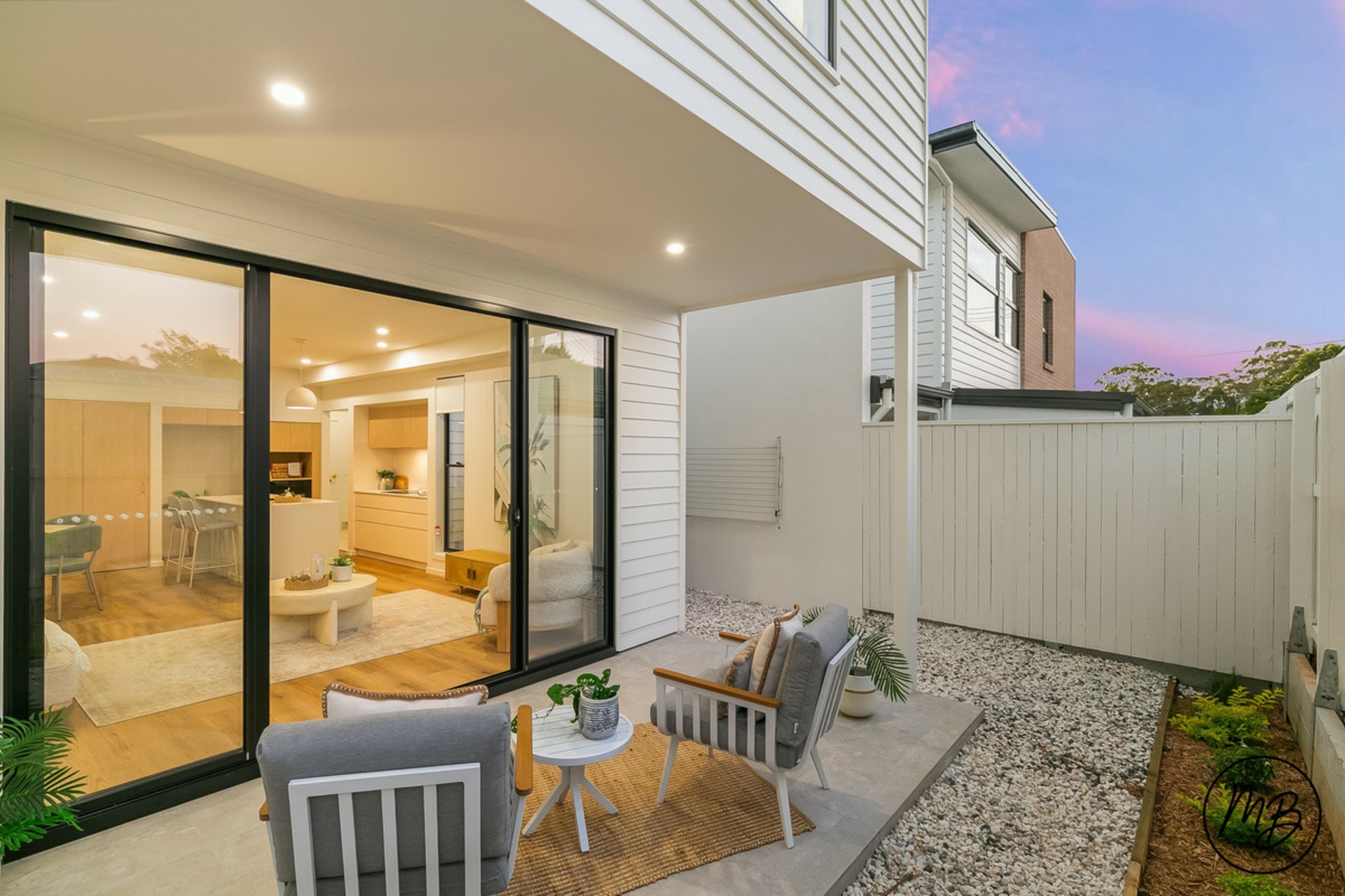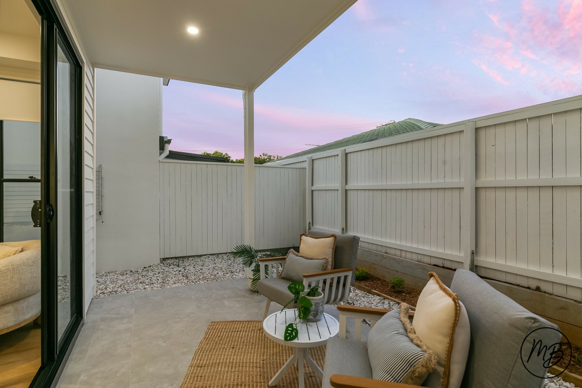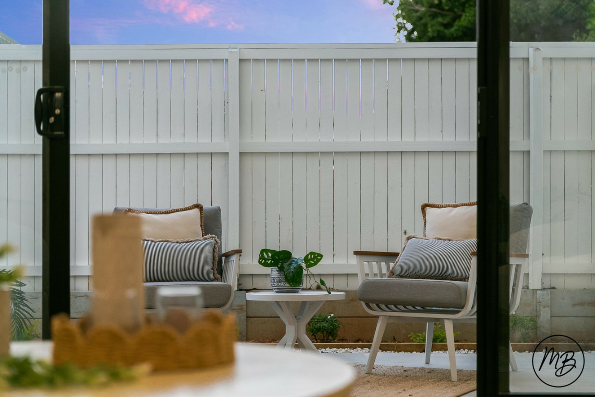 The open-plan living and dining area flows seamlessly to a tiled patio and landscaped courtyard - a private sanctuary perfect for entertaining or unwinding in complete comfort.