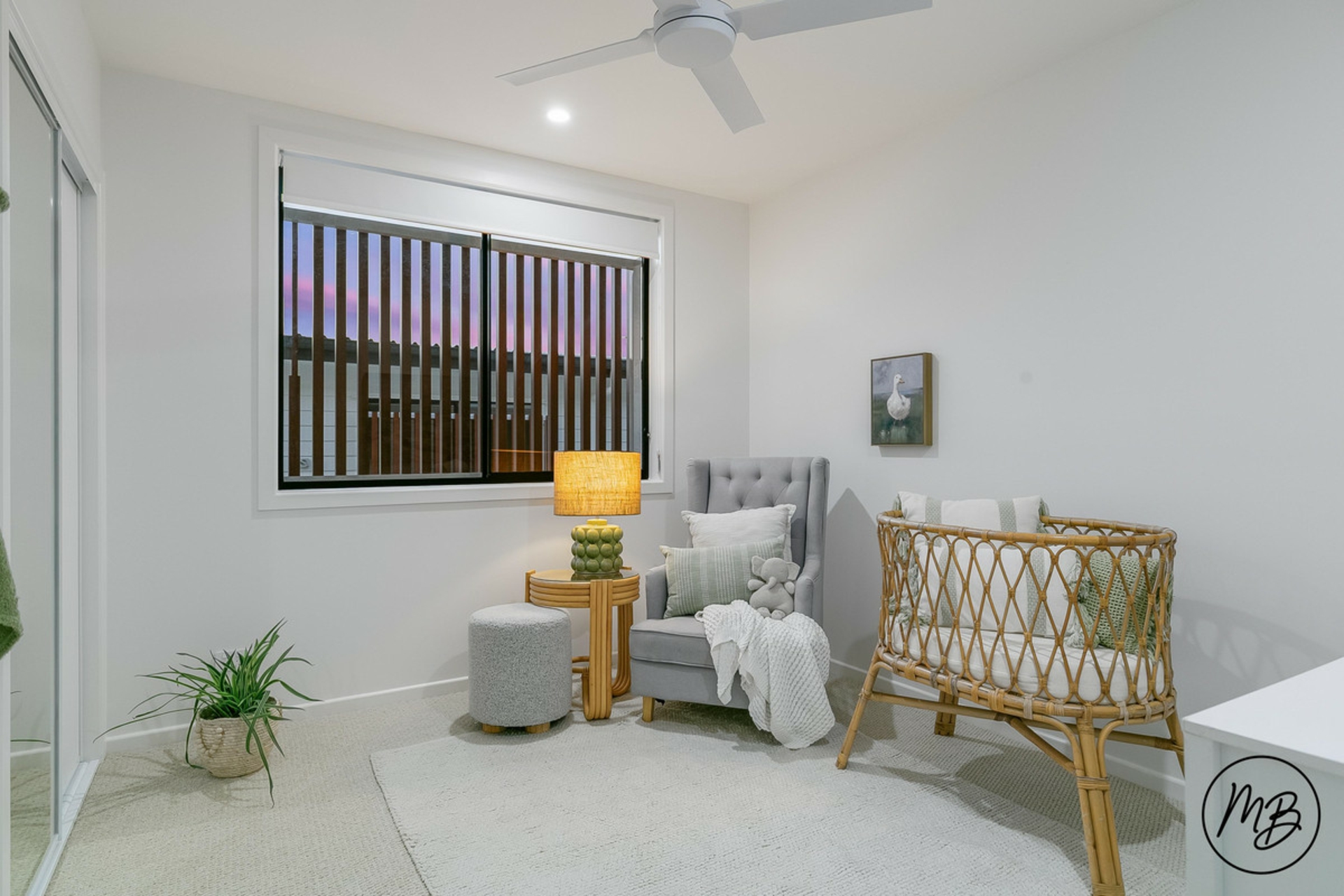Upstairs, an additional living retreat provides versatility for growing families or professionals working from home. A convenient ground-floor powder room adds further everyday functionality.