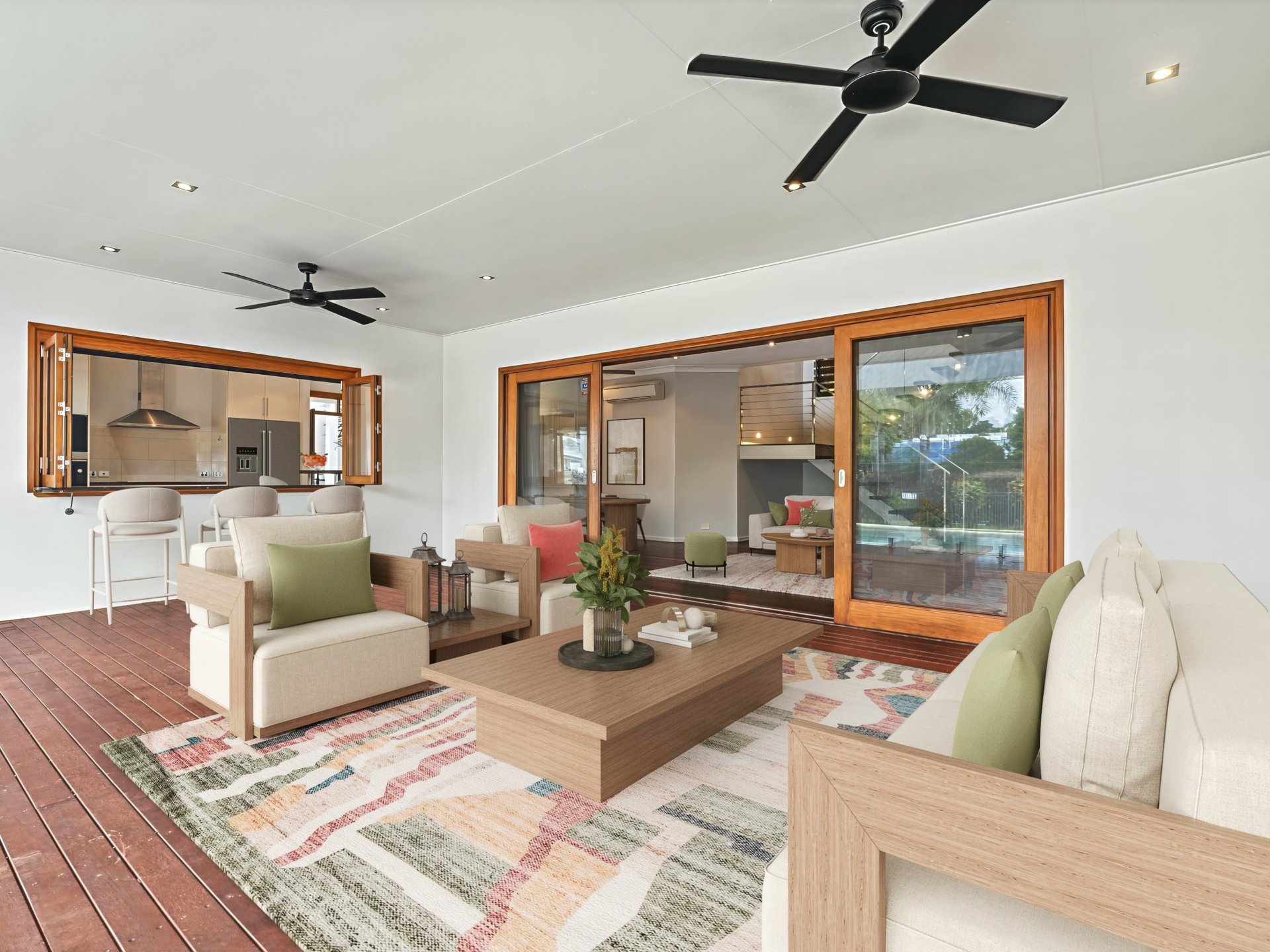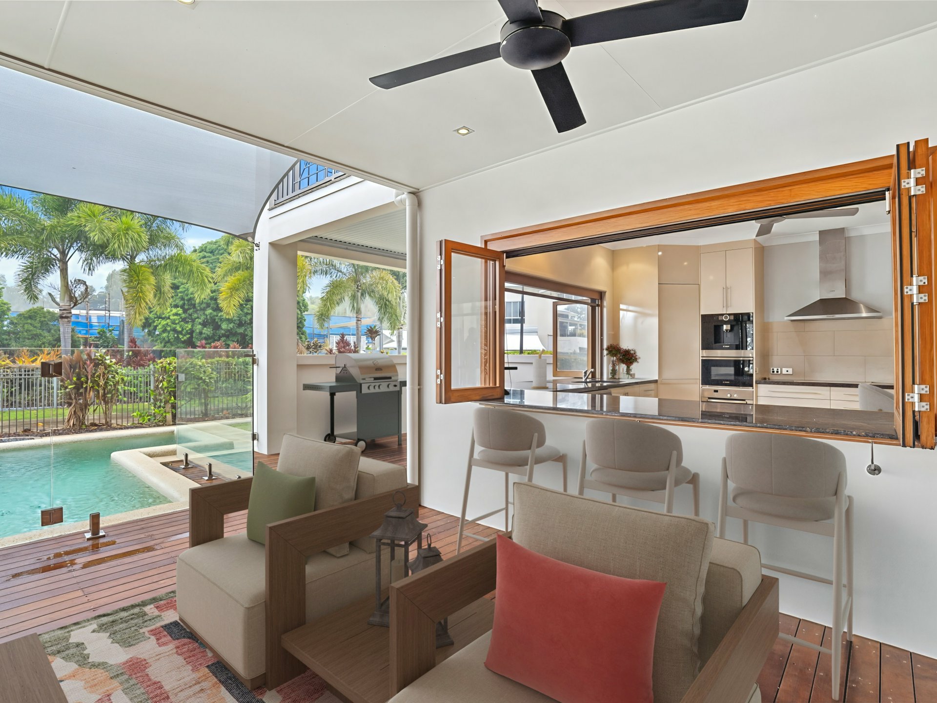 • Fully screened with timber louvres and doors, perfect for tropical breezes