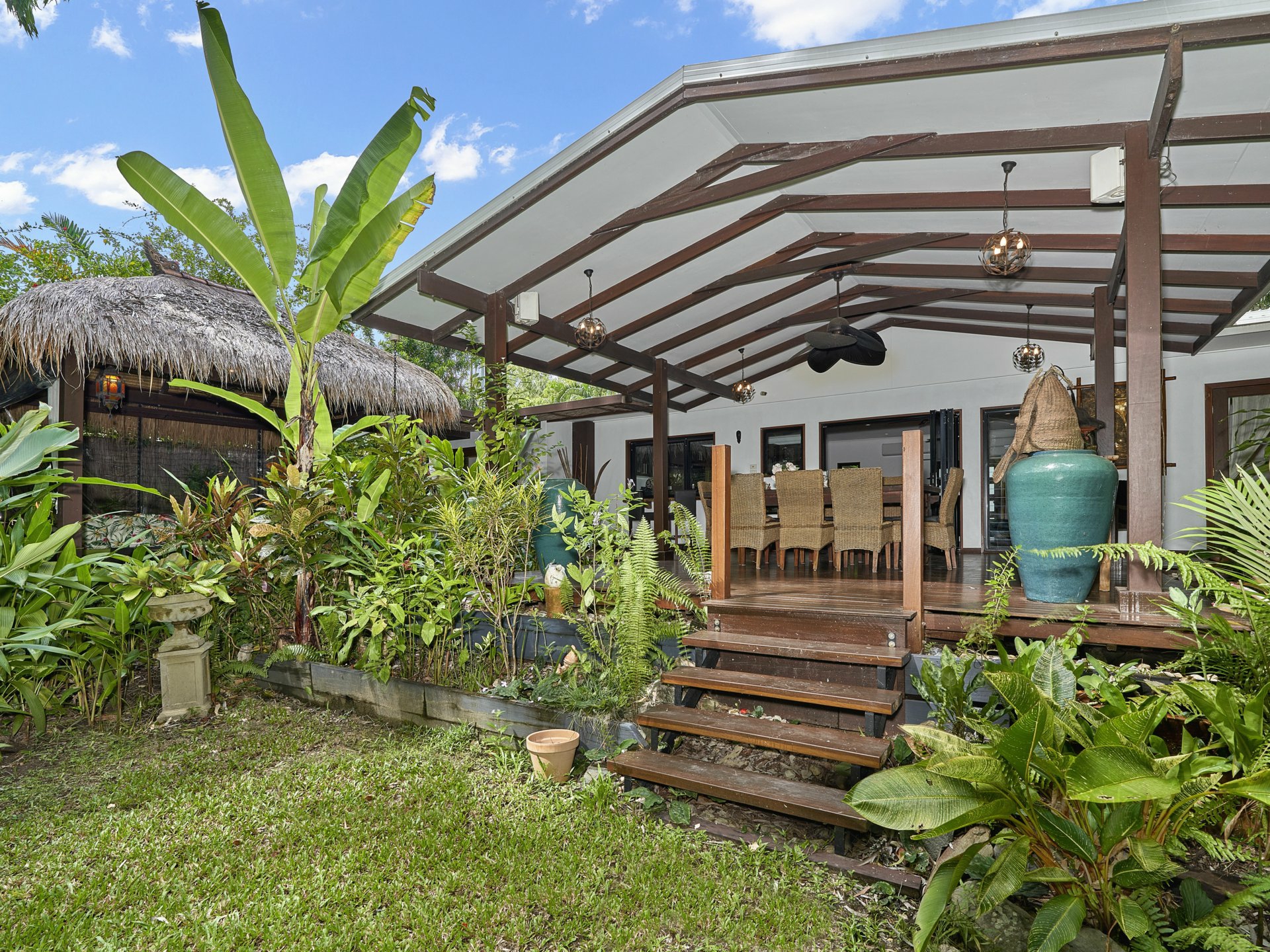 With lush tropical gardens surrounding the 3 bedroom home and 2 very large undercover patio areas, you will feel like you are in a Tropical Oasis when you come home each day!