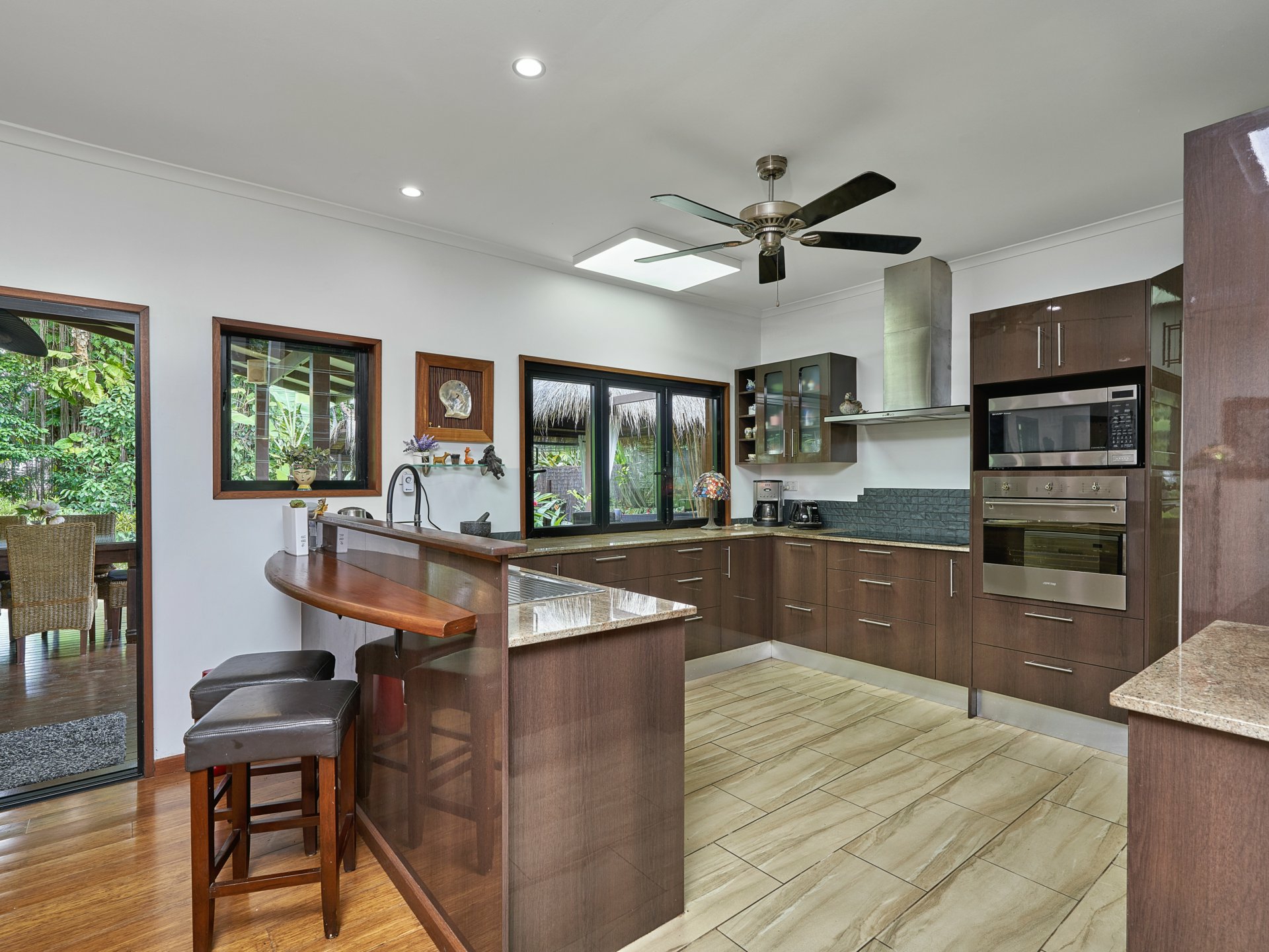 This unique Bali-inspired home has been lovingly renovated and gives the WOW factor. Open plan living design from the moment you open the front door, flowing to the outdoor areas, which overlook the thick rainforest inspired gardens.