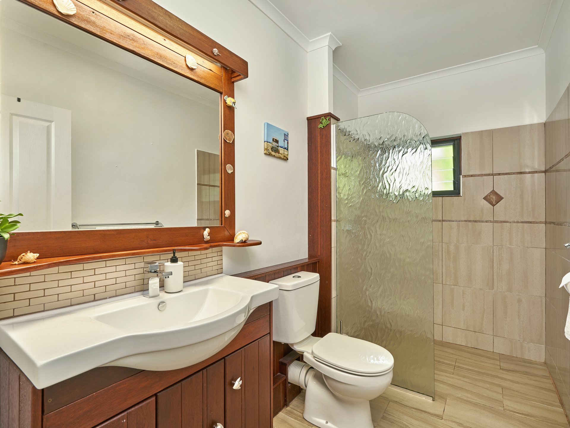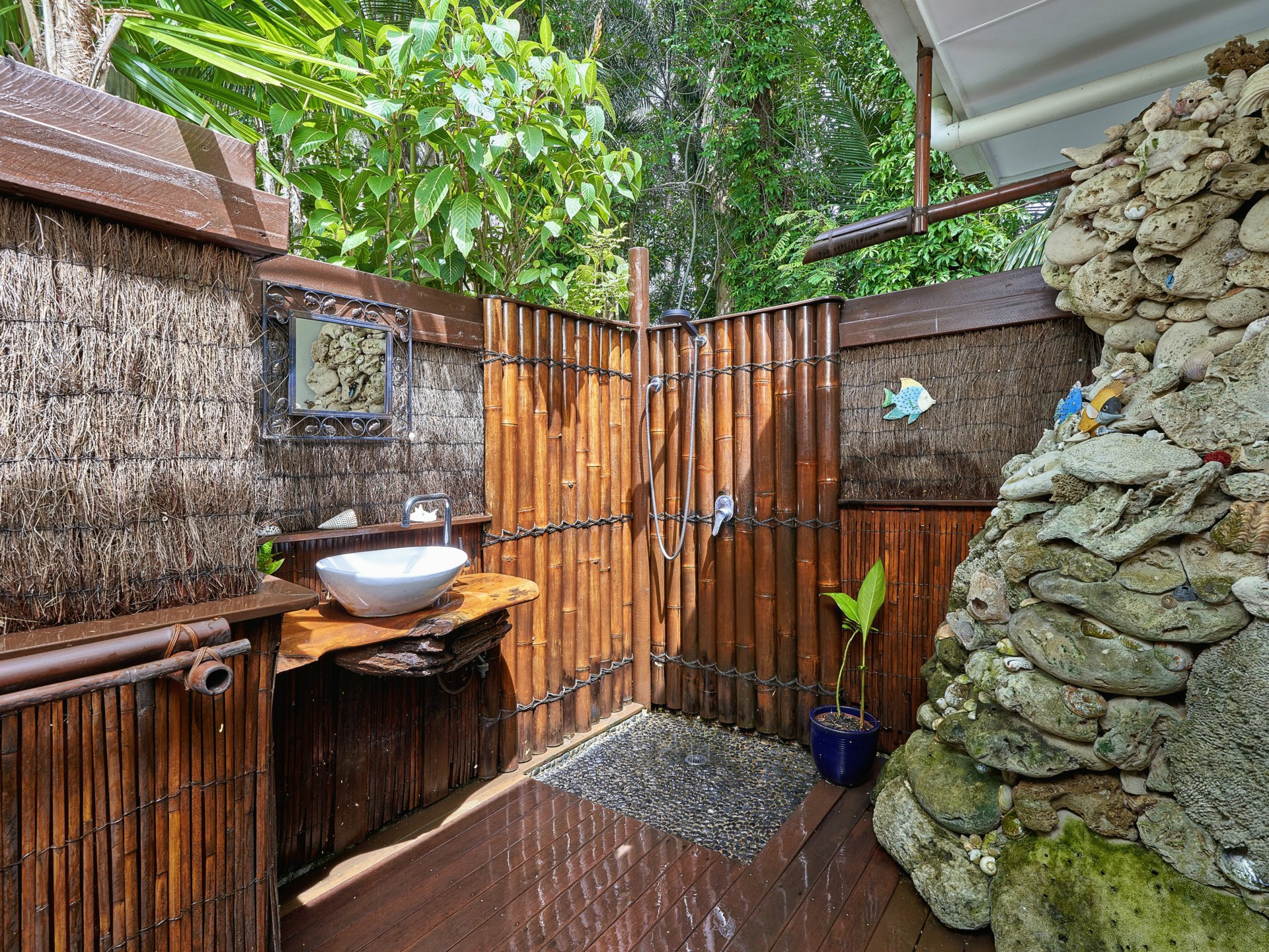 2 Bathrooms- Ensuite with outdoor coral shower.