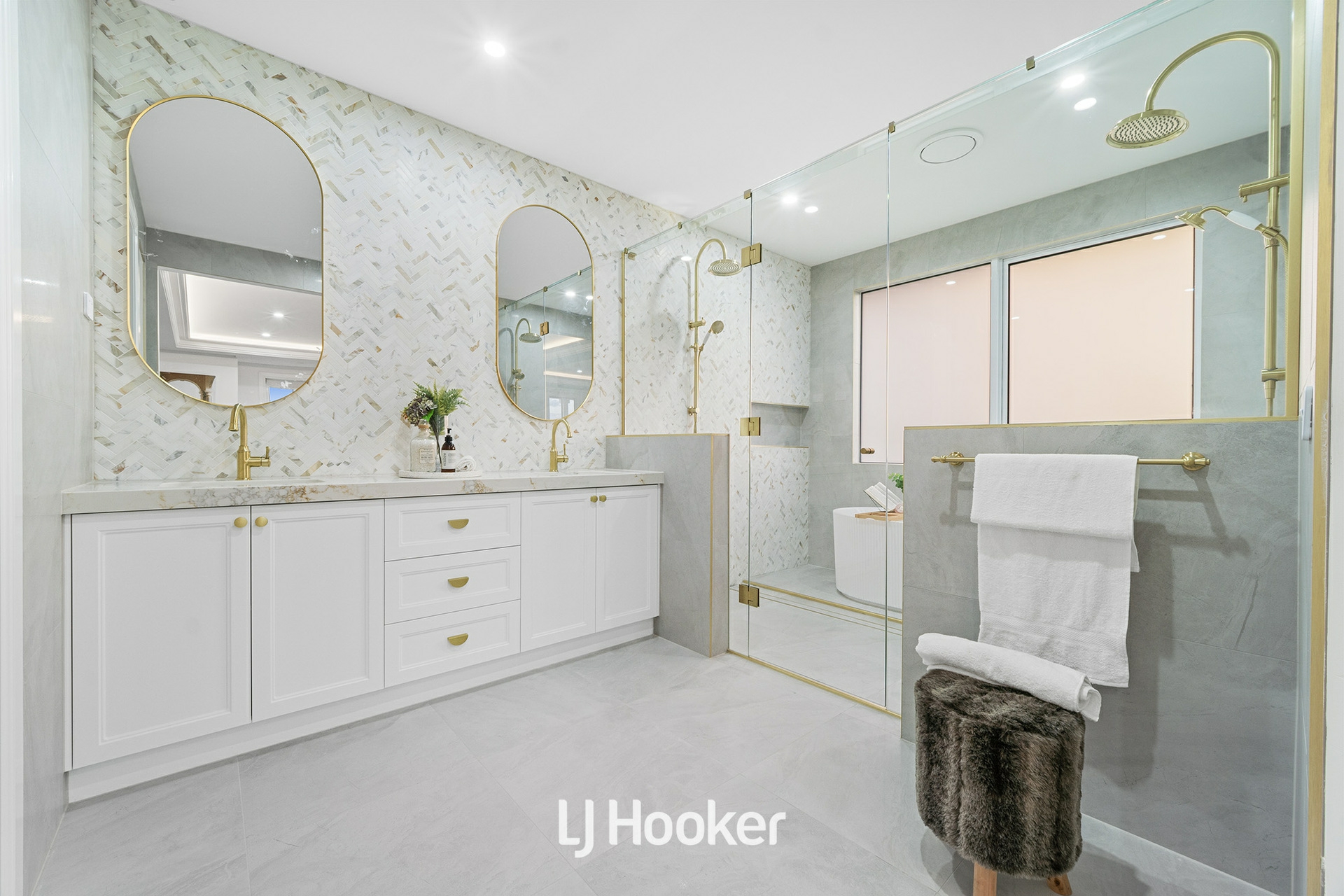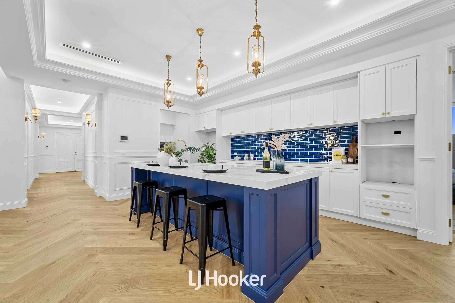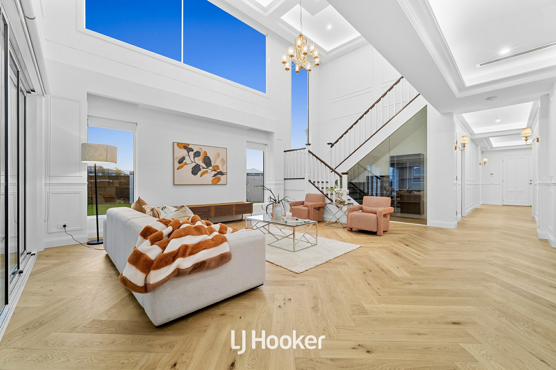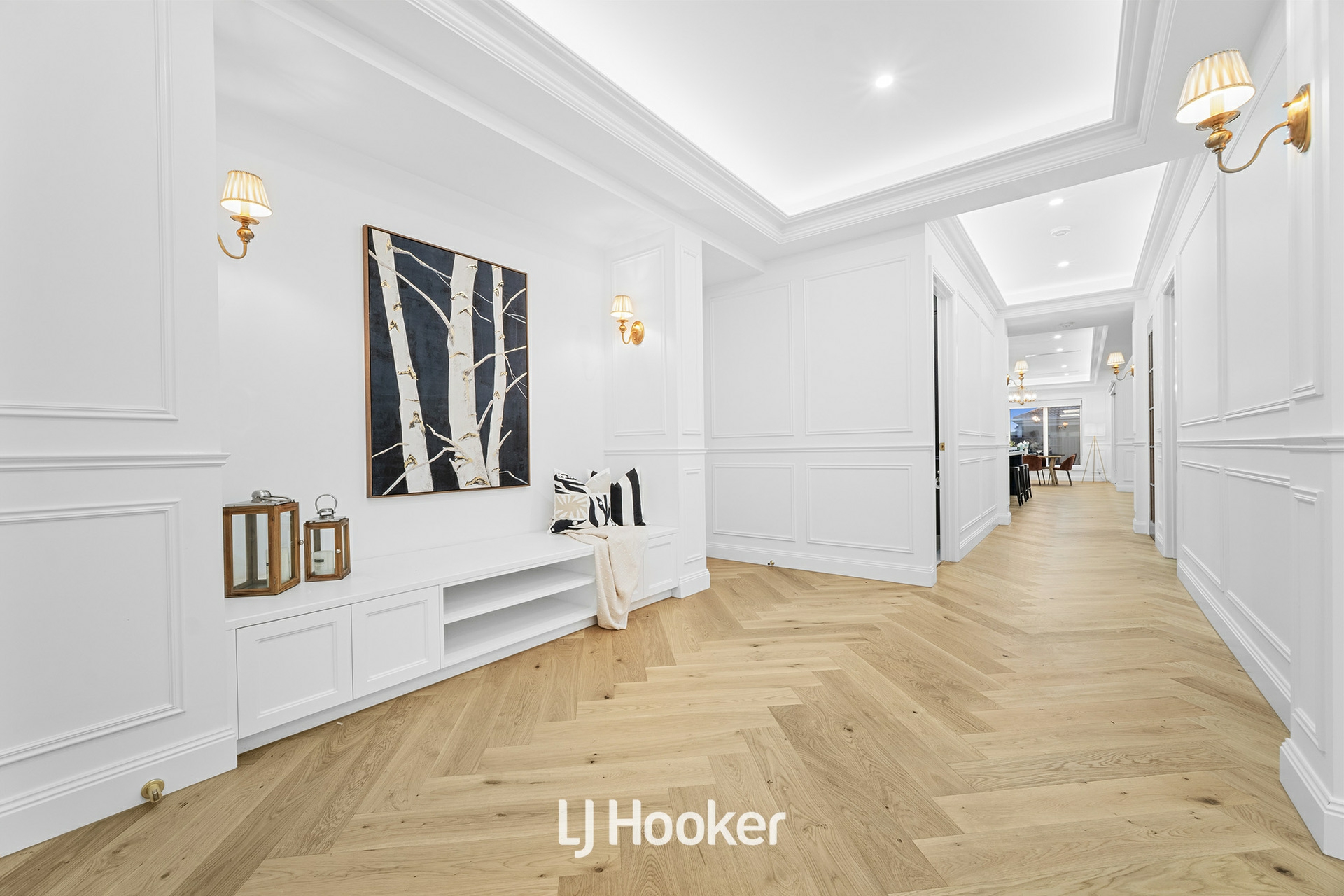 From the moment you enter, the home impresses with its generous proportions, high ceilings and quality finishes throughout. Herringbone timber flooring flows through the main living areas, complemented by refined detailing, feature ceiling treatments, elegant chandeliers, and an abundance of natural light, creating a sophisticated yet welcoming atmosphere.