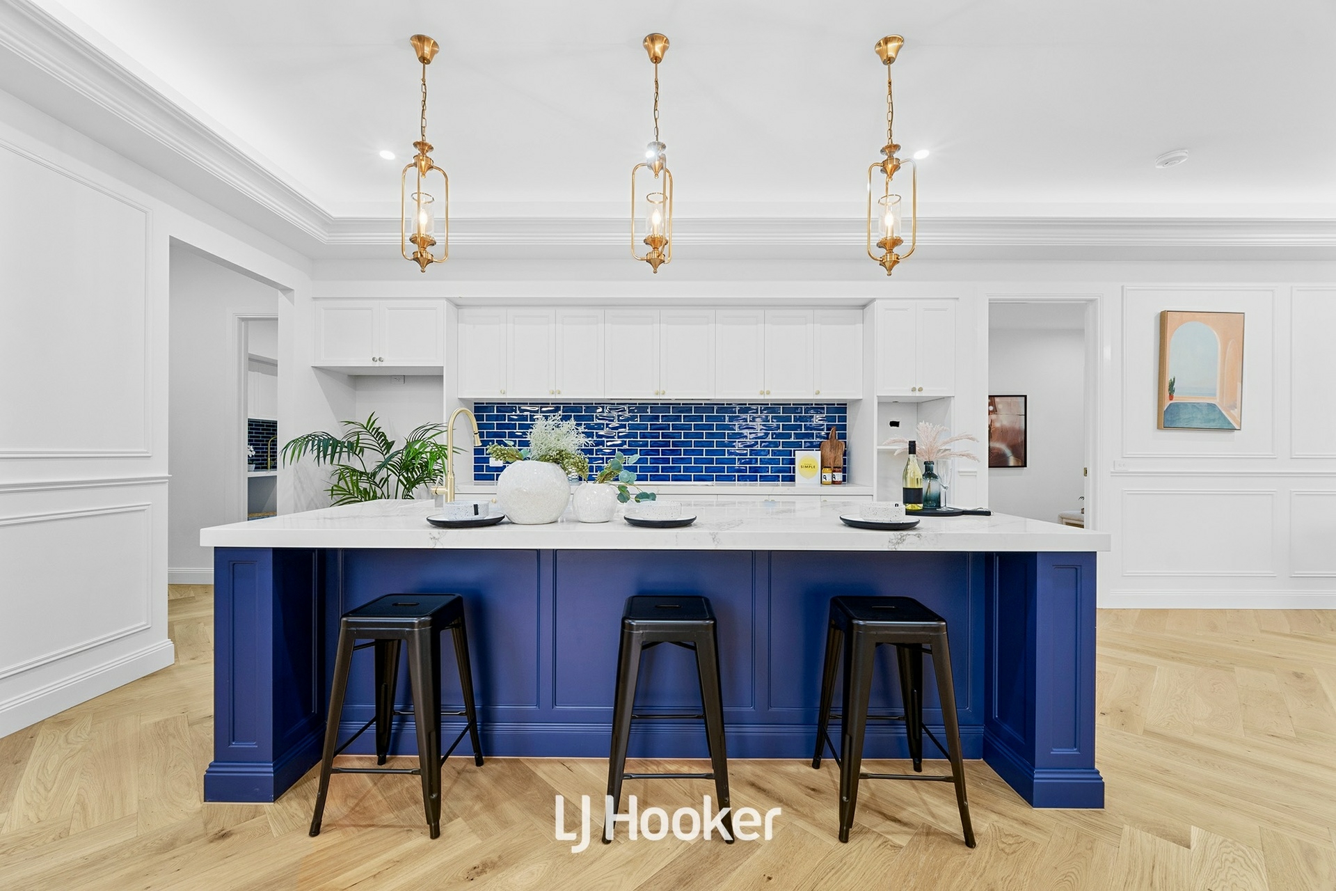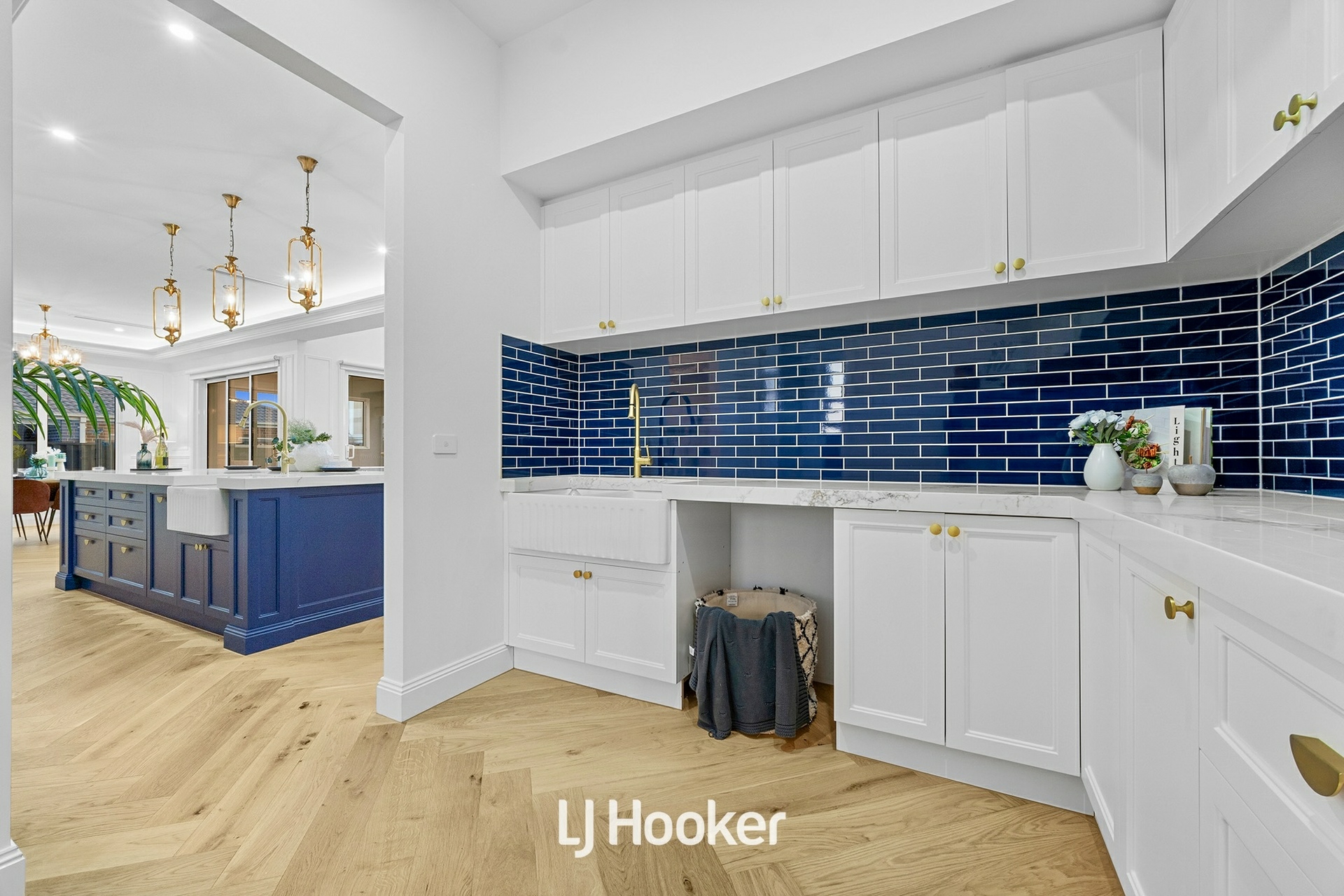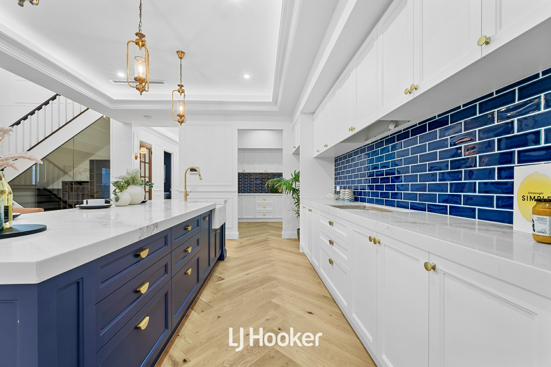 The ground floor offers multiple living zones including a formal living area, an expansive family and meals domain and a separate theatre room, providing outstanding flexibility for everyday living and entertaining. The heart of the home is the impressive kitchen, featuring a large island bench and a fully appointed butler's pantry, perfectly positioned to service the main living areas and alfresco.