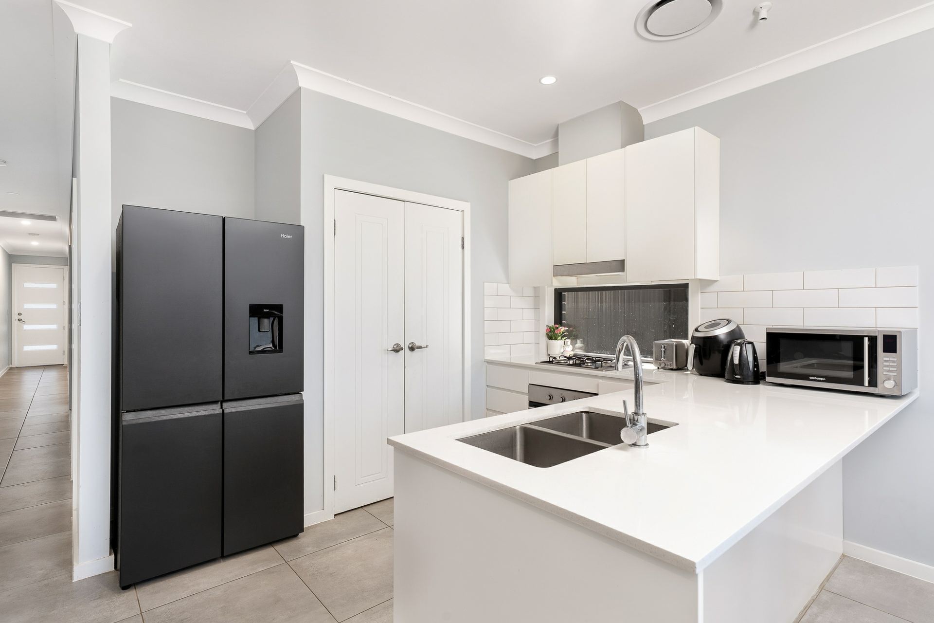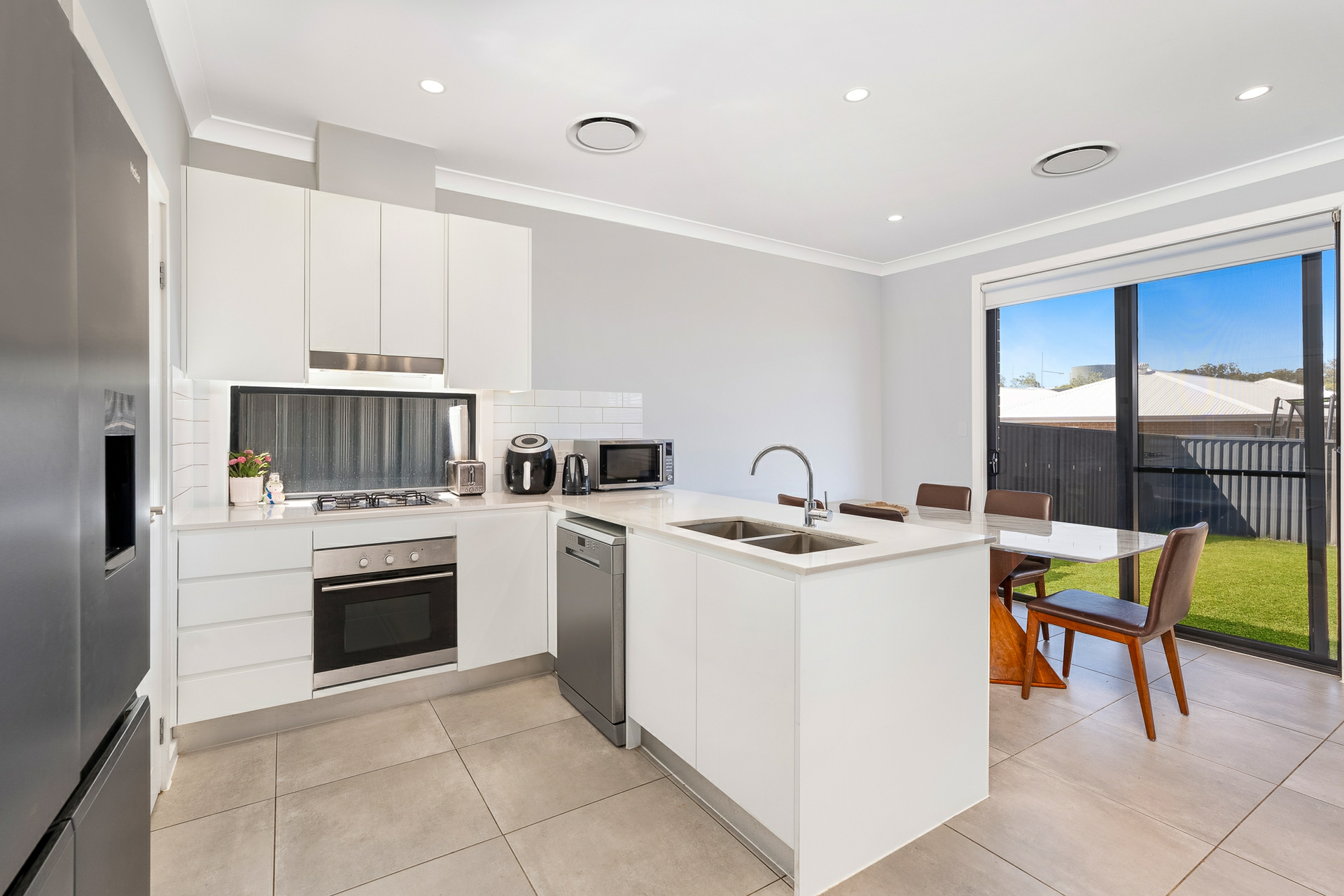 Set on a 300 sq. m• block and built by Dream Scope Homes, the residence offers a practical open-plan layout with the living, dining and kitchen zones flowing together. The kitchen is equipped with gas cooking, dishwasher and a walk-in pantry, while tiled flooring throughout the main areas and high ceilings enhance the sense of light and space.