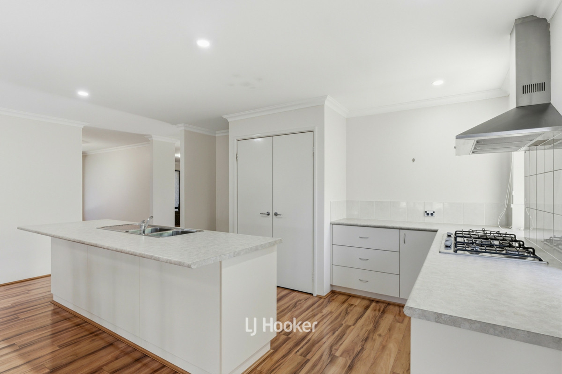 At the heart of the home, the open plan kitchen, dining and living area showcases modern sophistication and effortless flow. The sleek kitchen is appointed with quality stainless steel appliances including a dishwasher, oven and cooktop, while a large floor to ceiling double door pantry provides outstanding storage and practicality. Designed for seamless indoor outdoor entertaining, the living space extends to an alfresco and cable patio, creating the perfect setting for year round dining and relaxed gatherings.