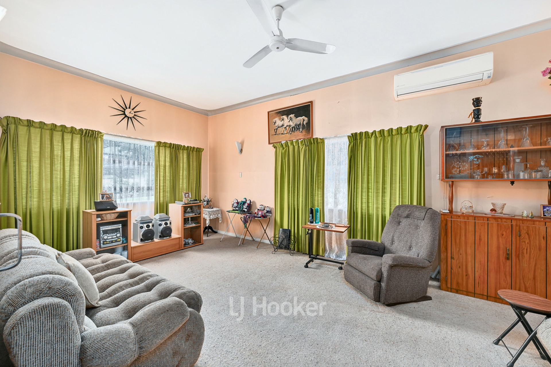 -Lounge with ceiling fan, reverse cycle air-conditioning and carpet underfoot