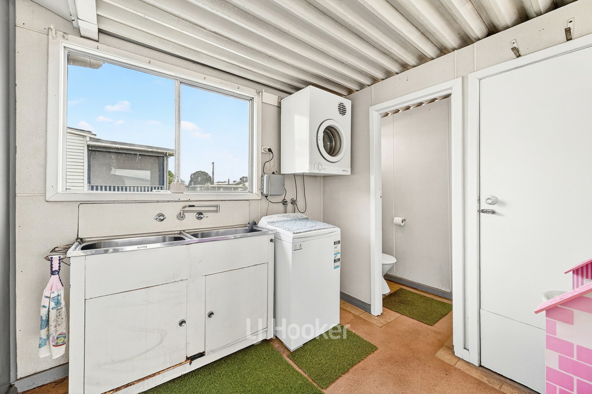 -Outdoor laundry with single wash trough and separate W/C