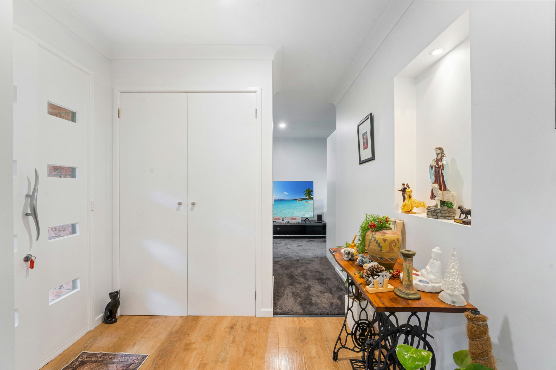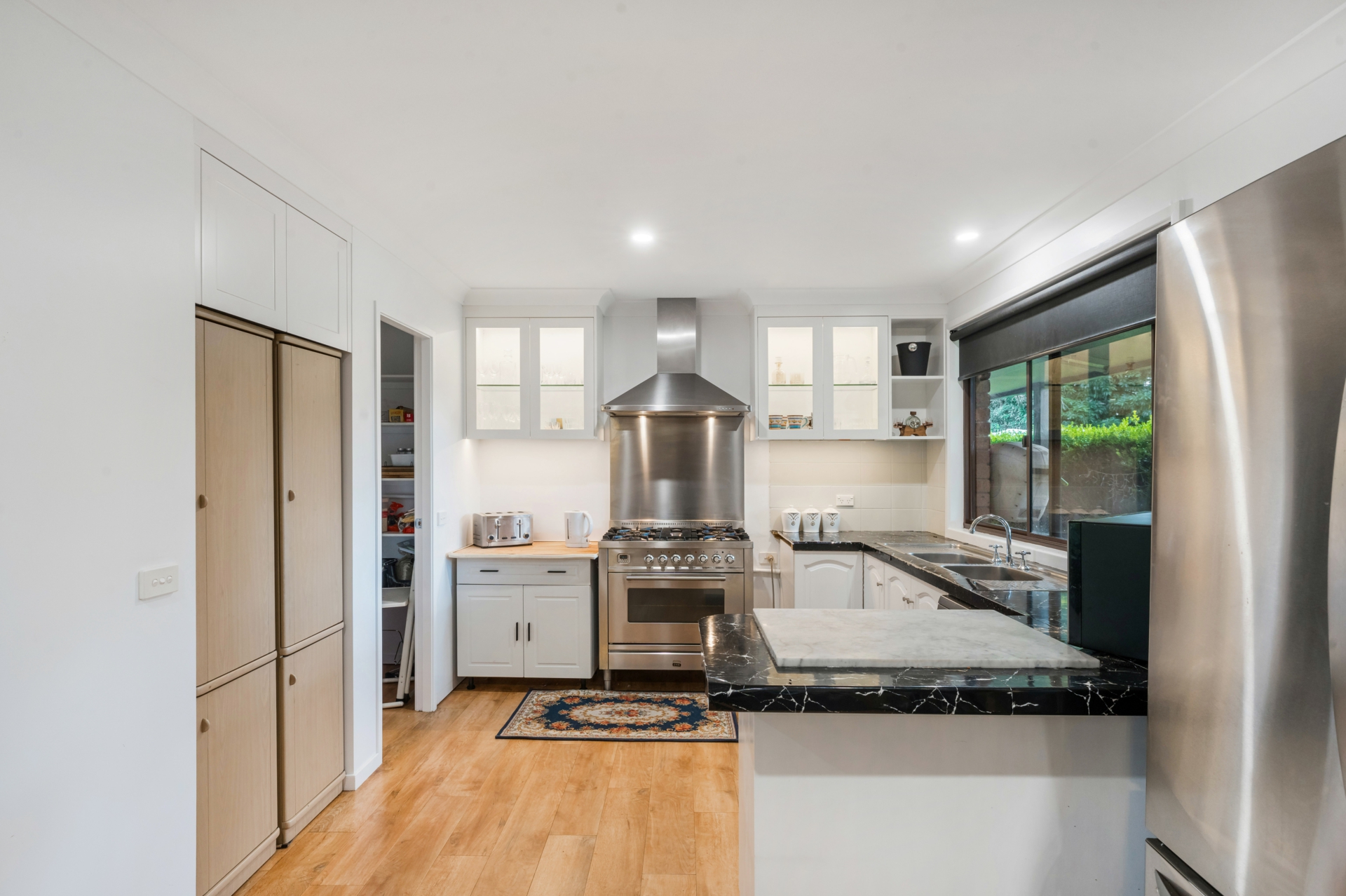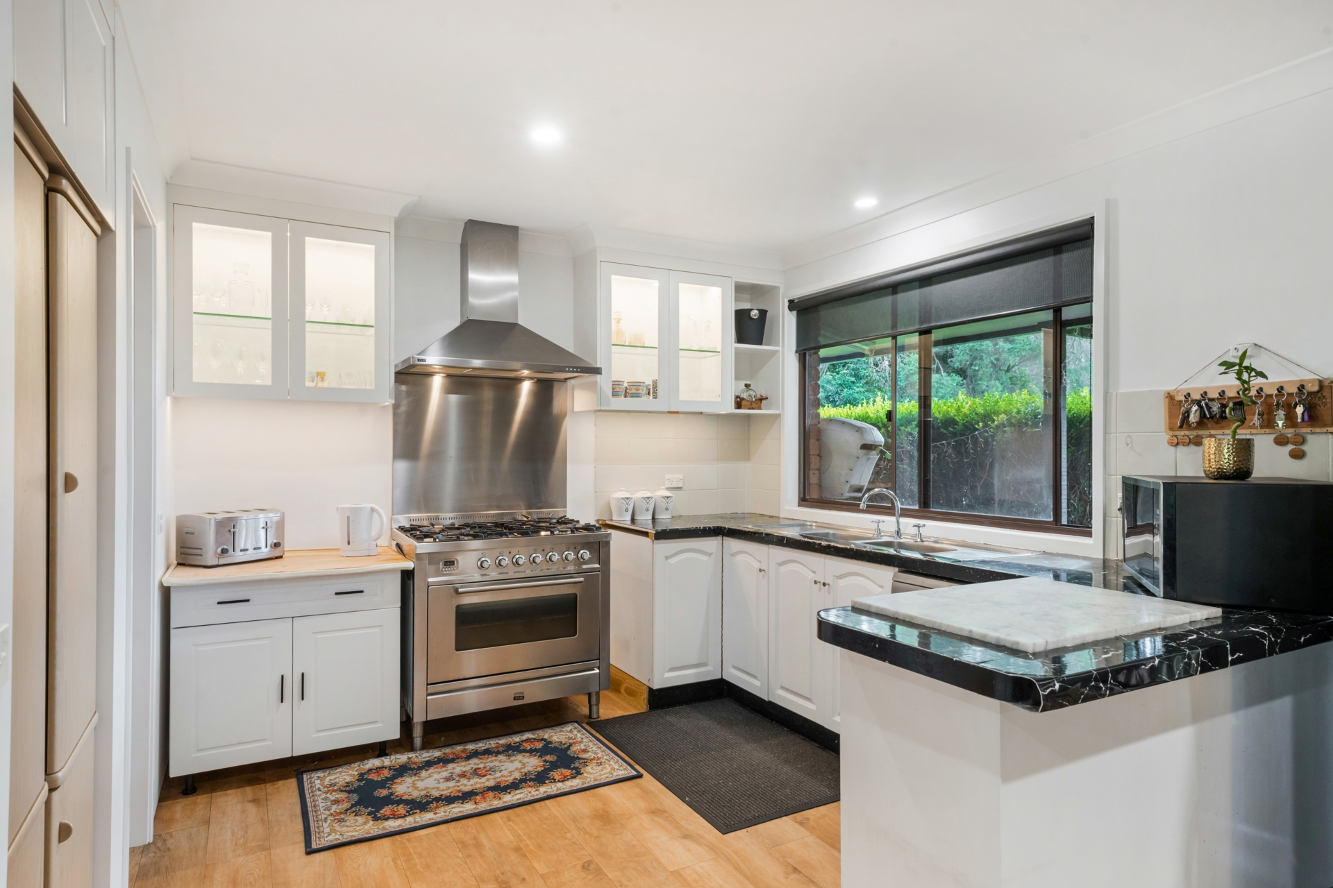 This beautifully presented home features four generous bedrooms, all with built-in wardrobes, including a renovated en-suite in the master. The open-plan layout offers a spacious lounge and dining area, complemented by a large, well-appointed kitchen with gas cooking, ample pantry storage, and modern downlight fittings throughout.