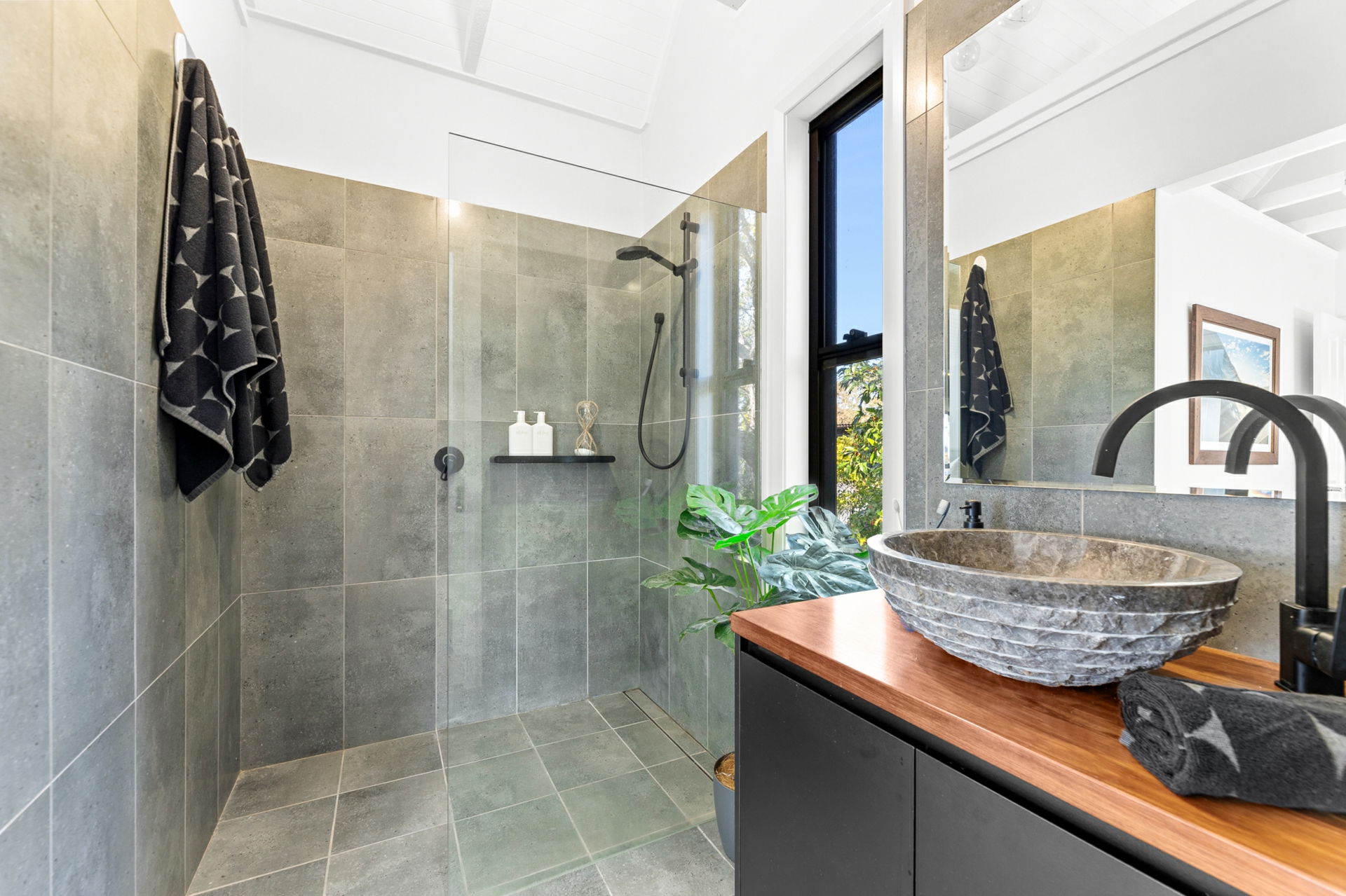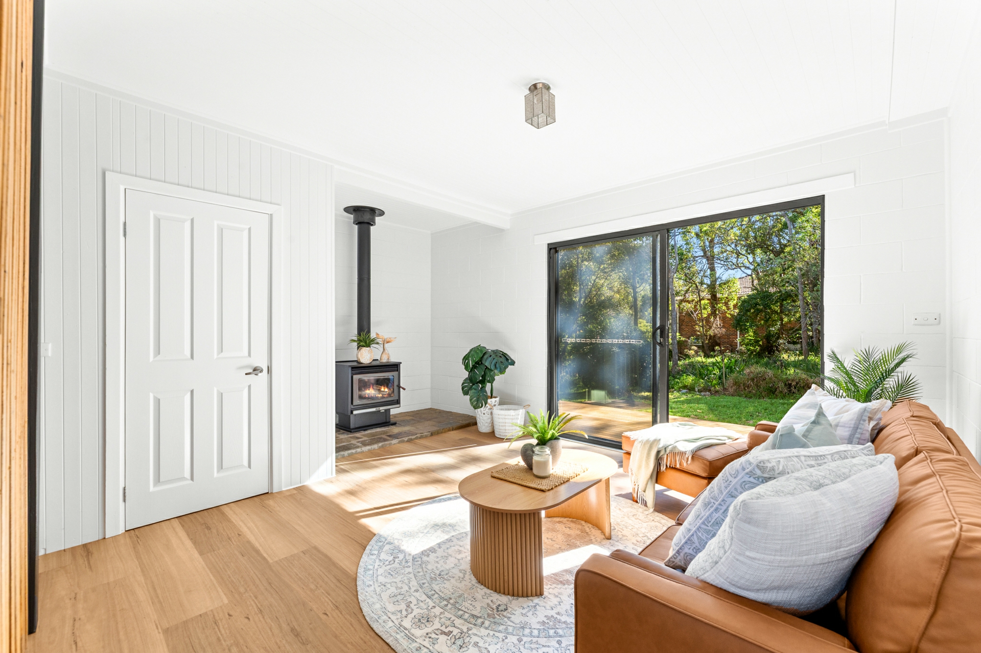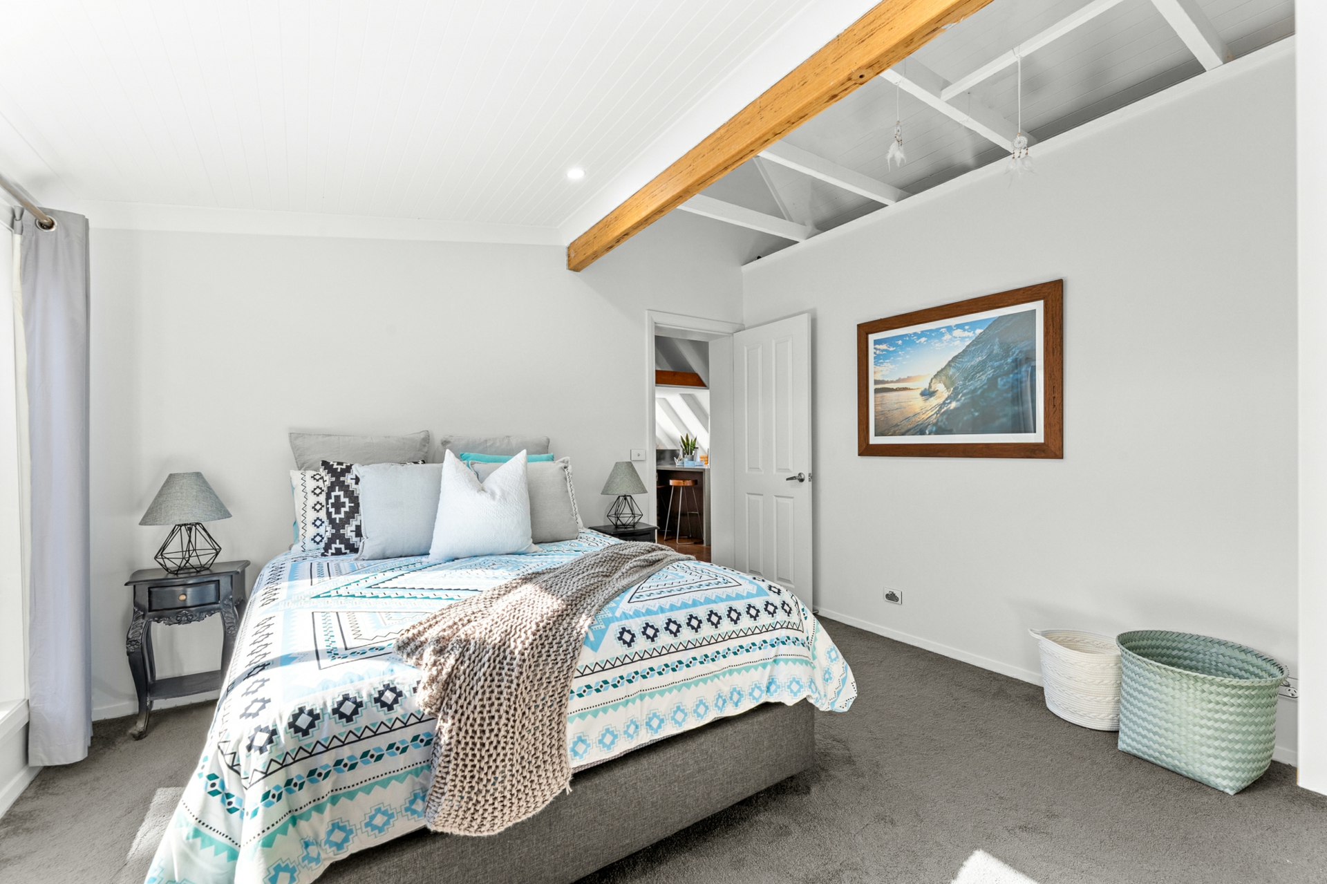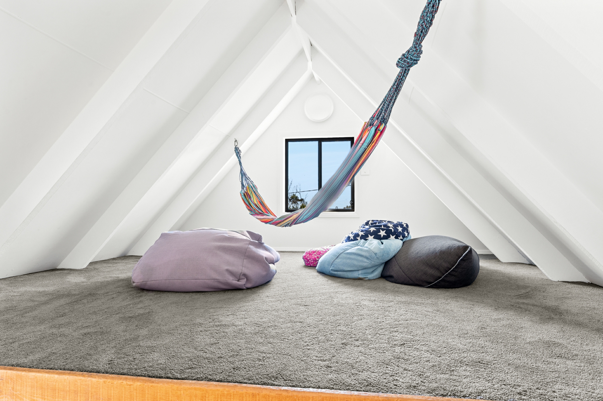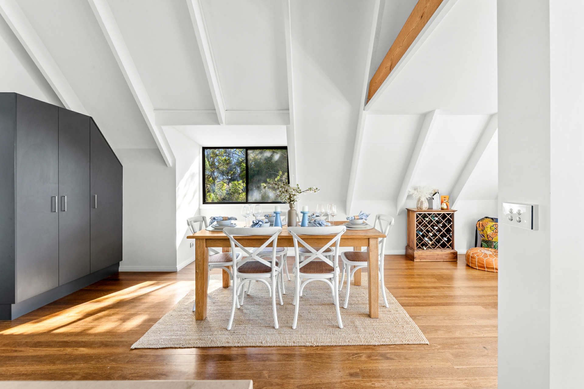 Upstairs, the light-filled heart of the home showcases a brand-new L-shaped kitchen complete with stone benchtops, breakfast bar, dishwasher, and soaring raked ceilings. The open-plan living and dining area flows effortlessly, capturing calming sea views and connecting to a unique mezzanine level above - the perfect retreat with a hammock for quiet moments.