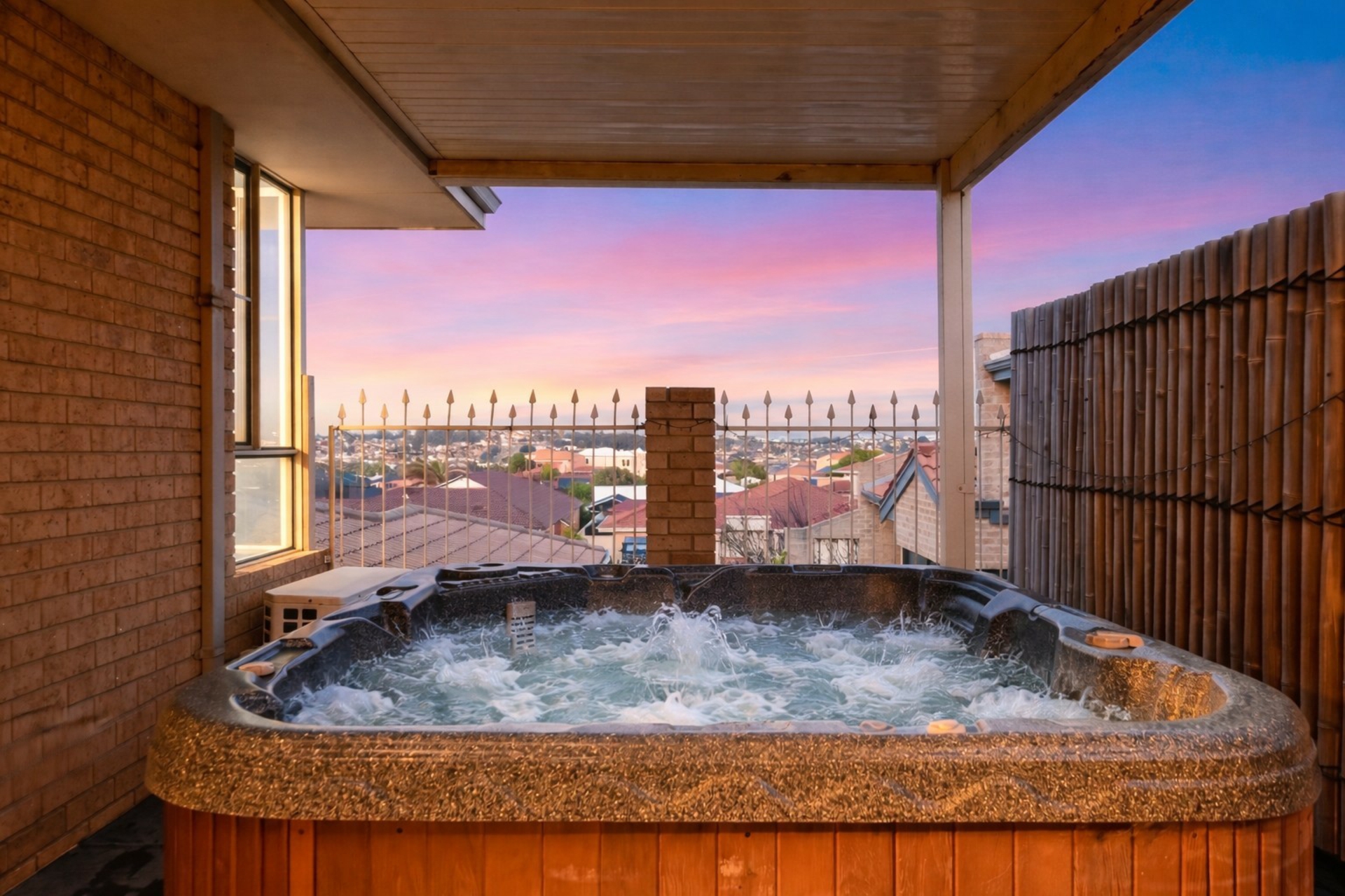 • Expansive back undercover patio with enclosed spa area, offering elevated views> The spa has a solar heat pump - saving hugely on electricity costs!