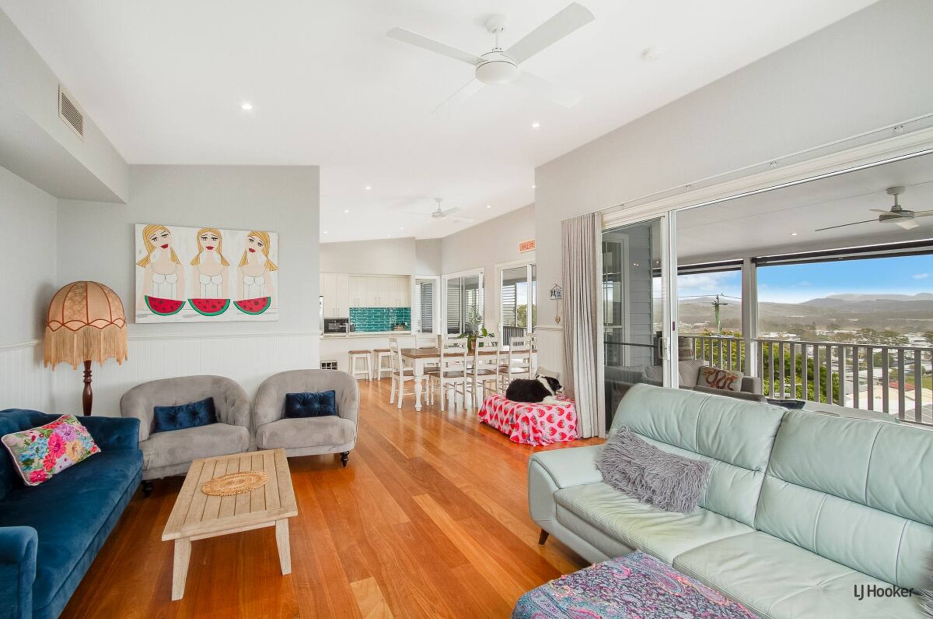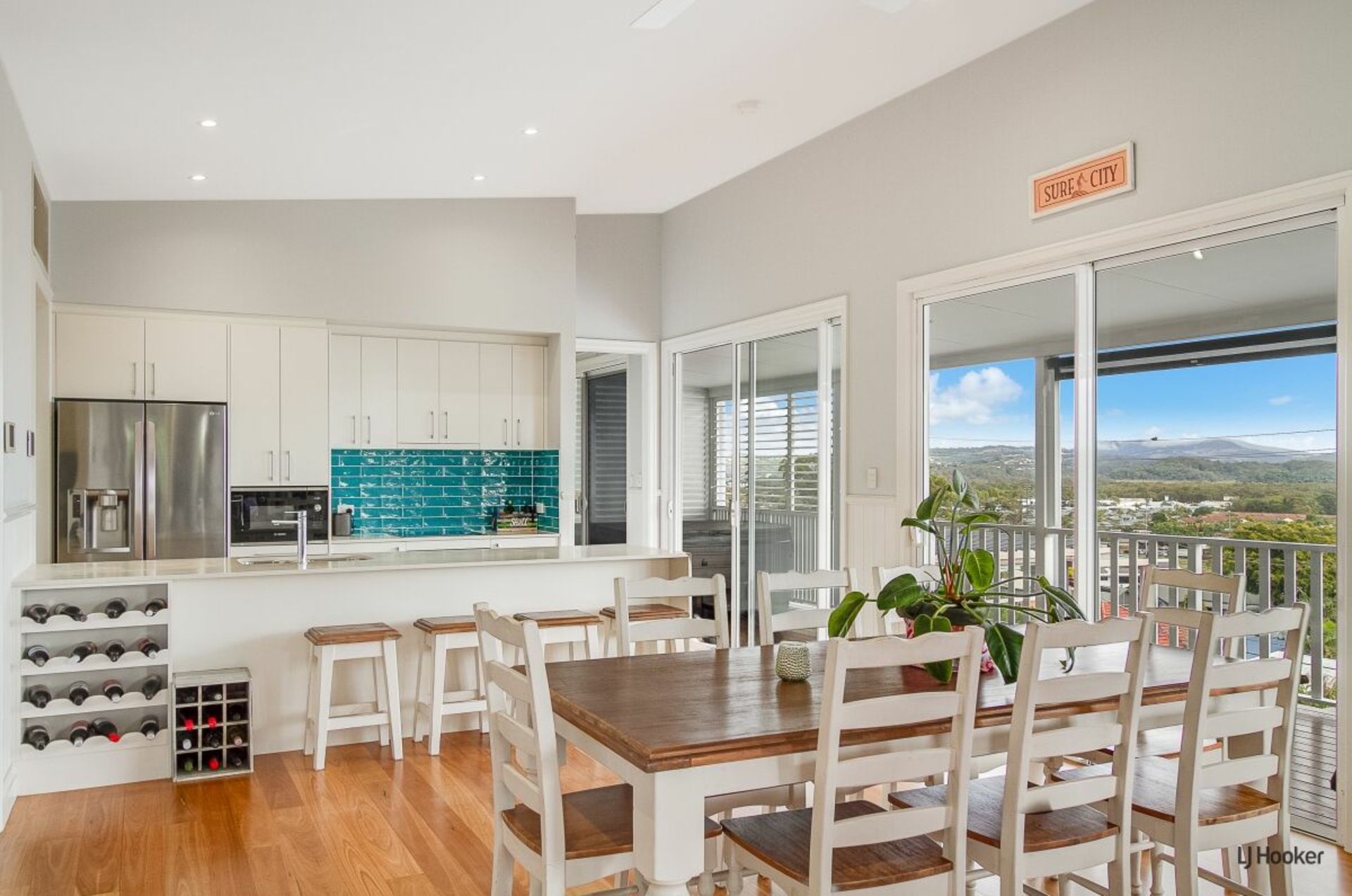 -Light-filled open plan living and dining framed by spectacular coastal and hinterland panoramas