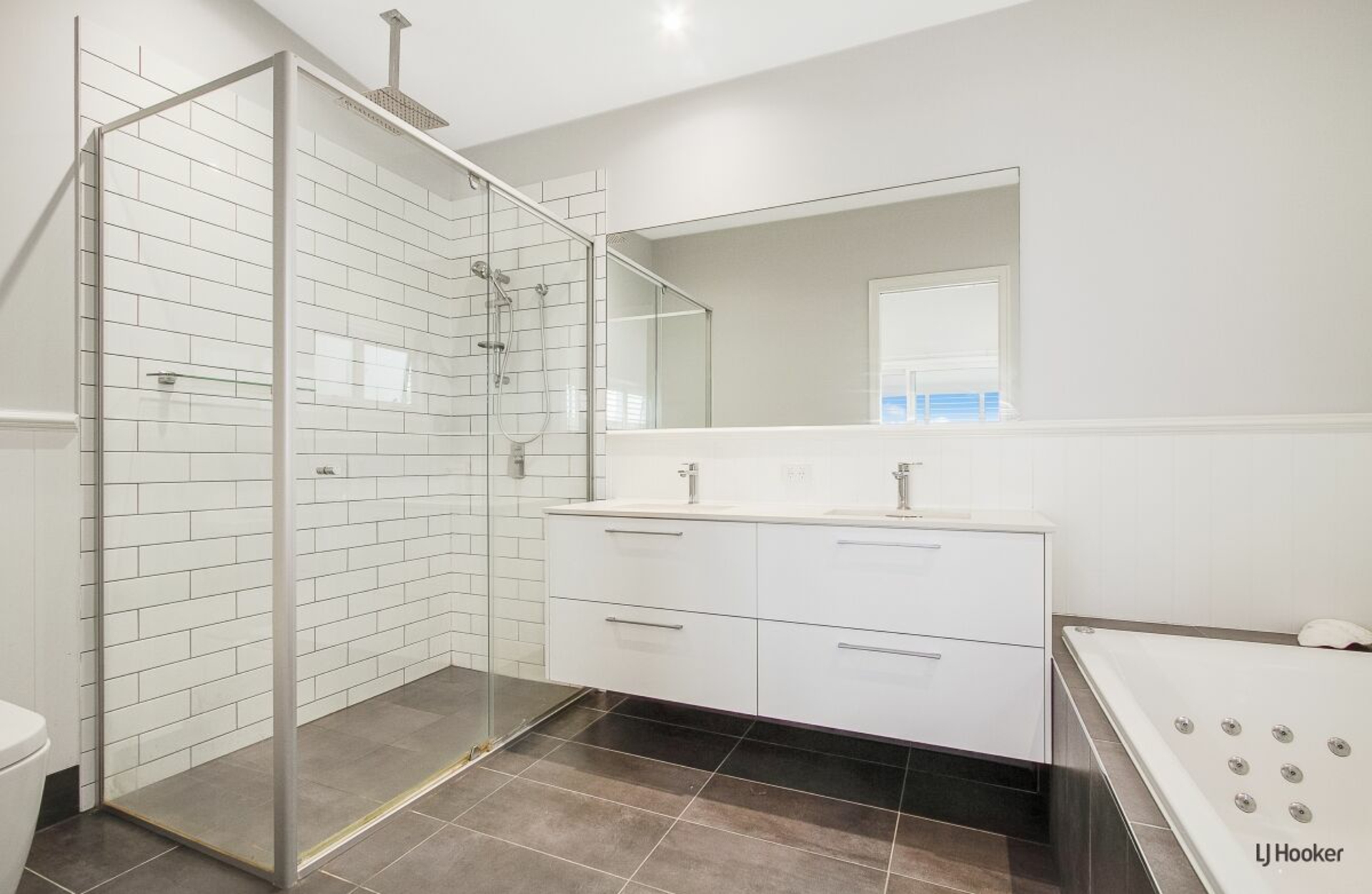 -Stylish main bathroom with oversized shower