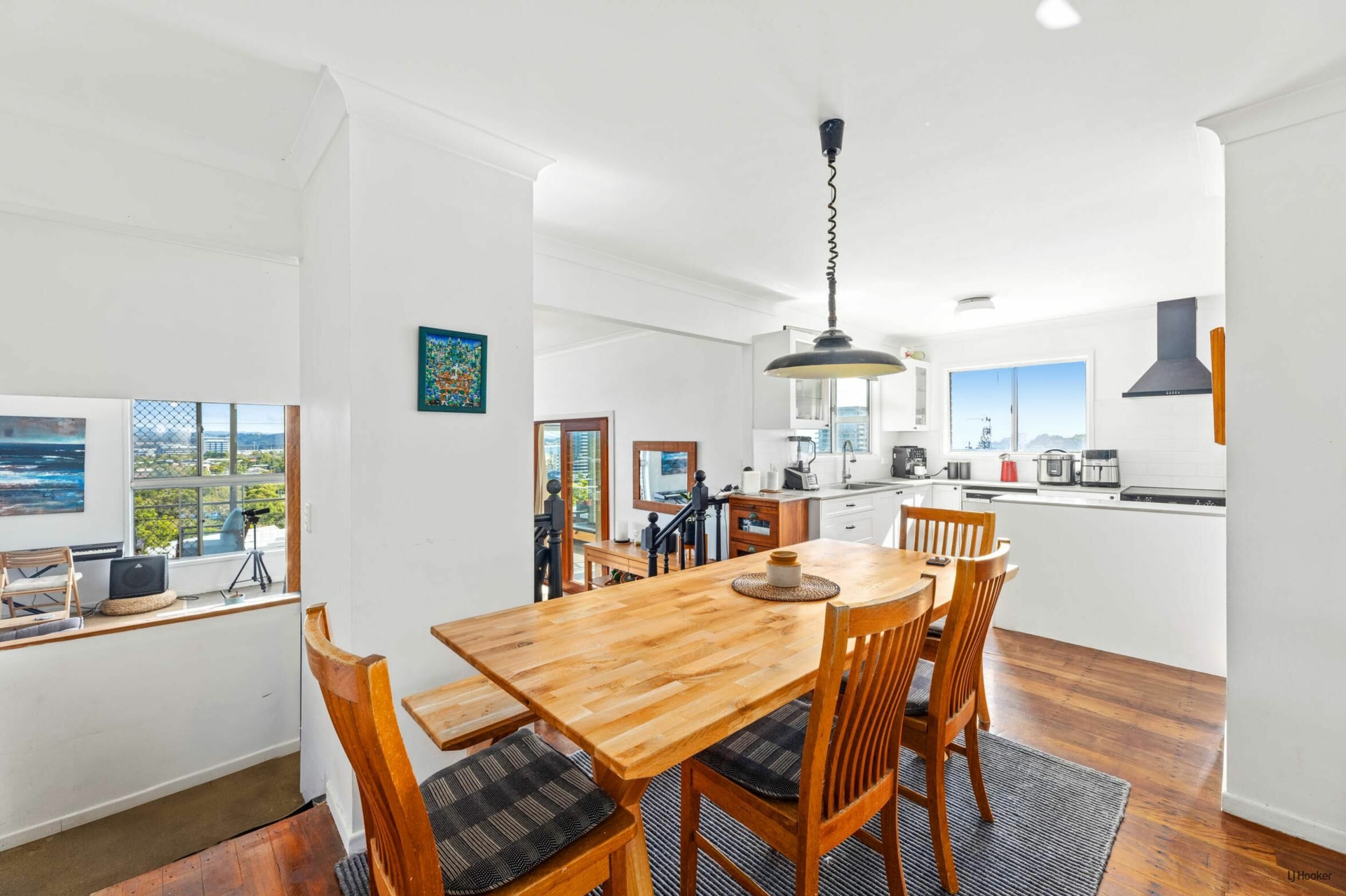 - Open-plan, split-level living, dining, and kitchen with sensational coastal views