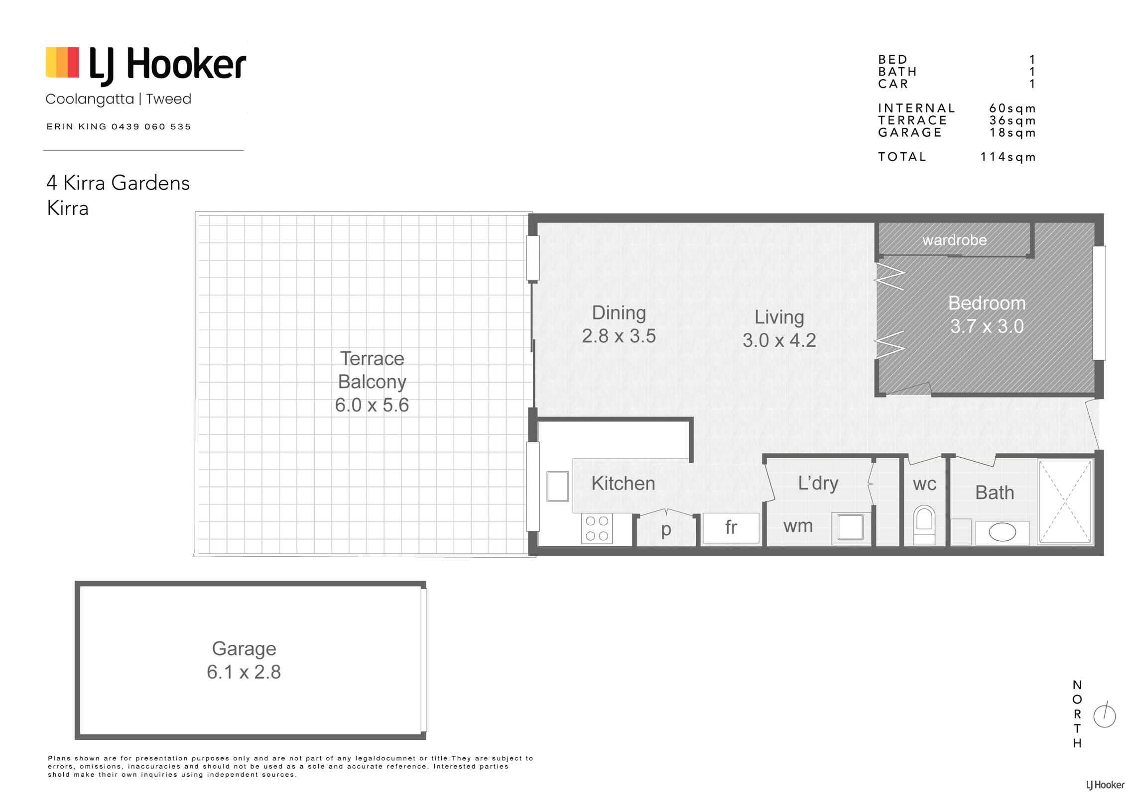- Total size of unit including garage: 114m2