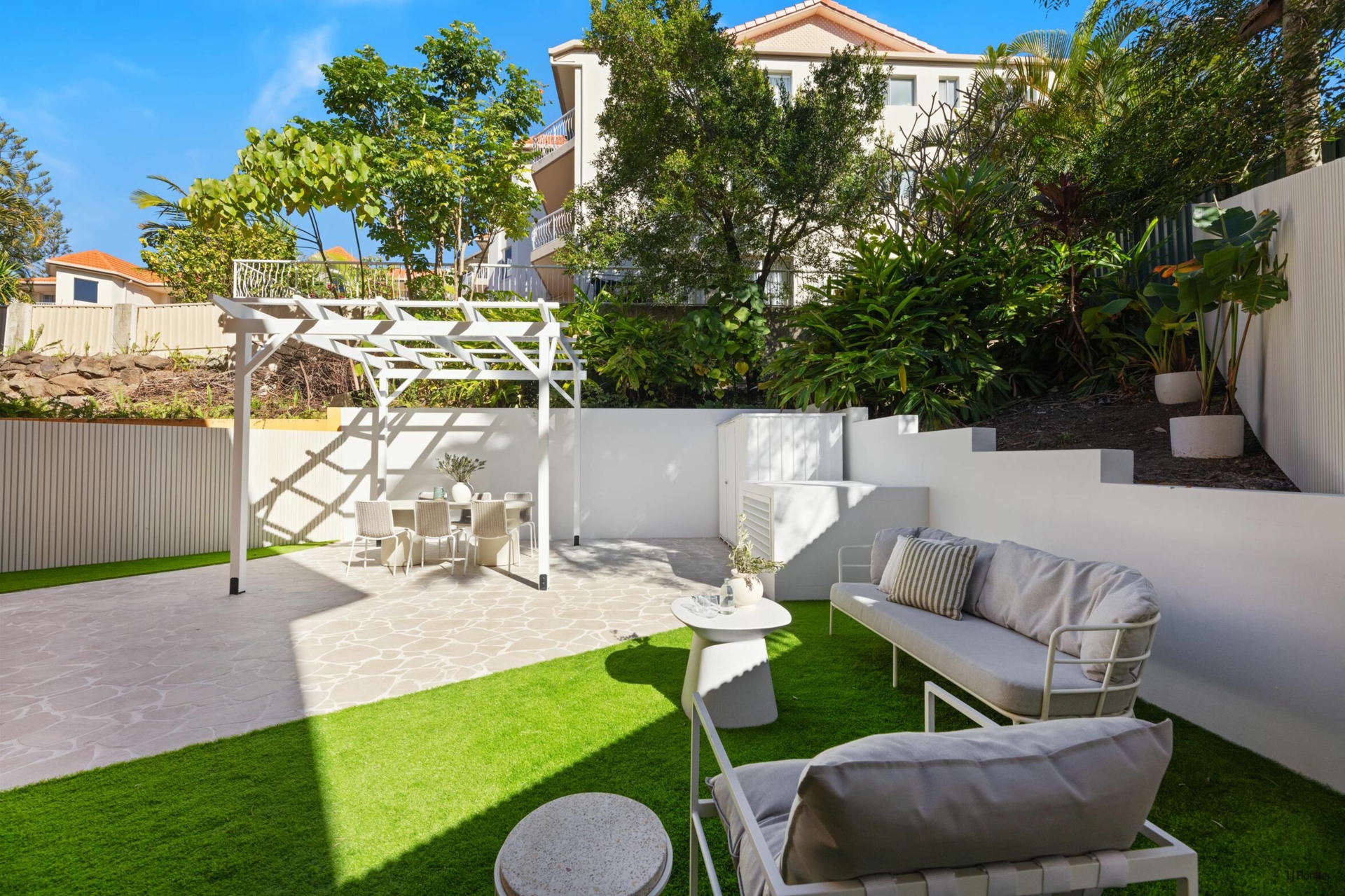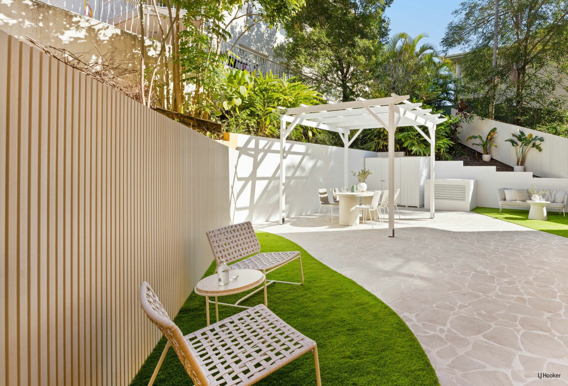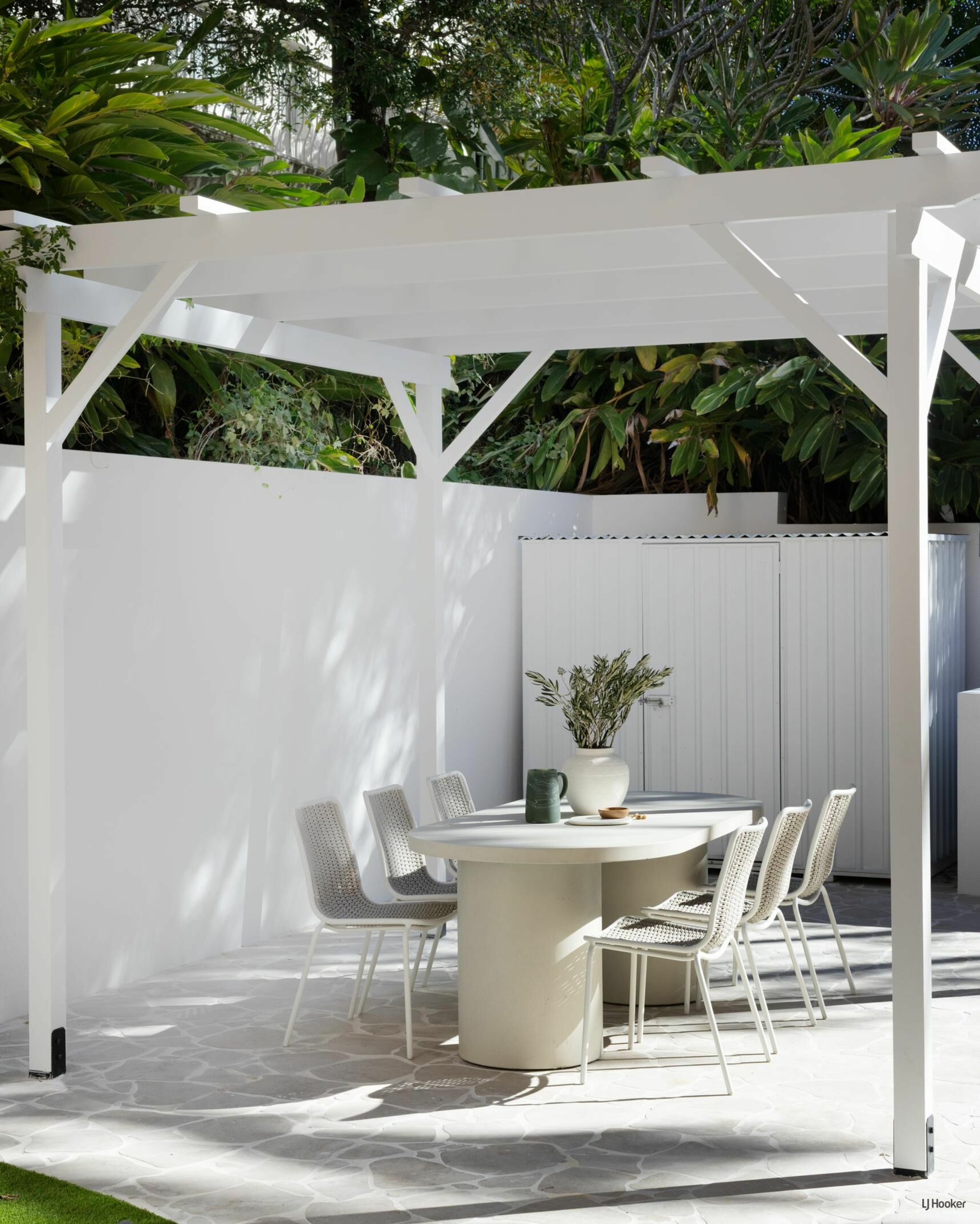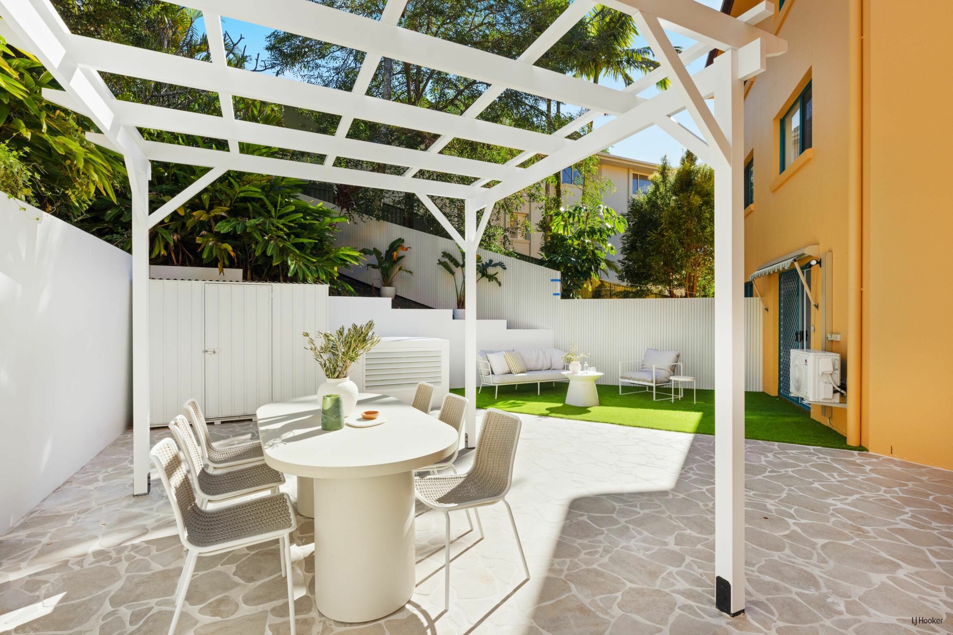 'Dutton Cove' stands out not only for its premium interior finishes but also for its exceptional private courtyard - a space rarely found in apartment living. Designed as a 'Modern-terranean' retreat, the outdoor area features crisp white cladding and beautifully woven, crazy-pave paths that meander through the courtyard, guiding you through to purpose-built zones ideal for lounging, entertaining, and quiet reflection. The custom-made free-standing gazebo is the centrepiece to host future dinner parties, BBQ's or simply relax and absorb the quite ethereal surrounds.
