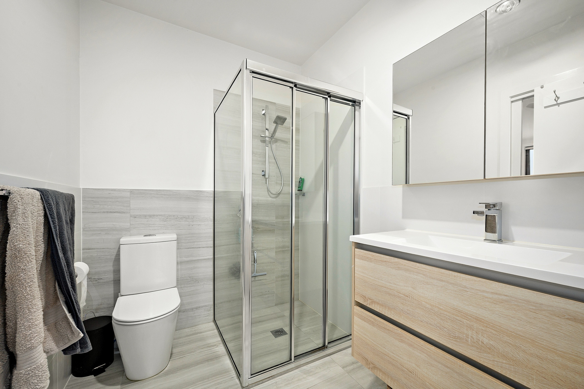 Two well-appointed bathrooms with wall hung vanities