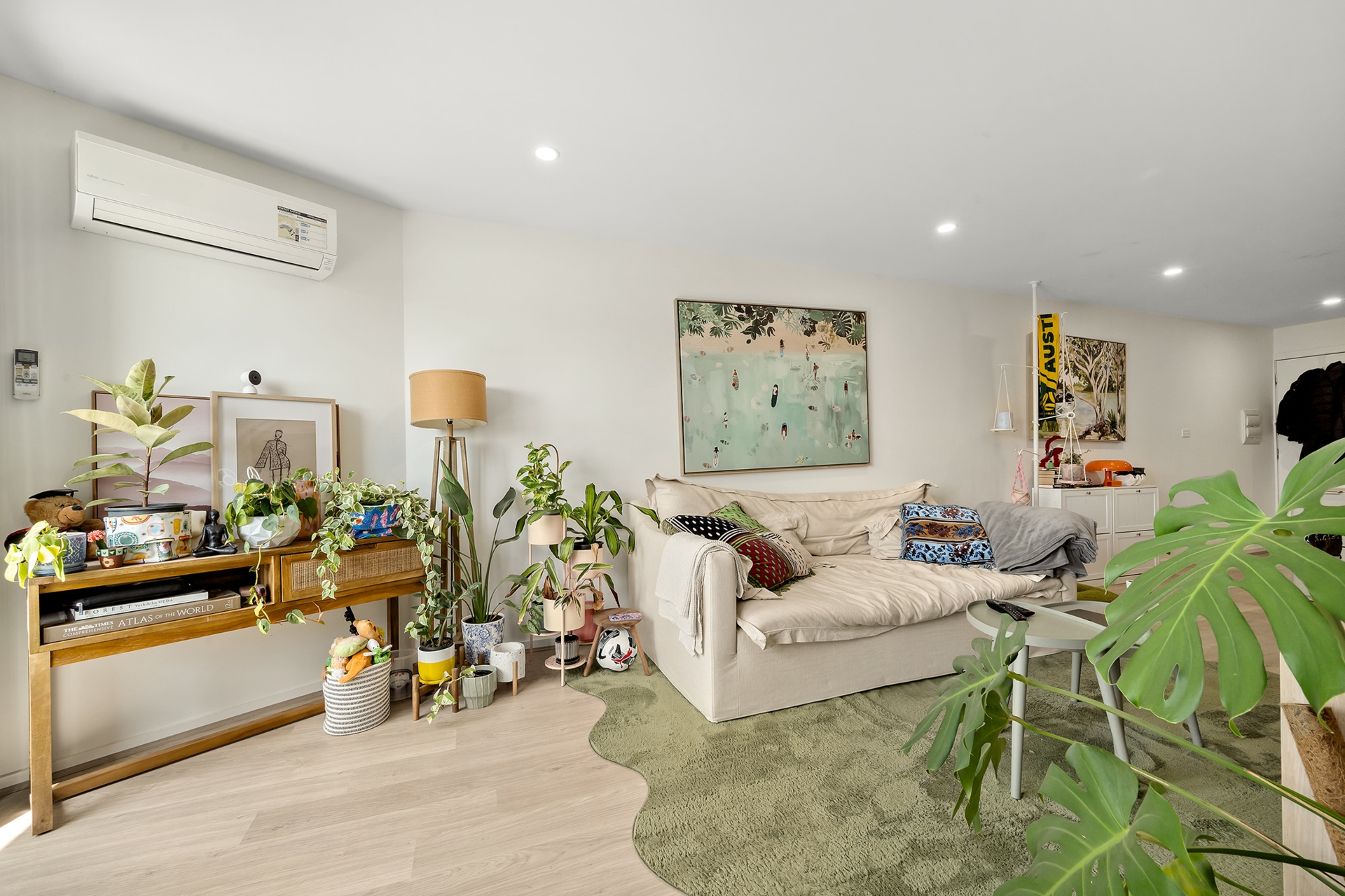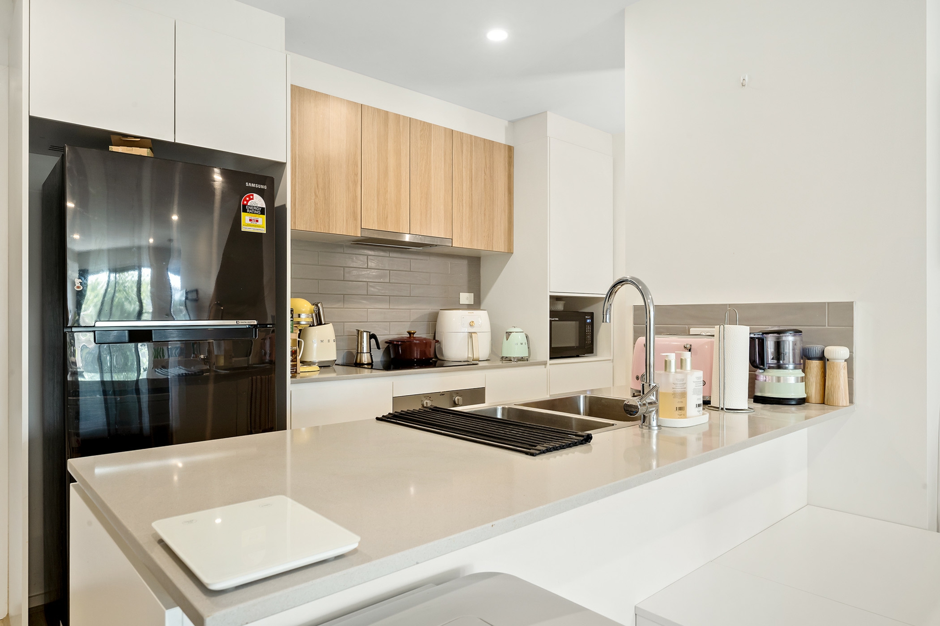 A light filled open plan living that is enhanced by an inviting neutral decor and hybrid timber floors throughout, generously sized bedrooms with built in robes, a sleek kitchen furnished with stone bench tops and quality AEG appliances are but some of the features on offer.