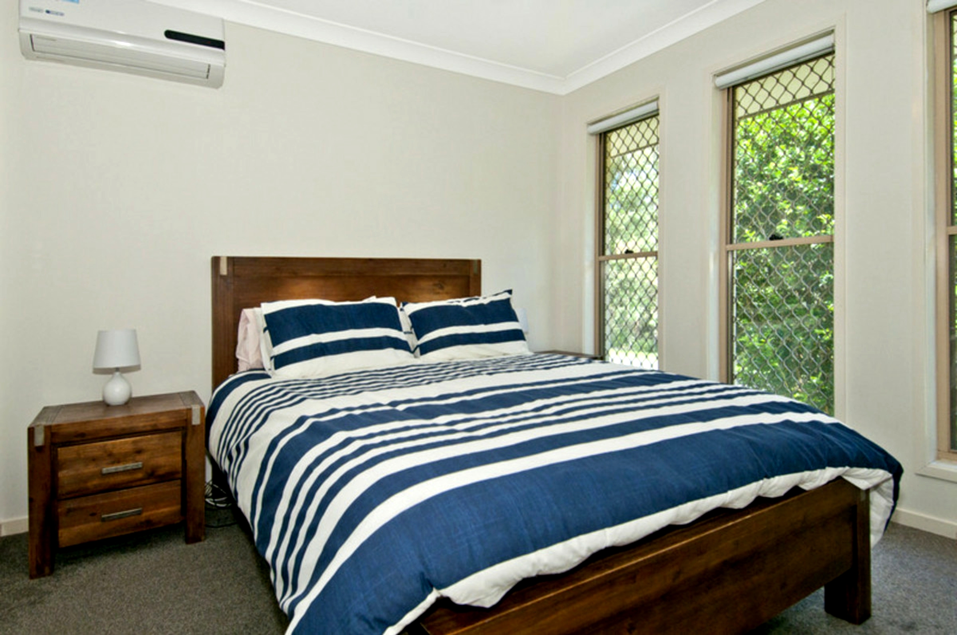 •Queen-size master suite with ensuite, walk-in robe, A/C, and ceiling fan.