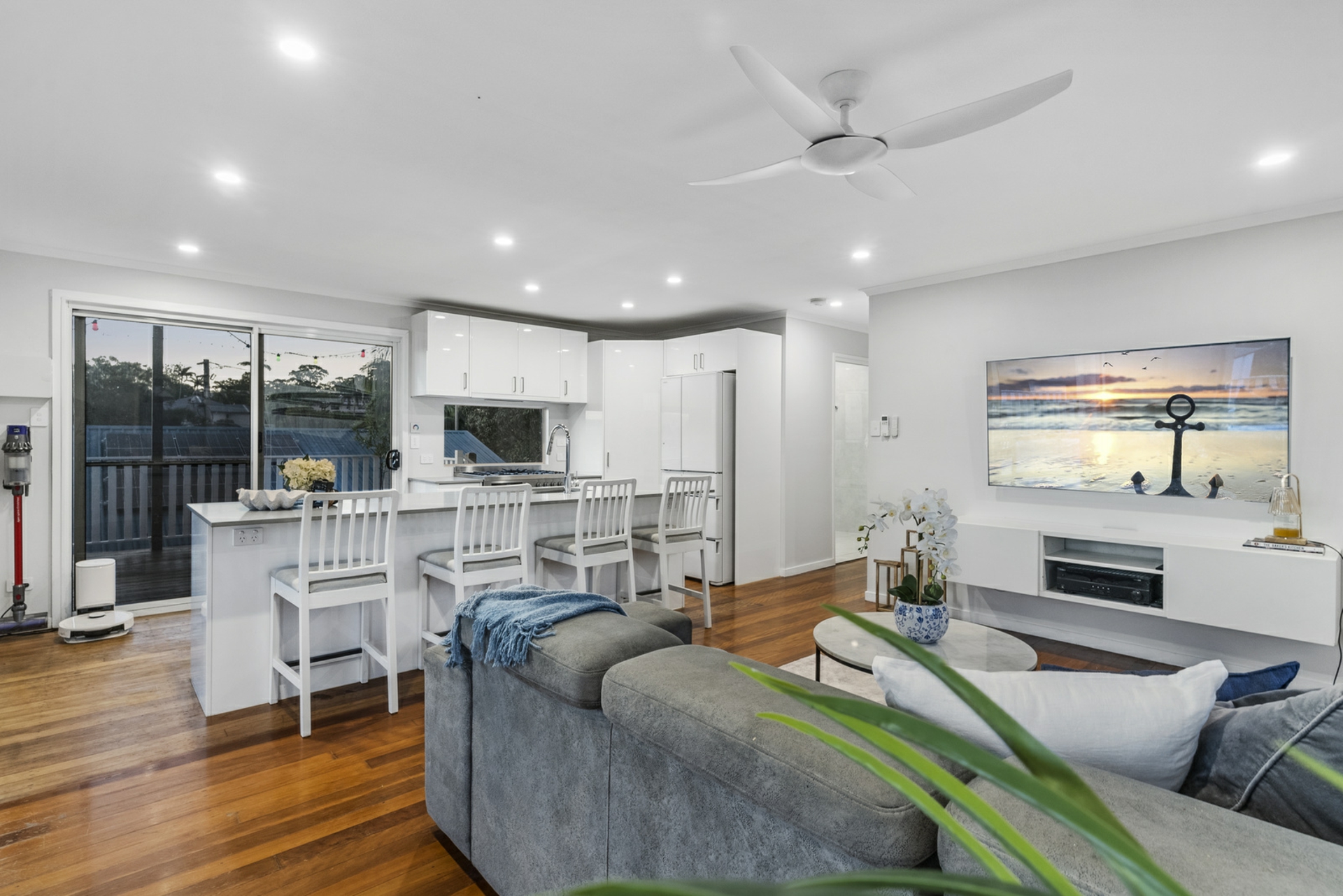 At the heart of the home is a contemporary kitchen with an island benchtop and gas cooktop, designed for everyday family life and effortless entertaining. Both bathrooms have been fully renovated to a modern standard, and the property's flat, easily maintained block includes side access ideal for a boat or caravan, space to add a pool, a double lock-up garage and an existing septic system - combining lifestyle with genuine practicality.